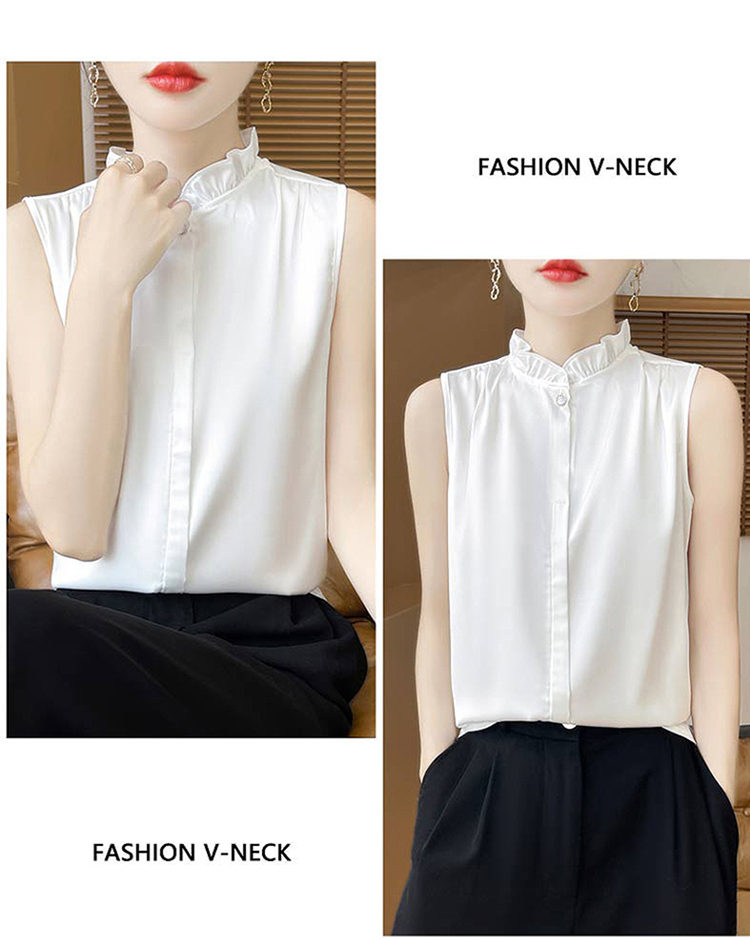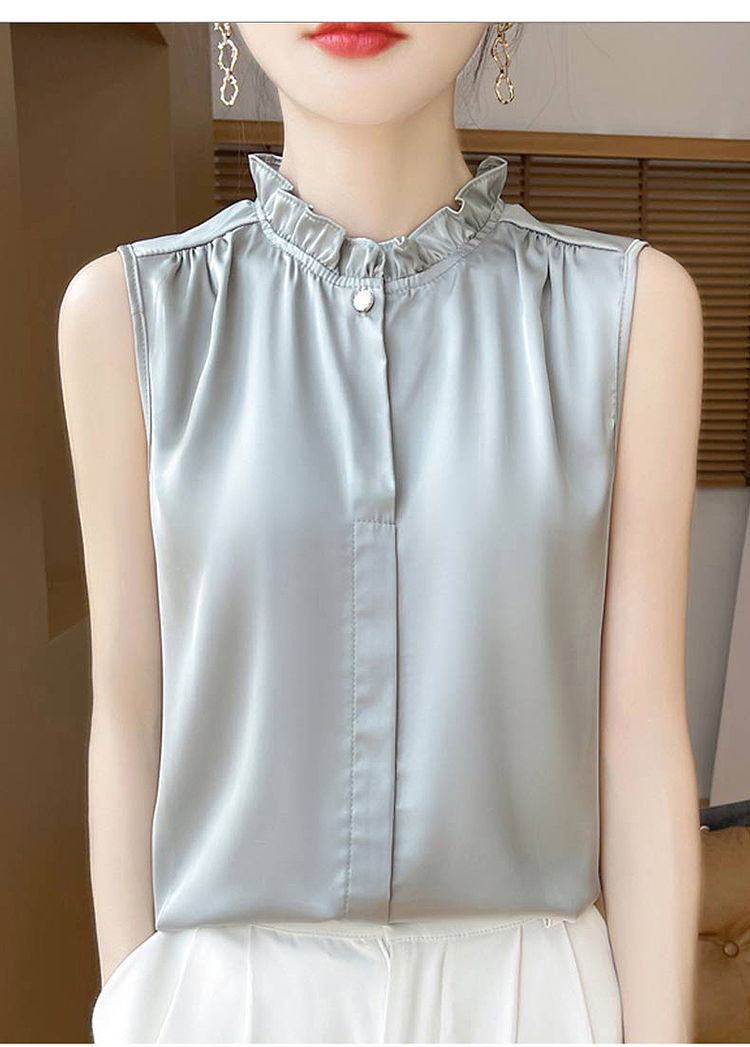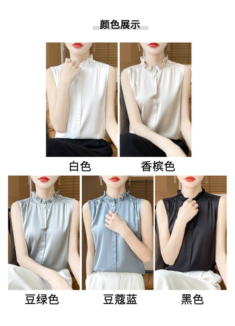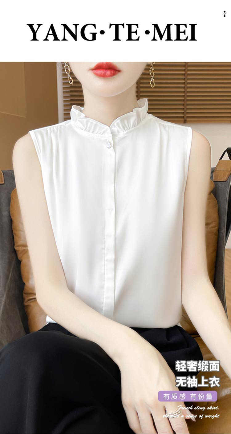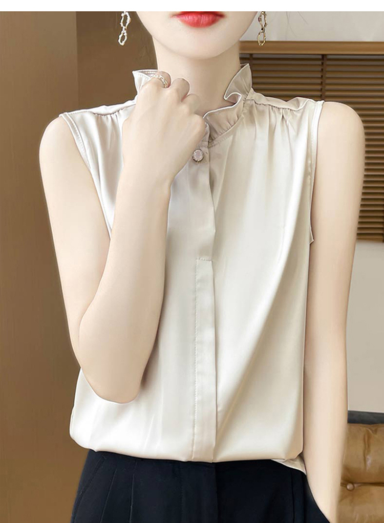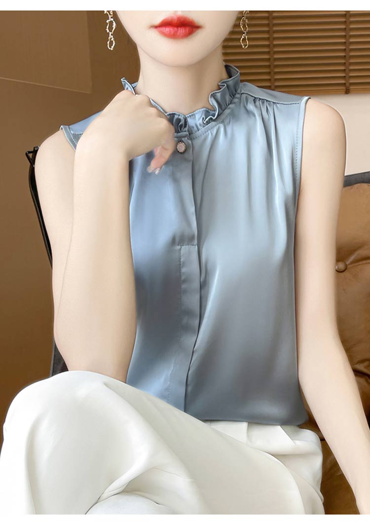 French-Style Ruffled Collar Sleeveless Shirt for Women, 2025 Model, Silk Satin Lace Ruffle Collar Base Layer Tank Top Inner Wear