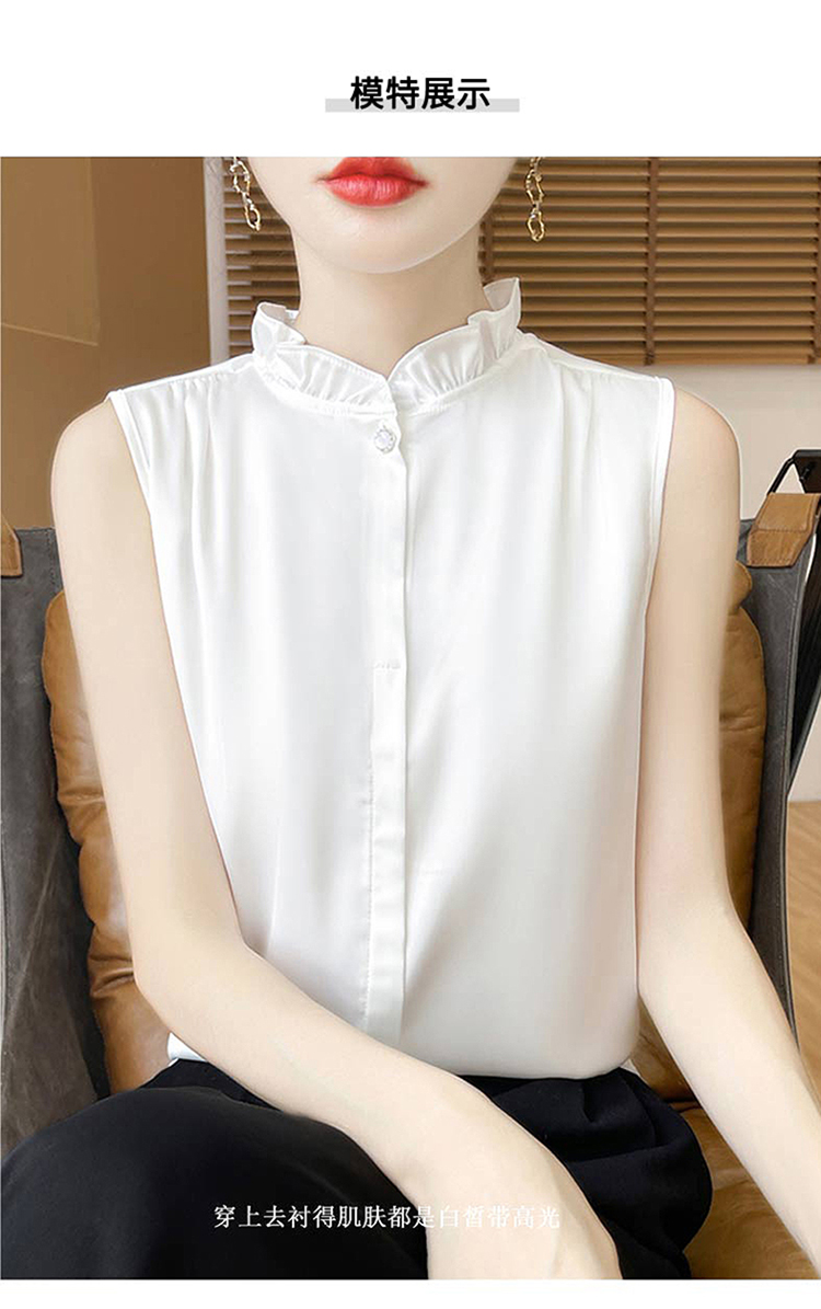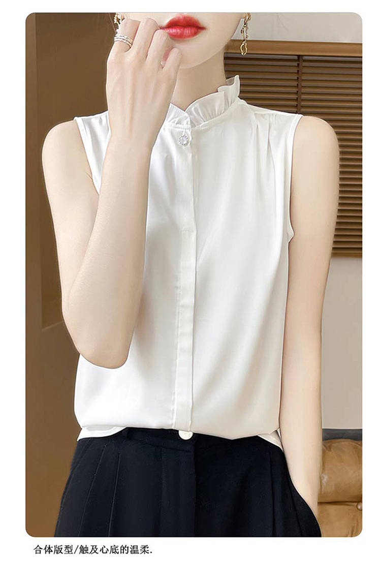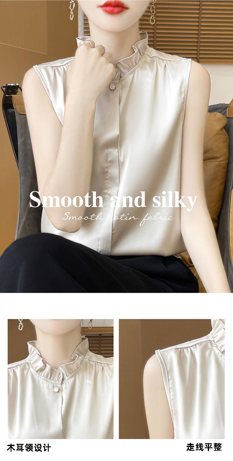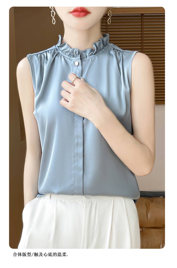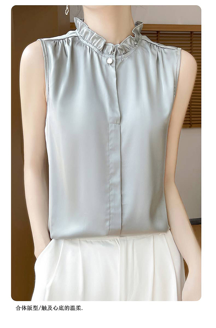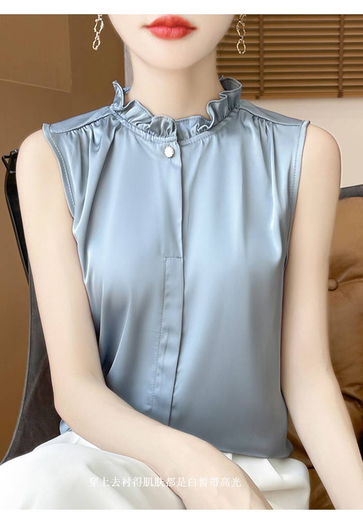 French-Style Ruffled Collar Sleeveless Shirt for Women, 2025 Model, Silk Satin Lace Ruffle Collar Base Layer Tank Top Inner Wear
