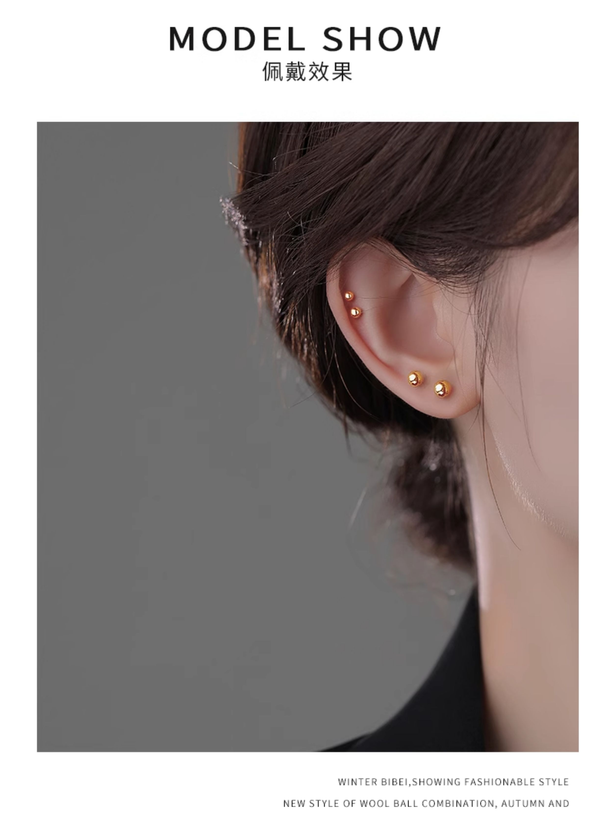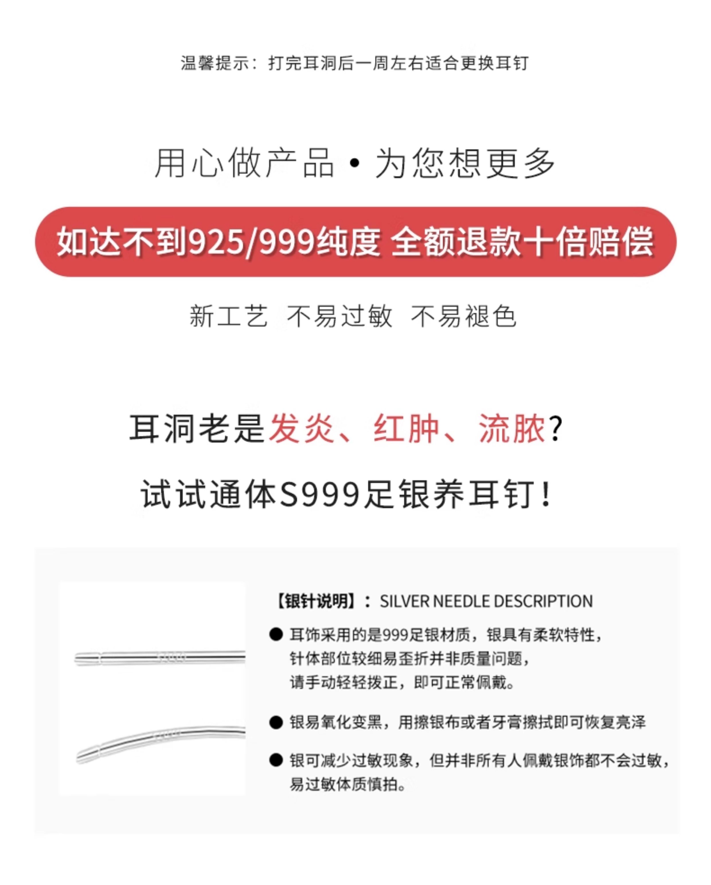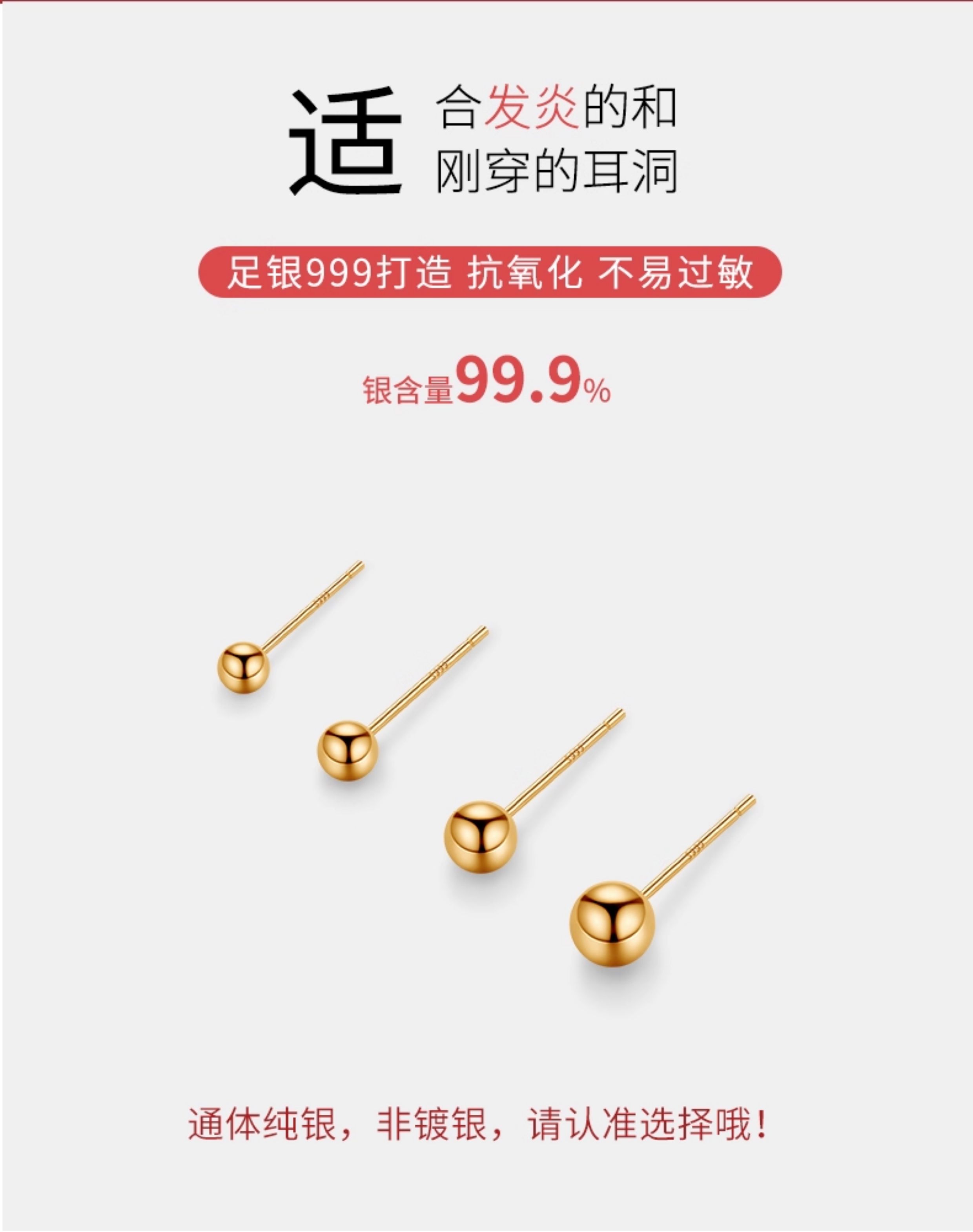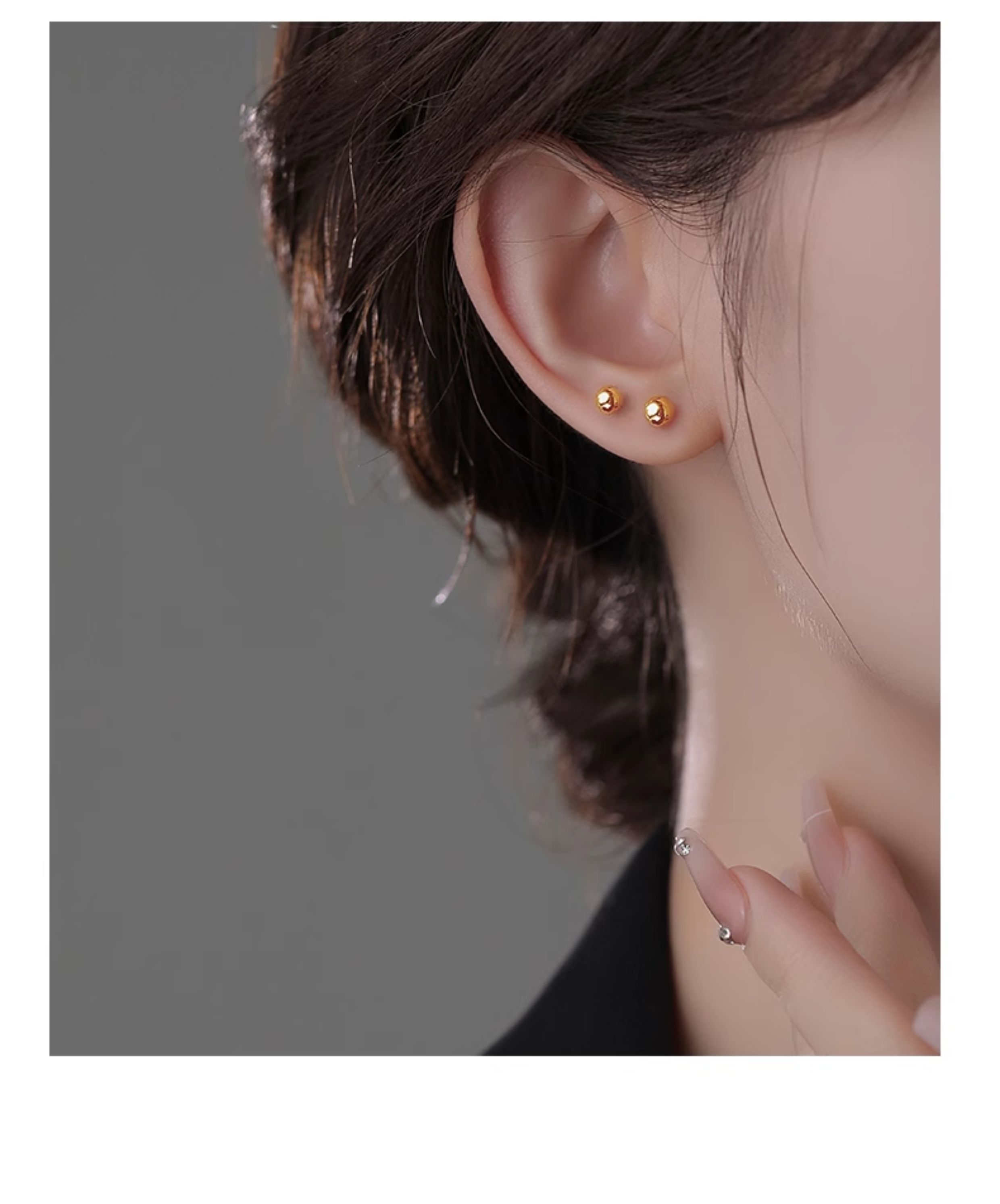 999 Pure Silver Ear Studs for Women, No Need to Remove, Small Earrings, Anti-Clogging, Ear Bone Studs, High-End, Popular Gold-Colored Earrings