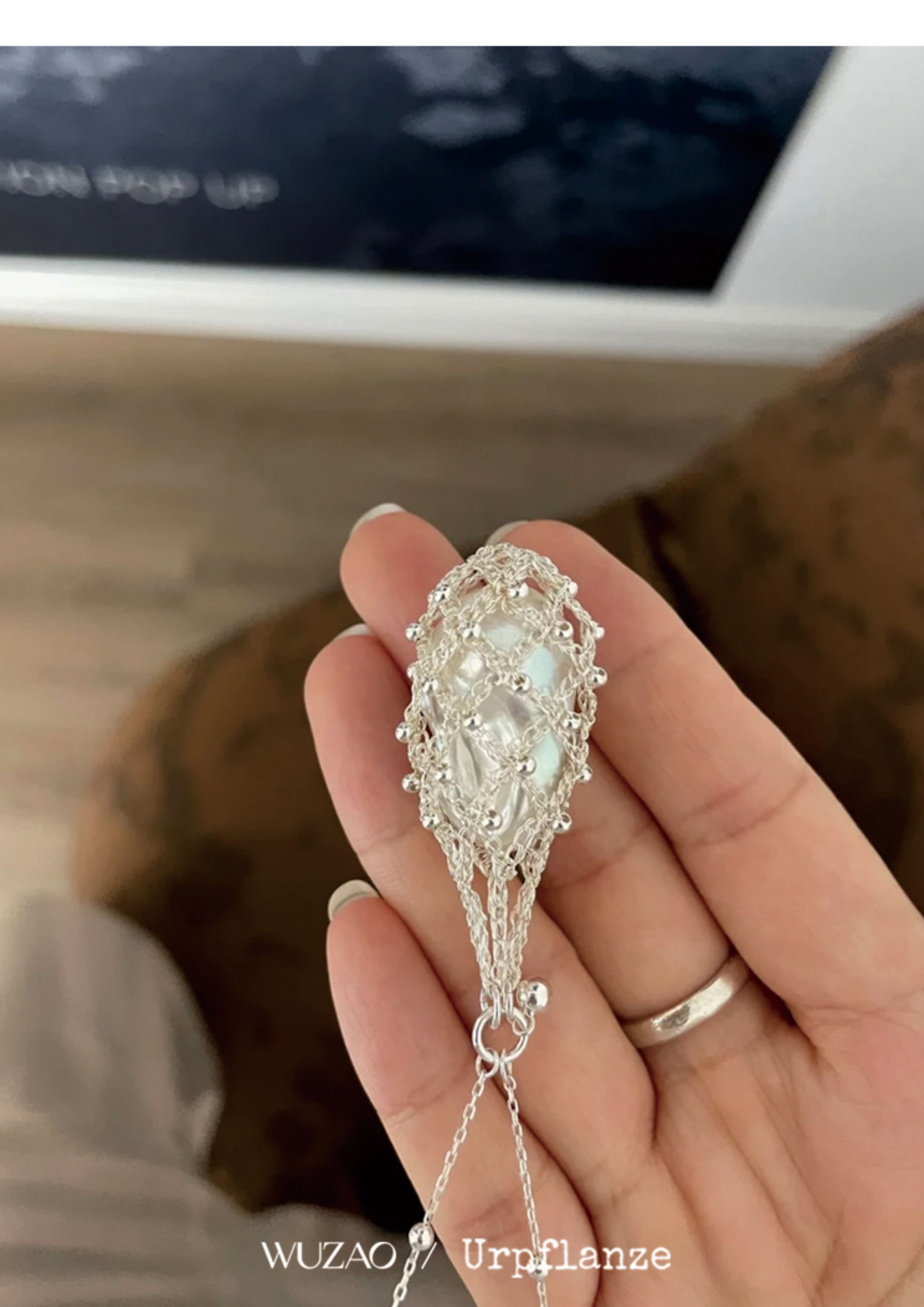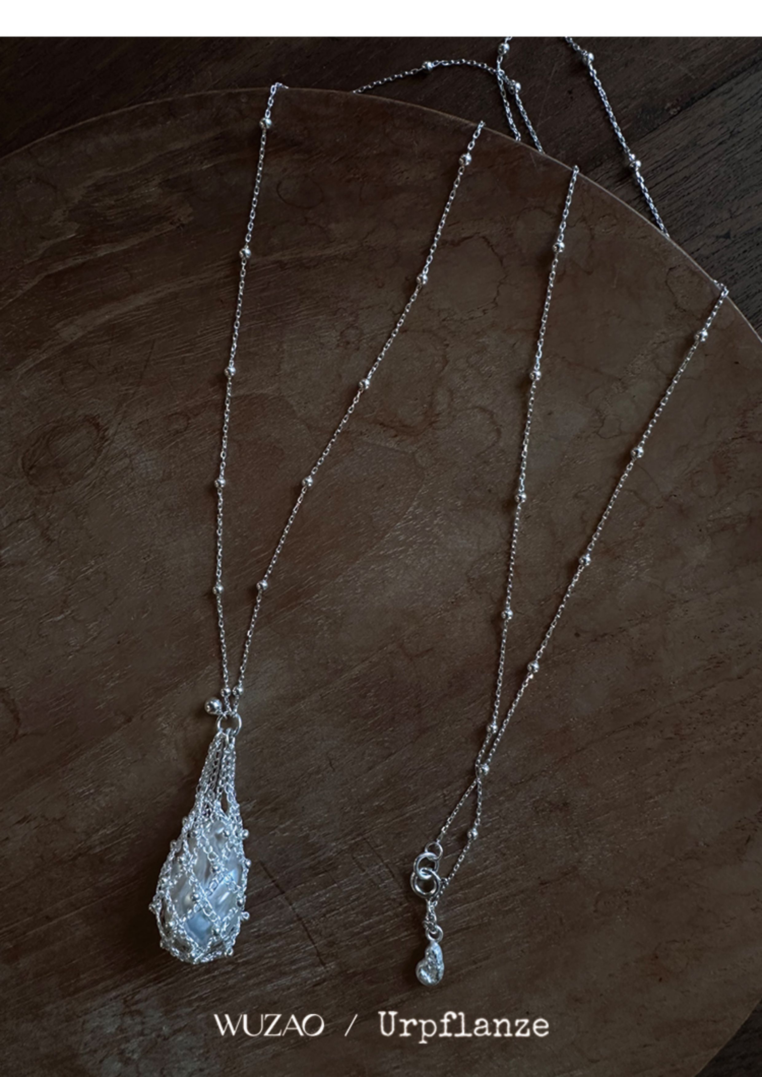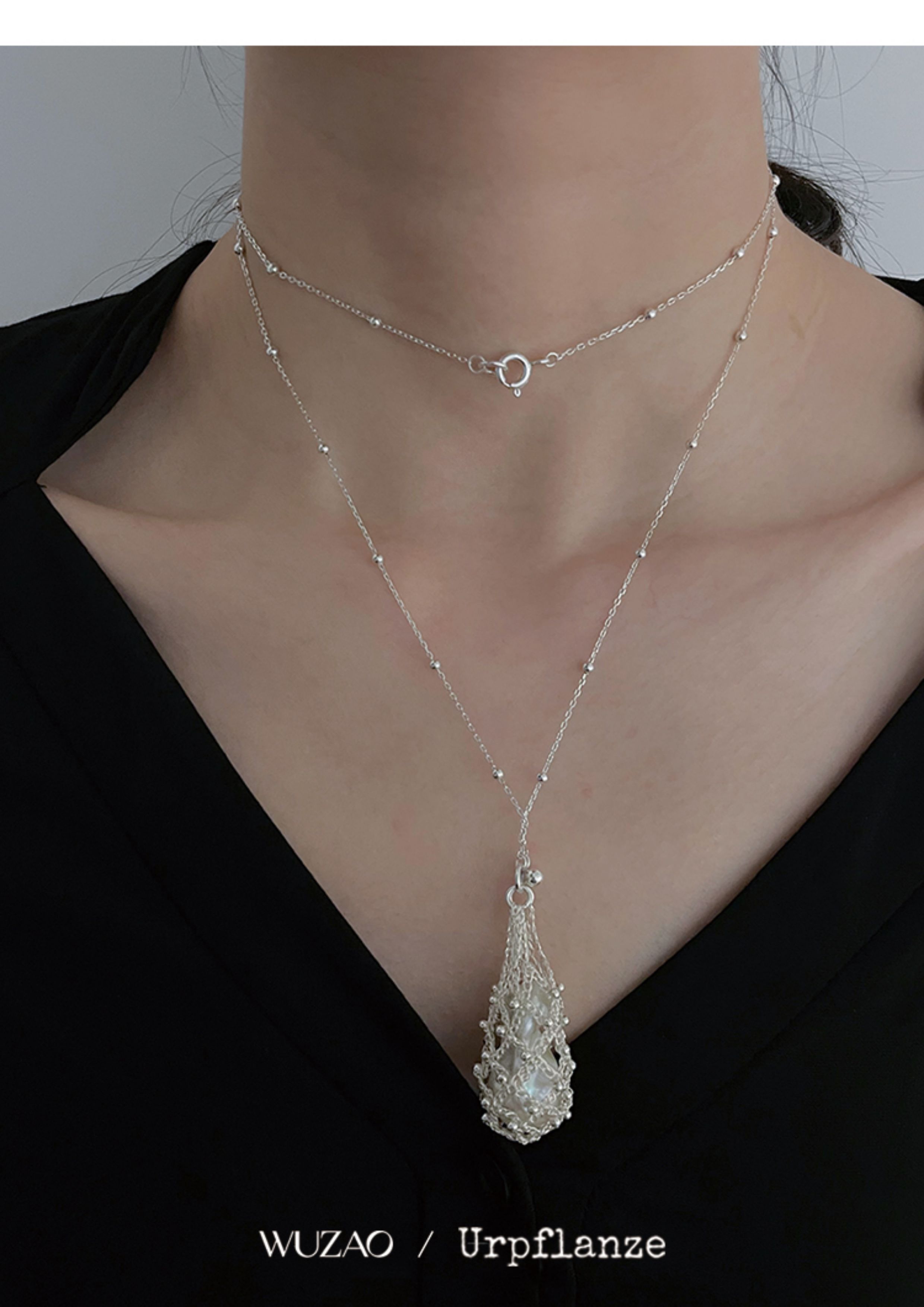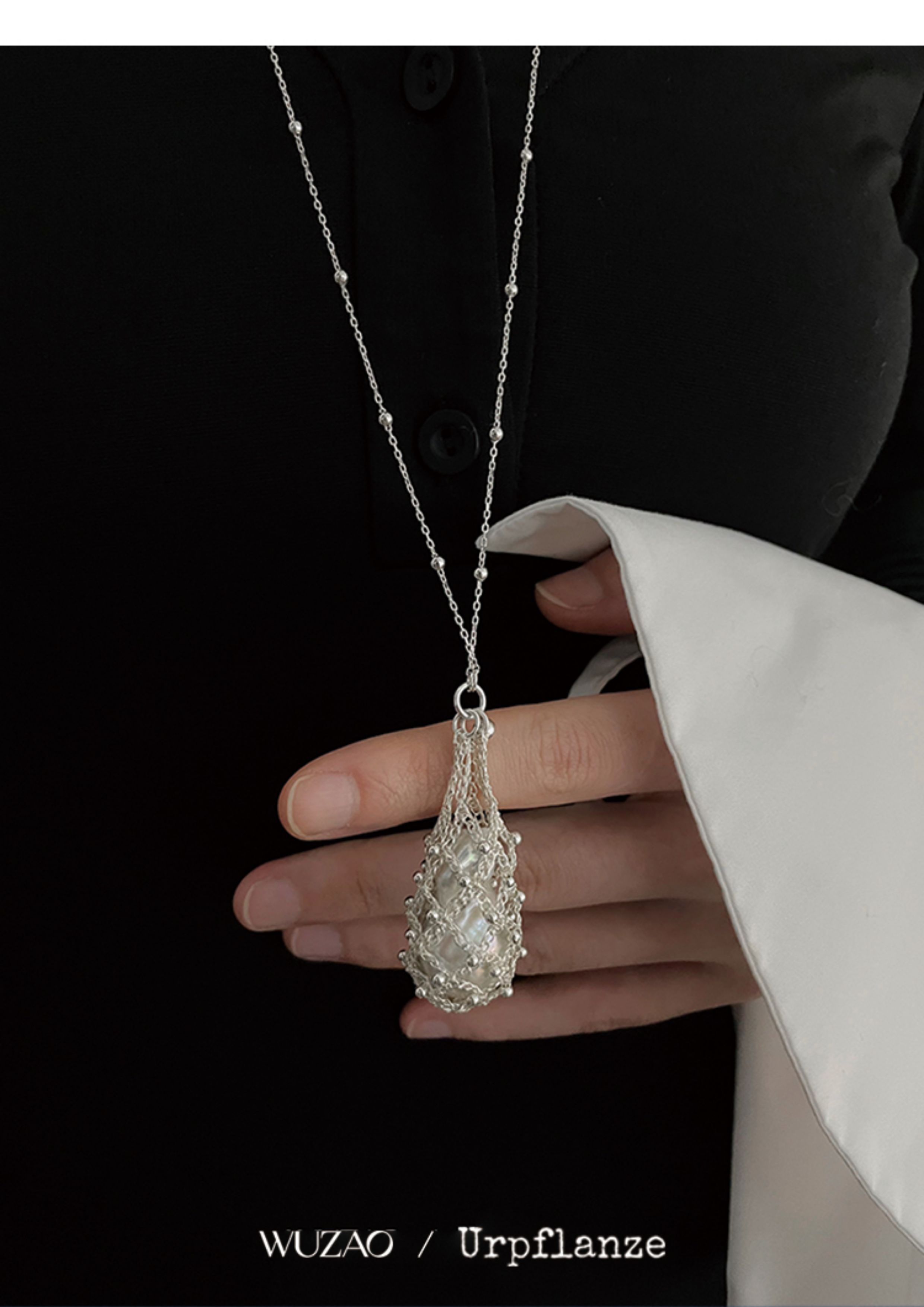 Urpflanze Traditional Hand-Woven Baroque Pearl Niche Fishnet Necklace Women's Sweater Chain Birthday Gift