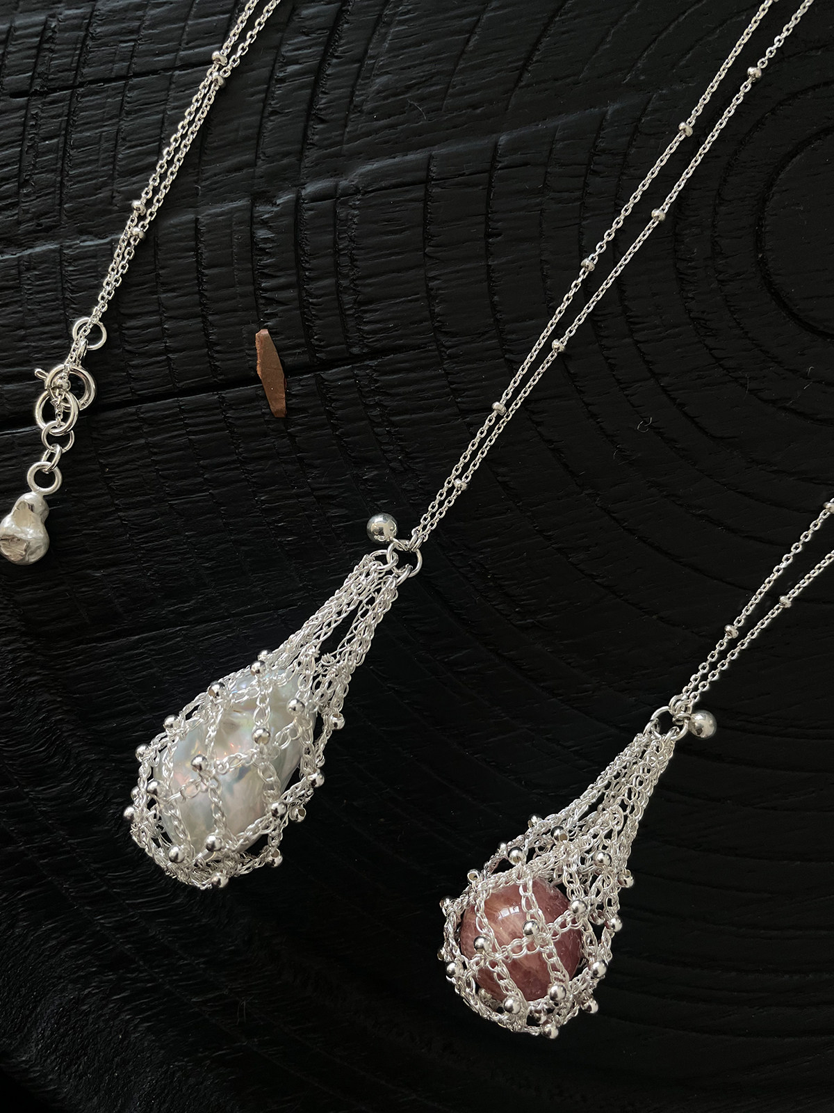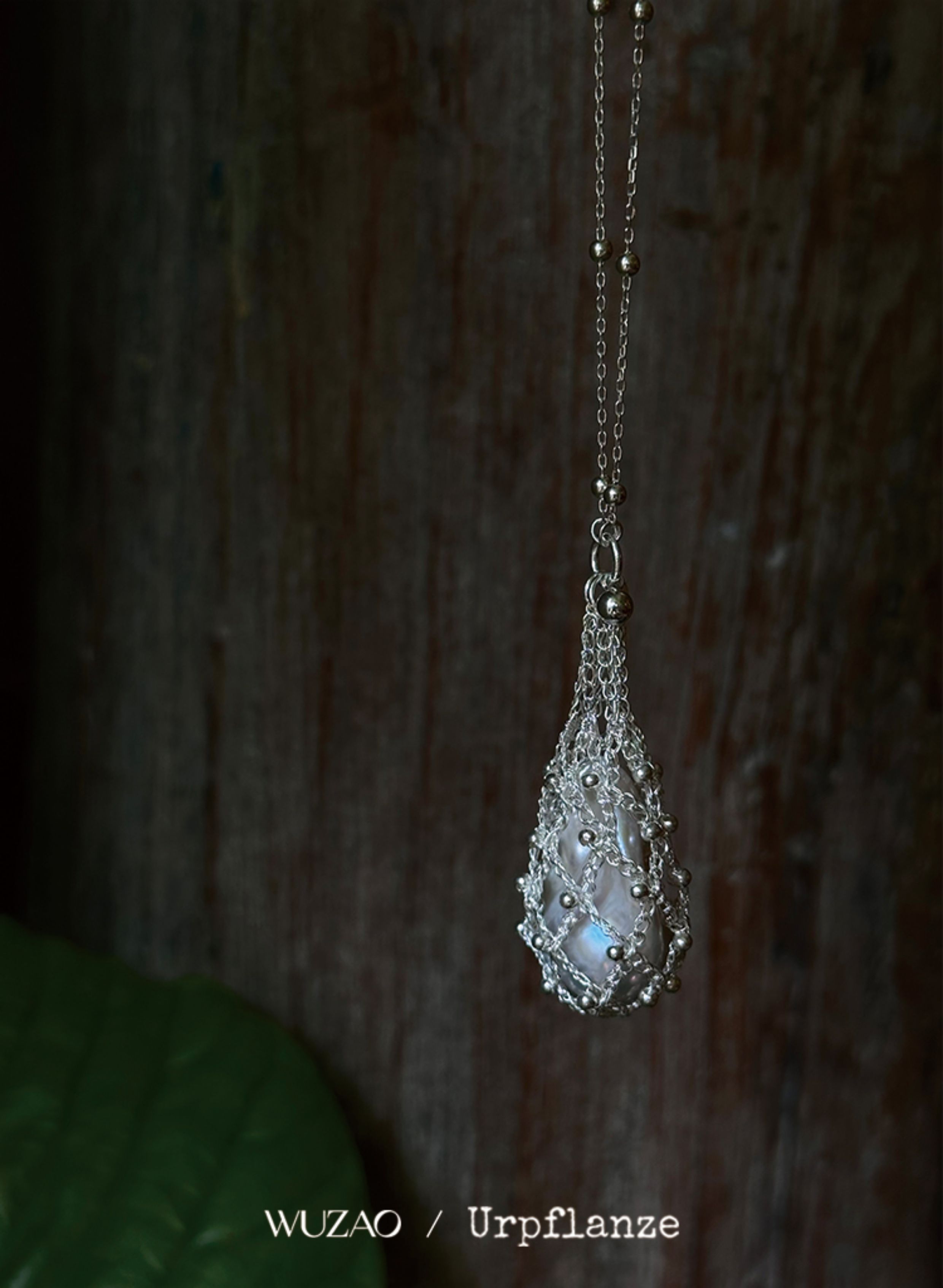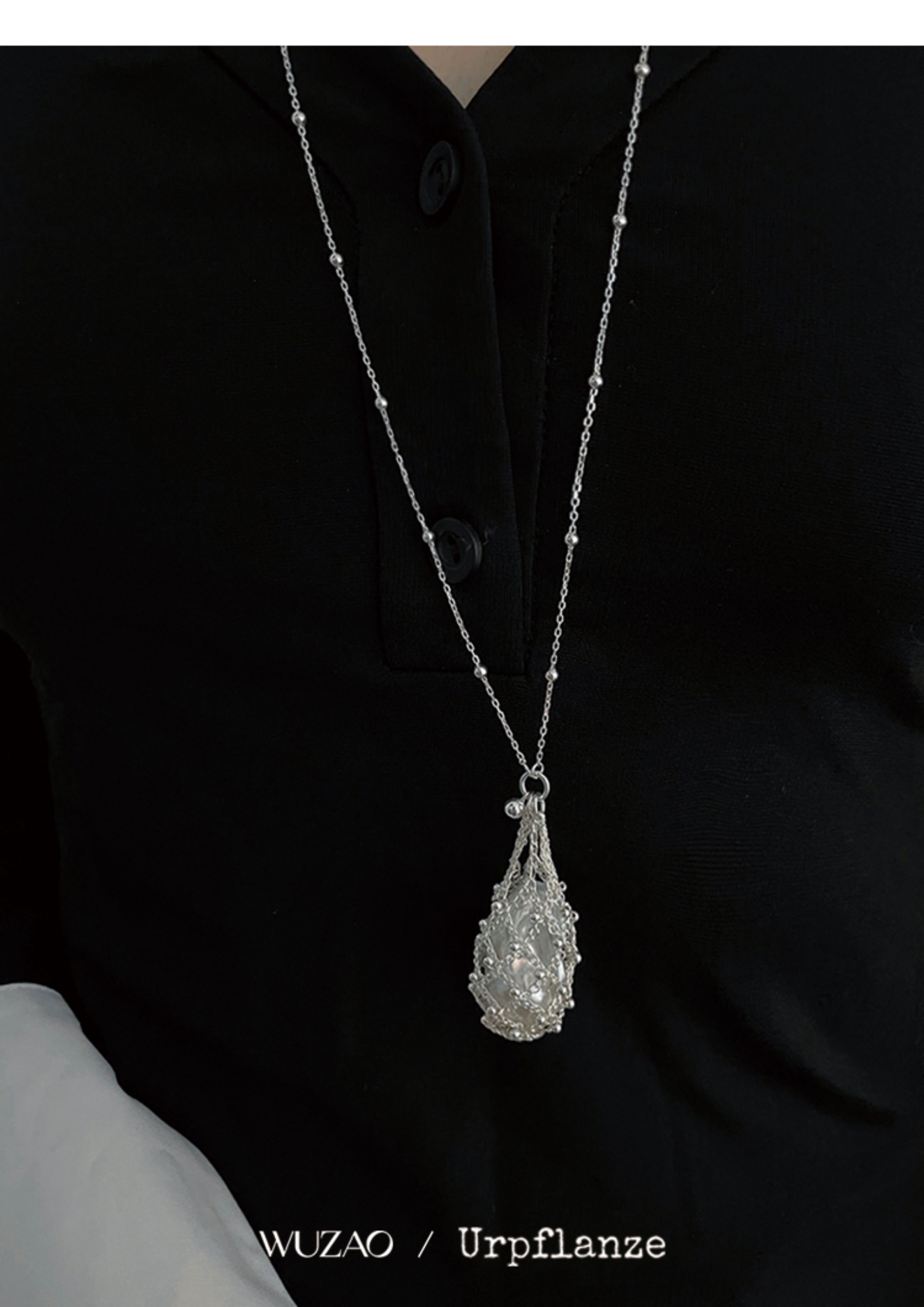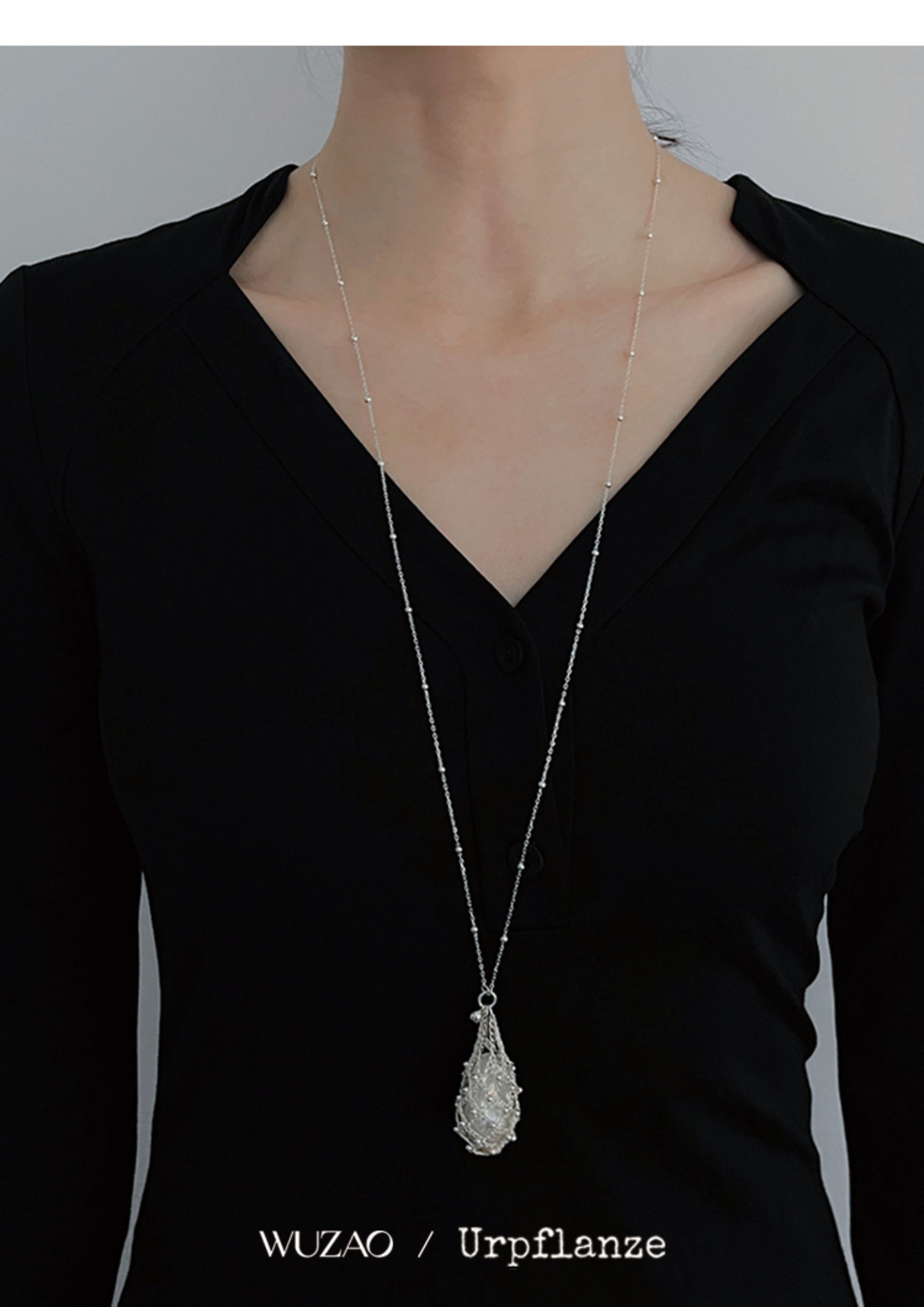 Urpflanze Traditional Hand-Woven Baroque Pearl Niche Fishnet Necklace Women's Sweater Chain Birthday Gift