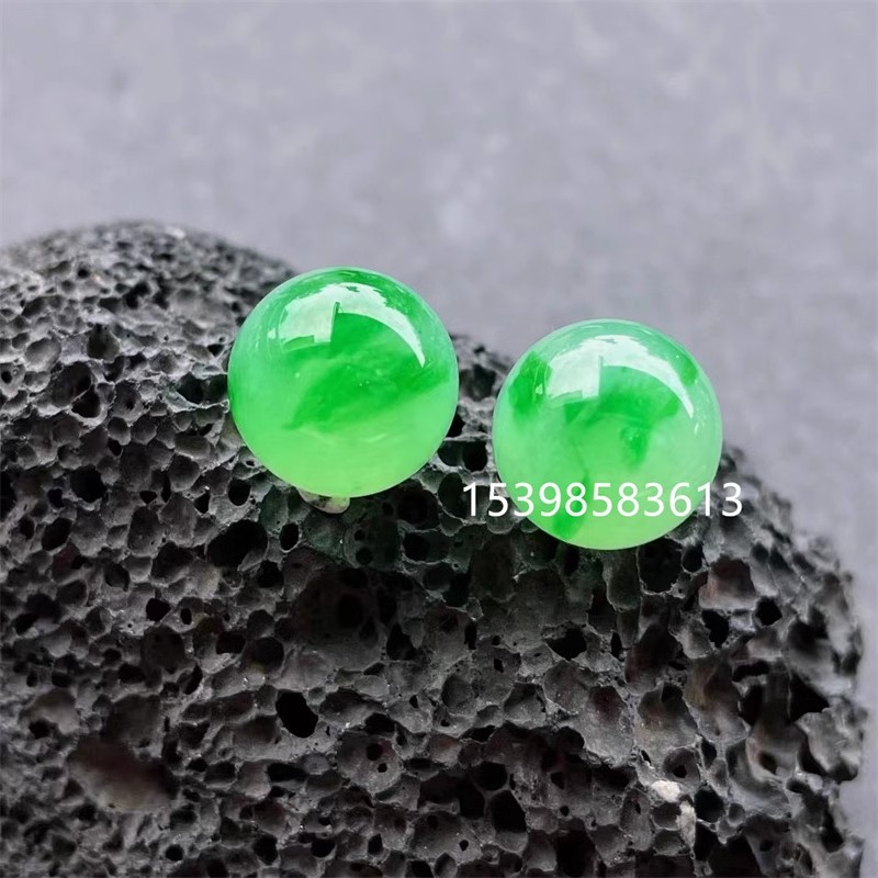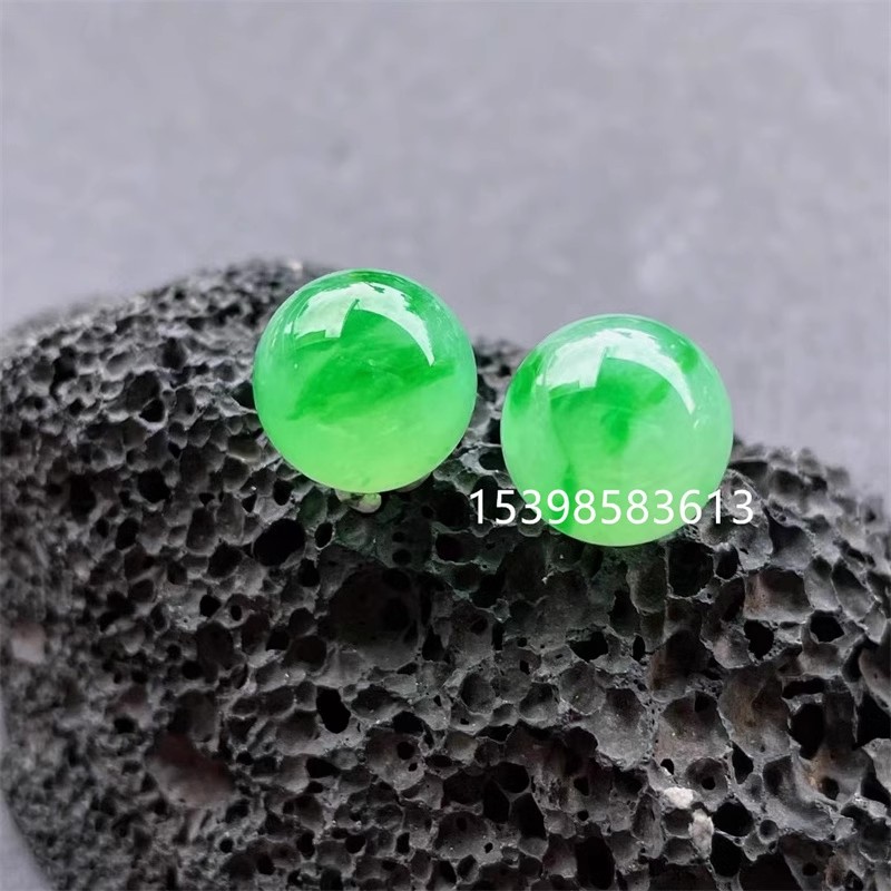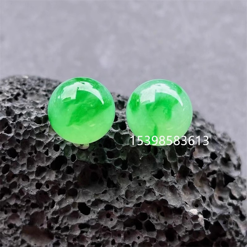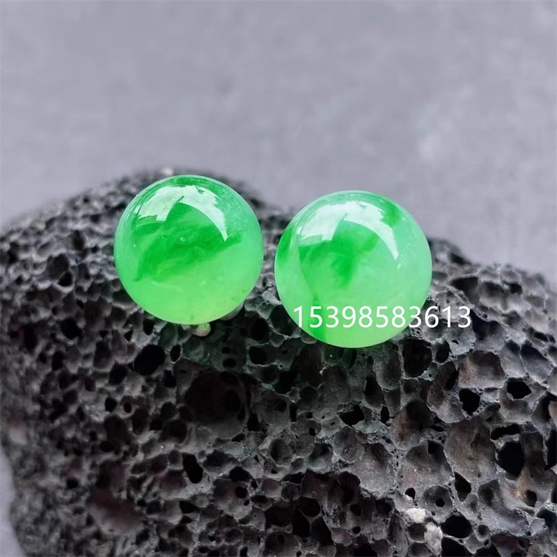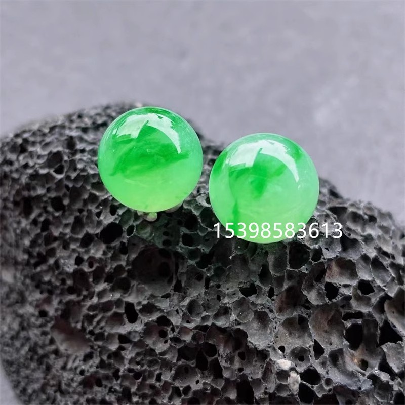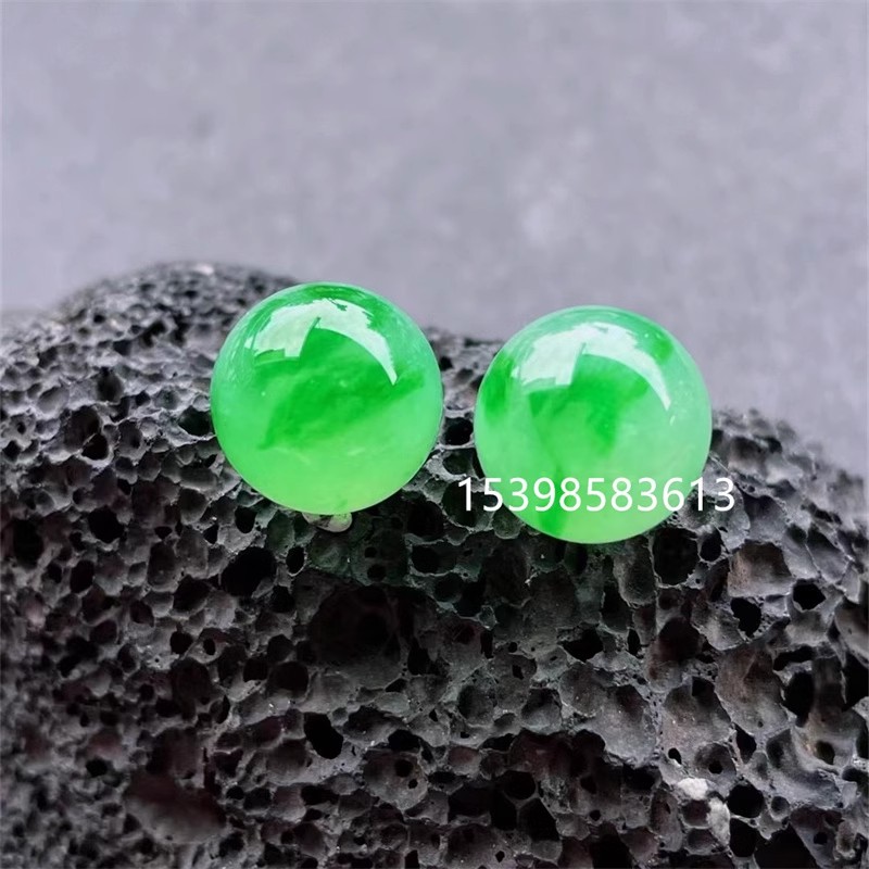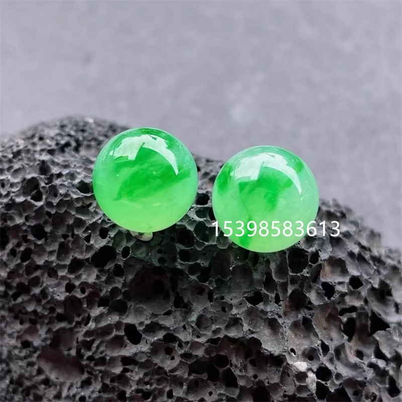 Natural Myanmar Laokeng A Goods Jade Yang Green Beads Ice Green Flower Round Beads Single Beaded Jade Bracelet