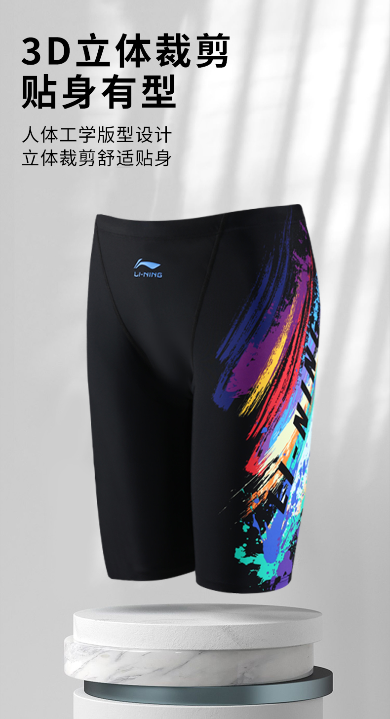 Li-Ning Men's Swim Trunks, Anti-Embarrassment, Quick-Drying, Chlorine-Resistant, Adult Five-Point Racing Professional Training New Swimming Gear Set