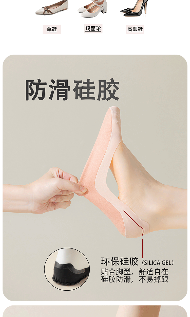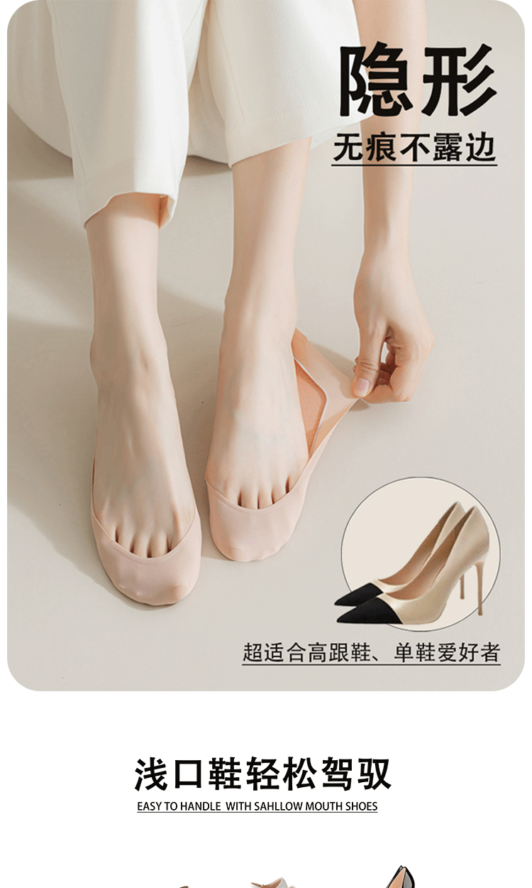 Ultra-Low-Cut Socks, Invisible Boat Socks, High-Heeled Shoes, Single Shoe Socks for Women, Silicone Non-Slip Cotton Bottom, No Heel Falling Off, Summer Ice Silk Socks