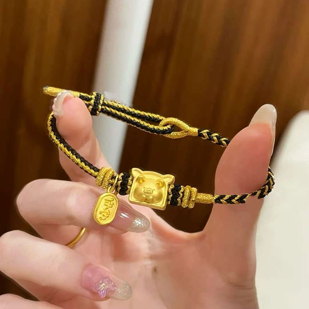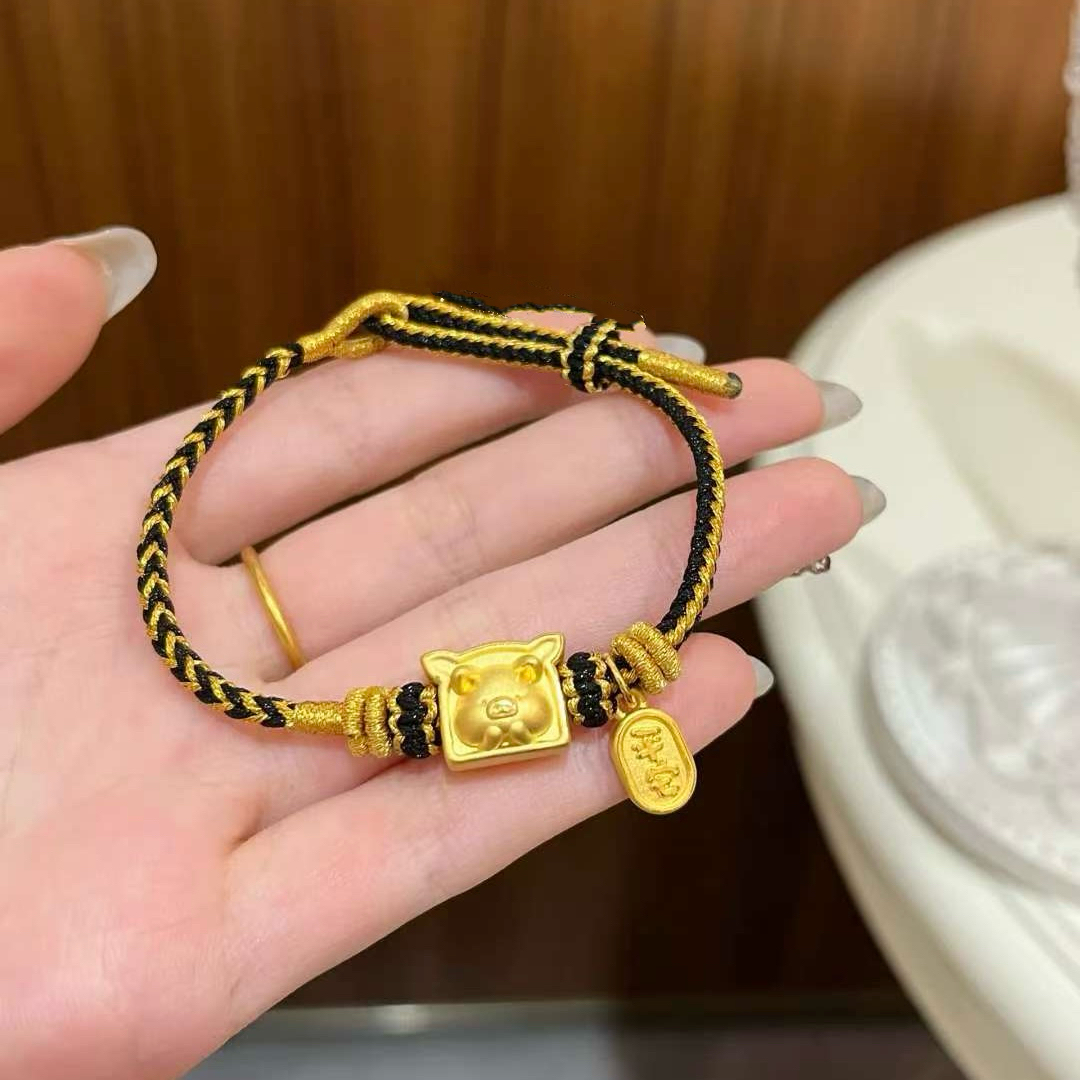 Shenzhen Shuibeizi 999 Gold Lulu Toast Bread Pig Fortune Bead Cute Zodiac Cartoon Bracelet Gift for Girlfriend