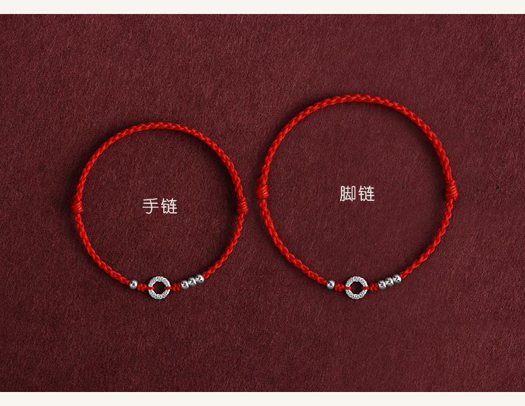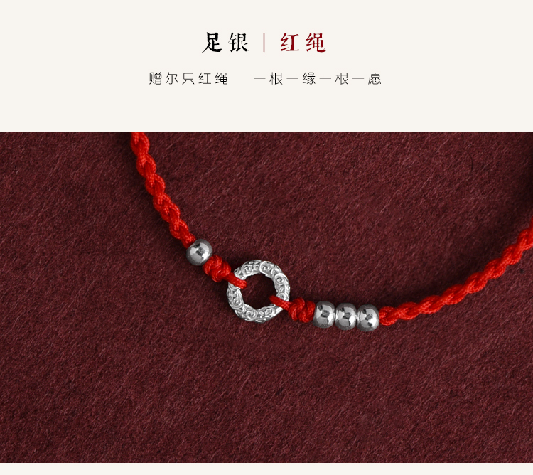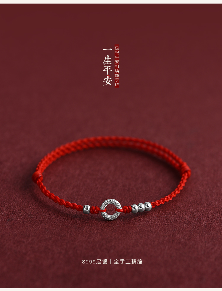 Ultra-Fine Lifelong Peace 999 Pure Silver Red String Bracelet Anklet for Men and Women, Sterling Silver Fortune Bead, Birth Year Woven Bracelet