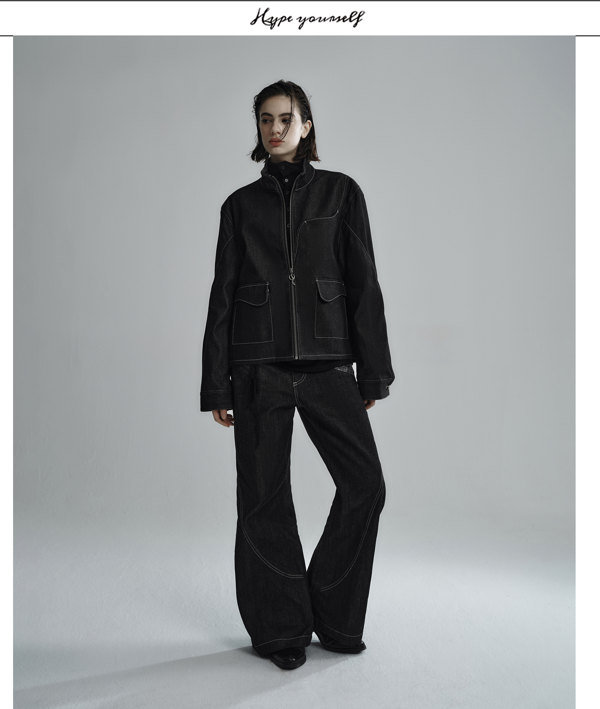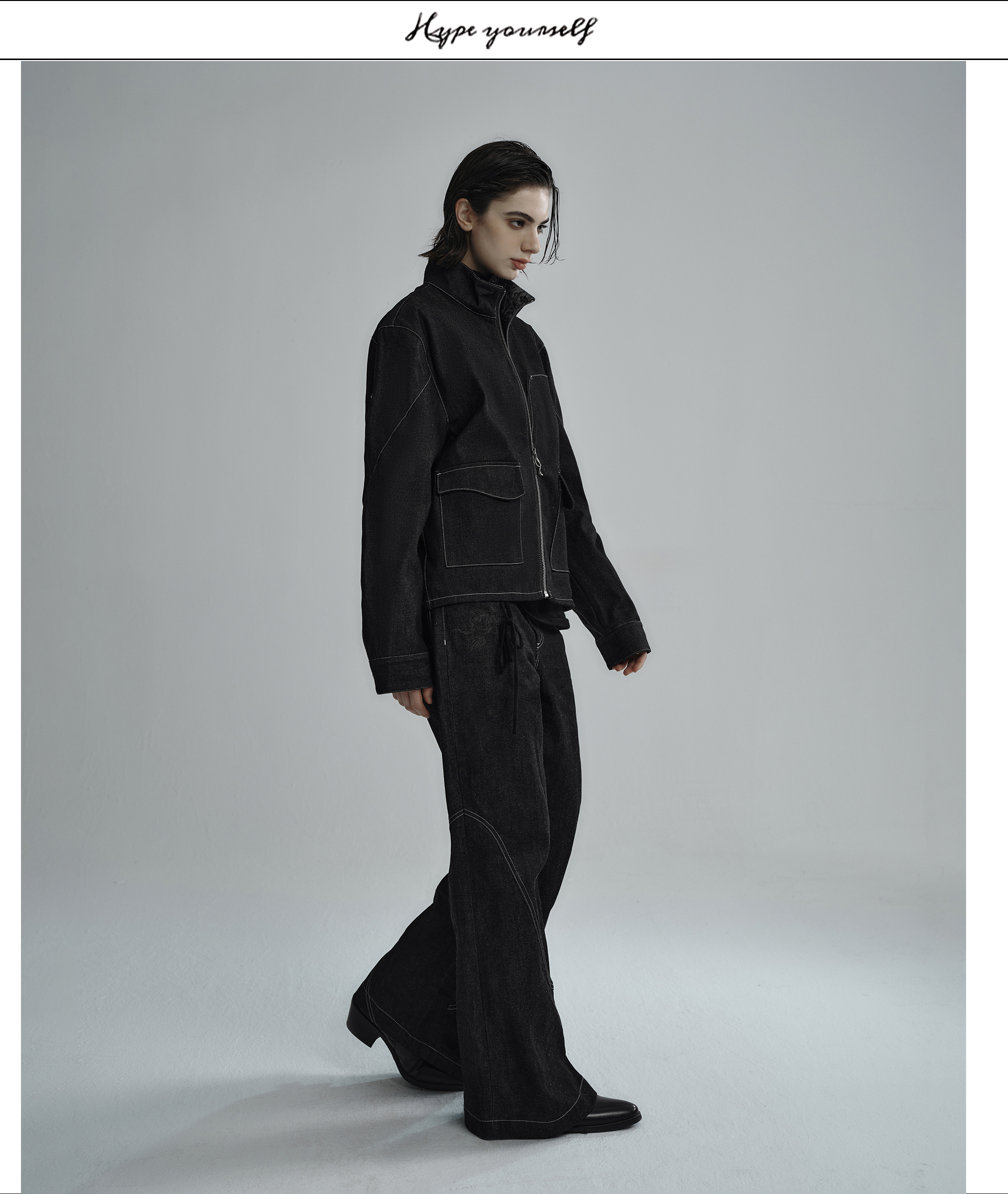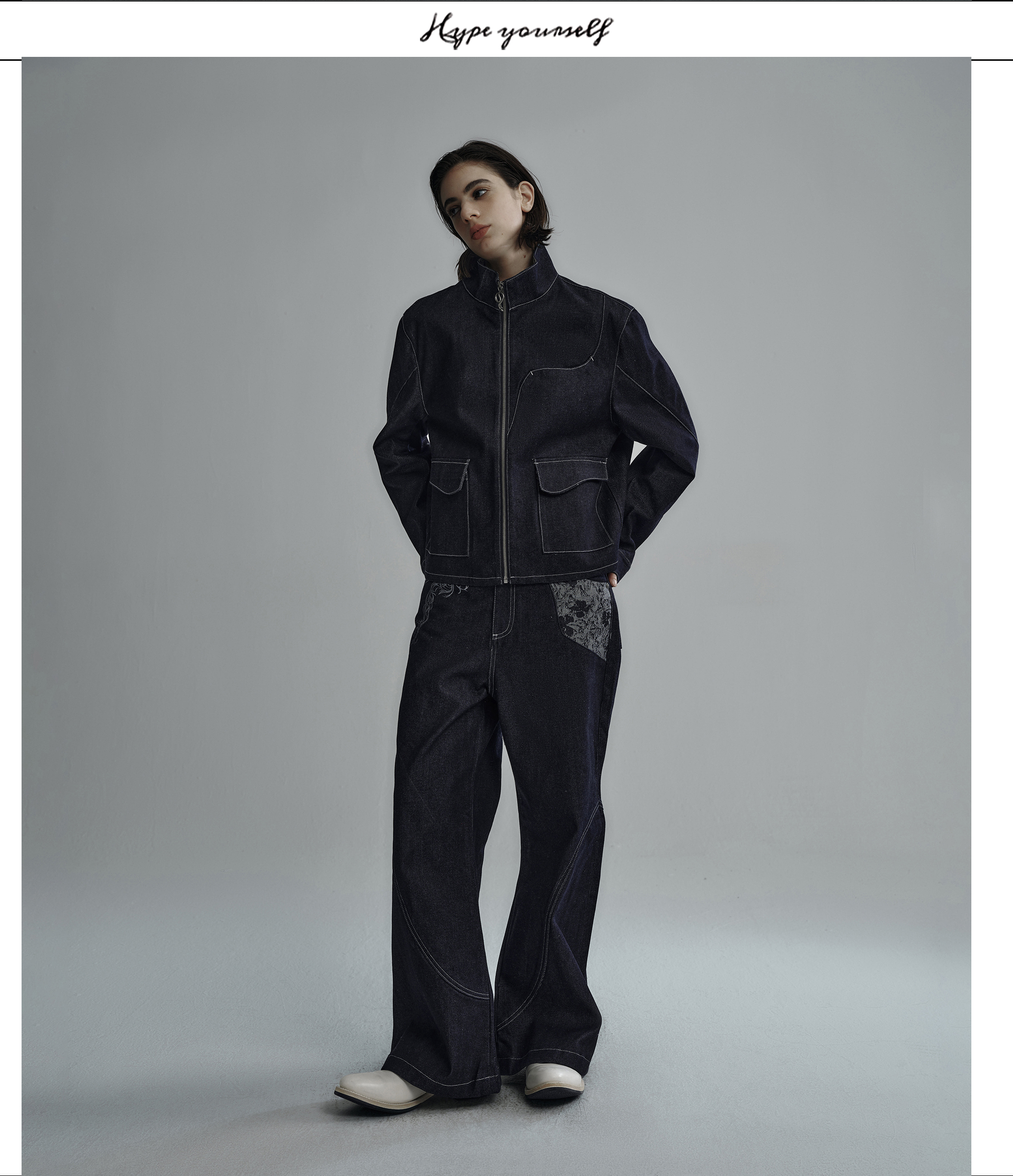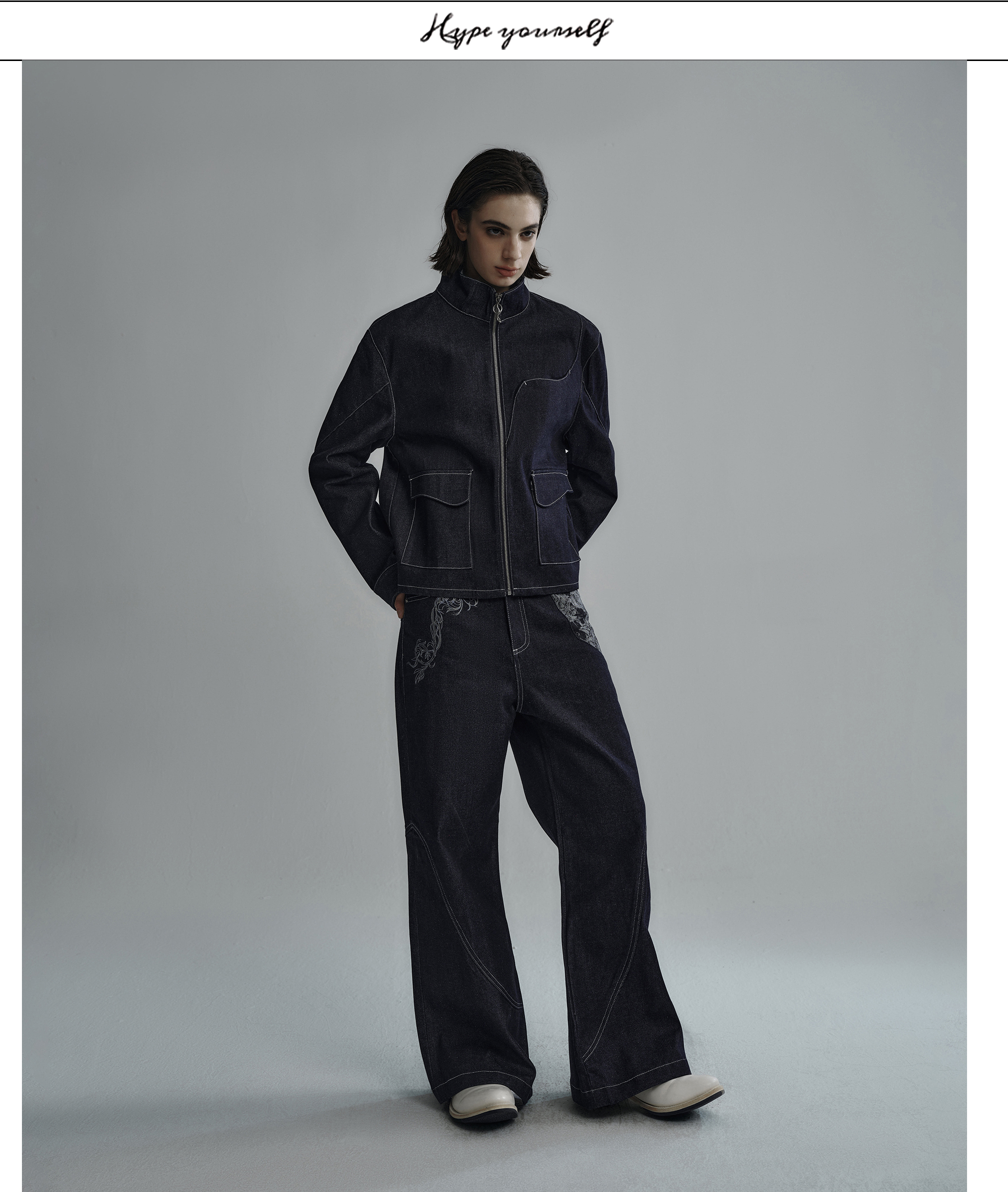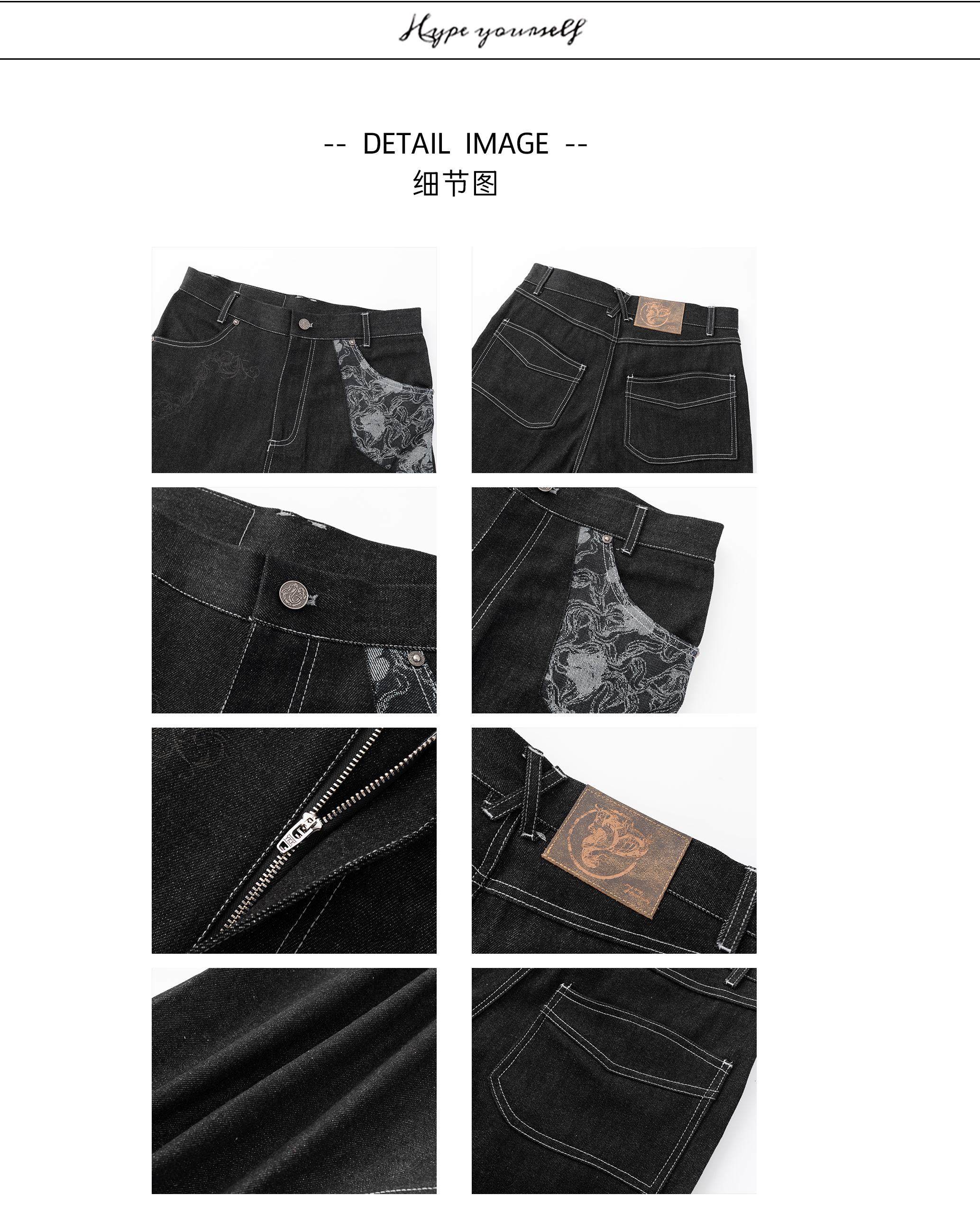 Hypeyourself “Snake Print” Original Wide-Leg Denim Jeans with Narrow Hem, Distressed Floral Jacquard Patchwork, and Slightly Flared Design