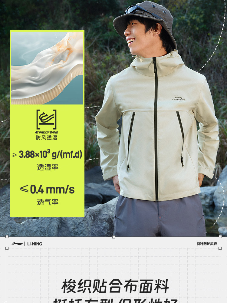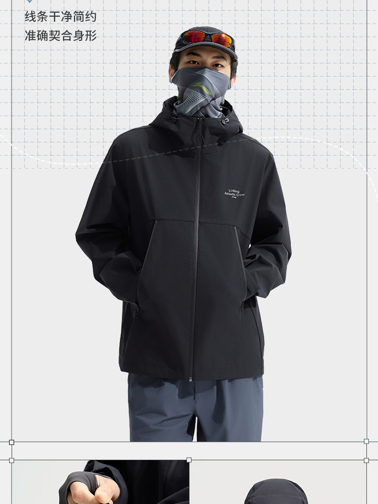 Li Ning Soft Shell Jacket Men's Autumn and Winter New Hooded Jacket Outdoor Mountaineering Windproof and Water-Repellent Top Sports Windbreaker