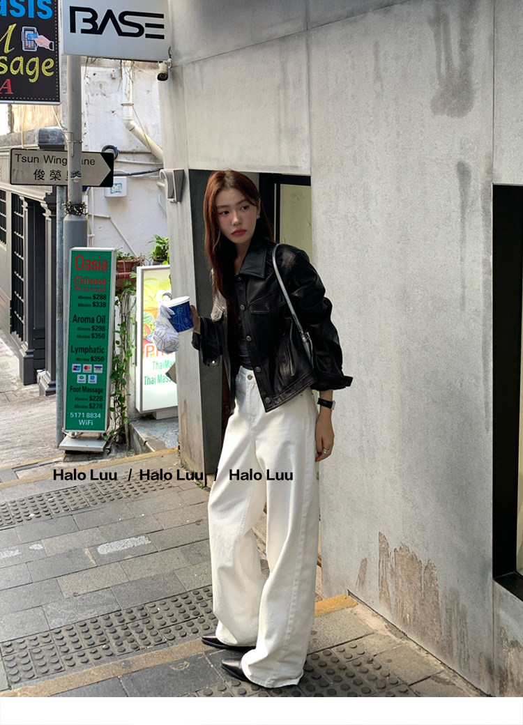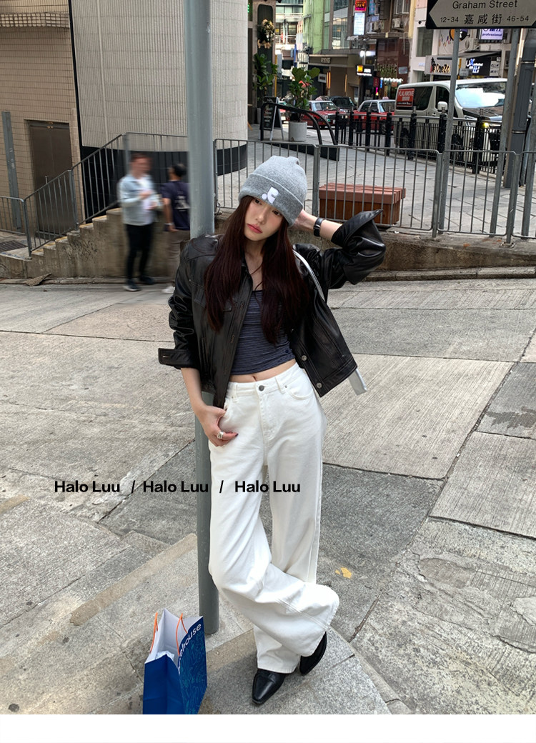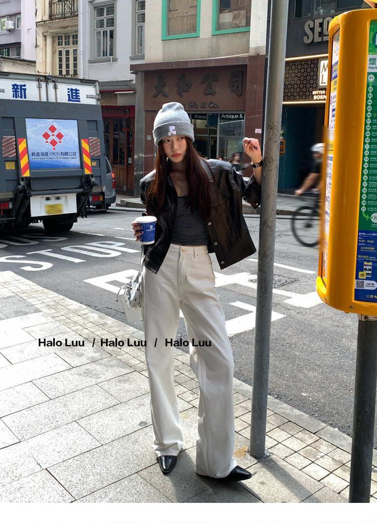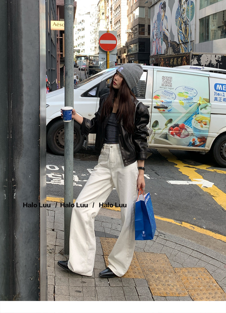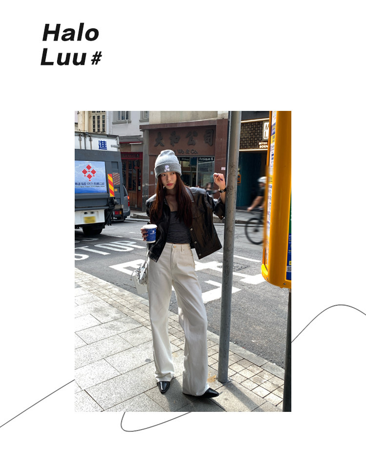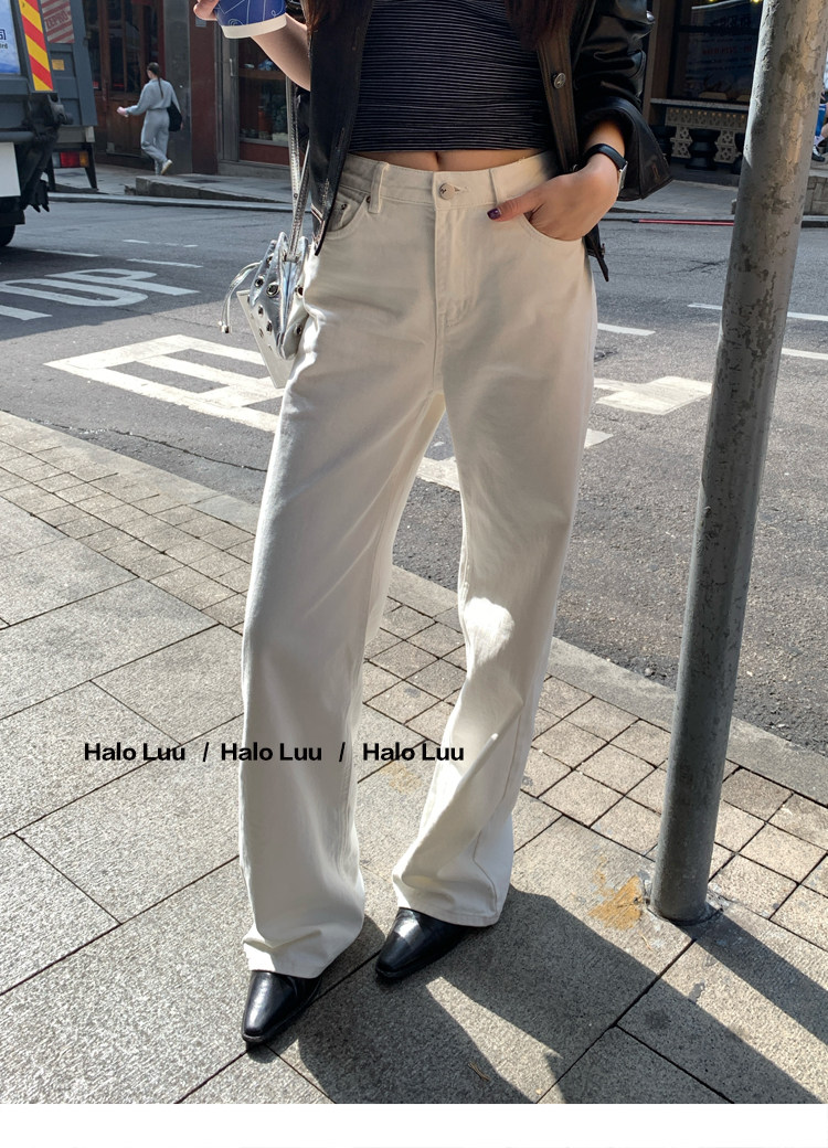 Halo Luu White Straight-Leg Jeans for Women, Spring 2026 New Casual Pants, Slim-Fit Narrow Version, Floor-Length Wide-Leg Pants