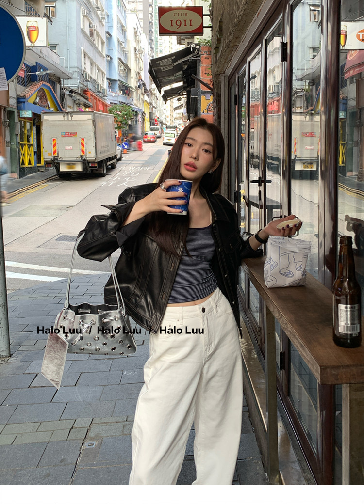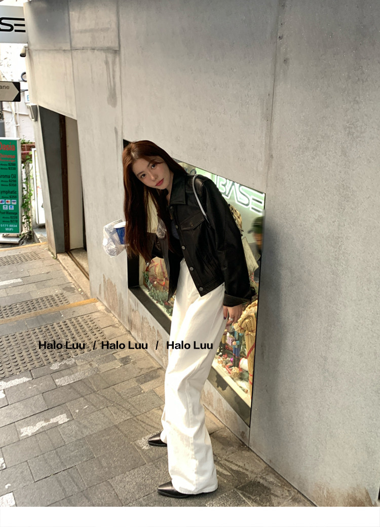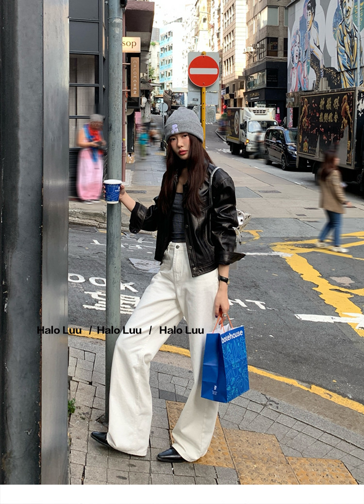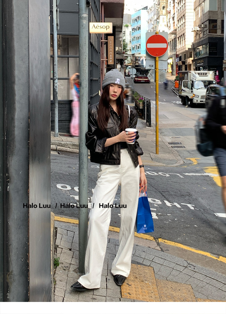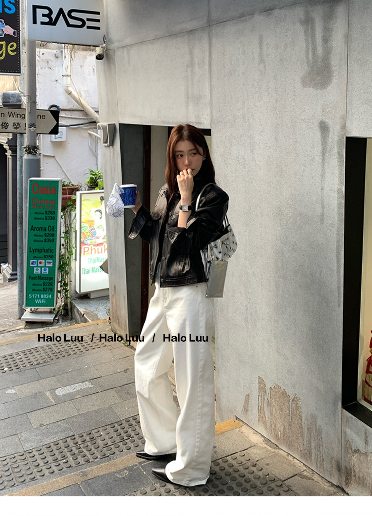 Halo Luu White Straight-Leg Jeans for Women, Spring 2026 New Casual Pants, Slim-Fit Narrow Version, Floor-Length Wide-Leg Pants