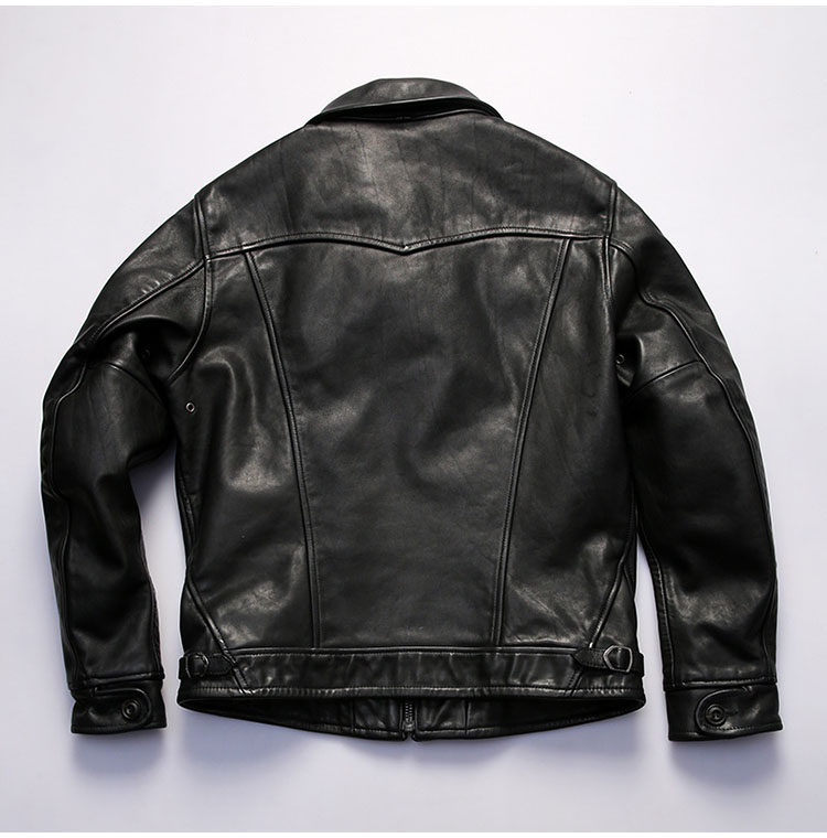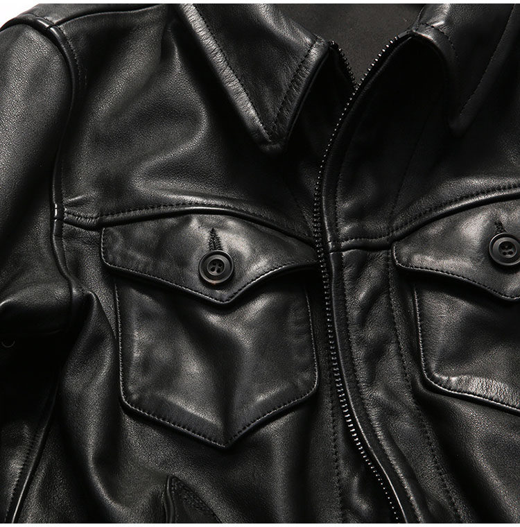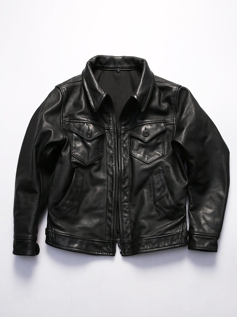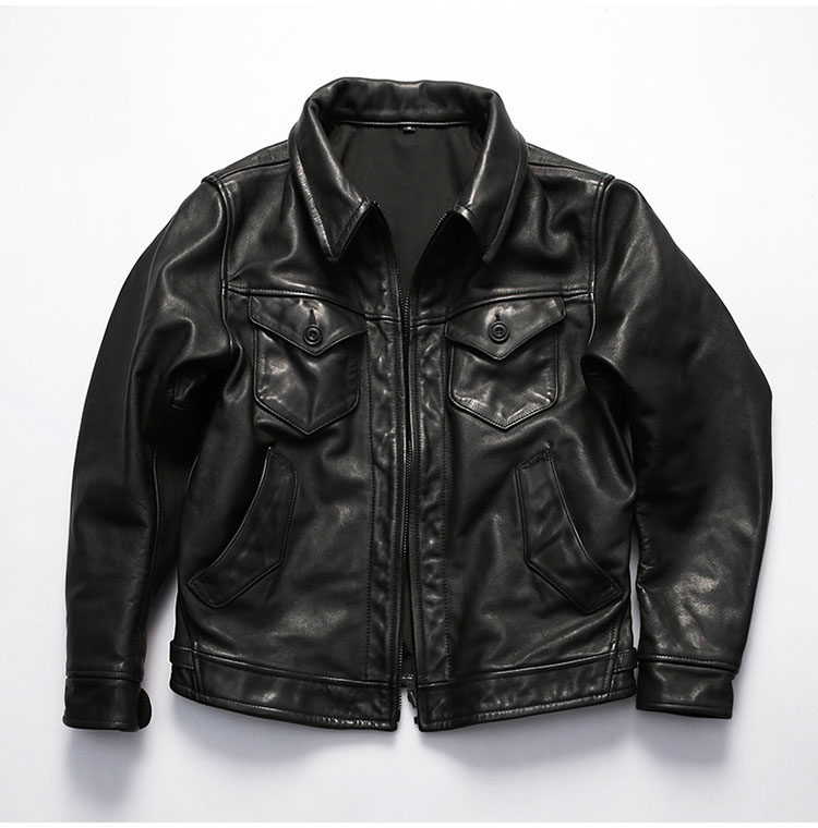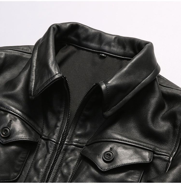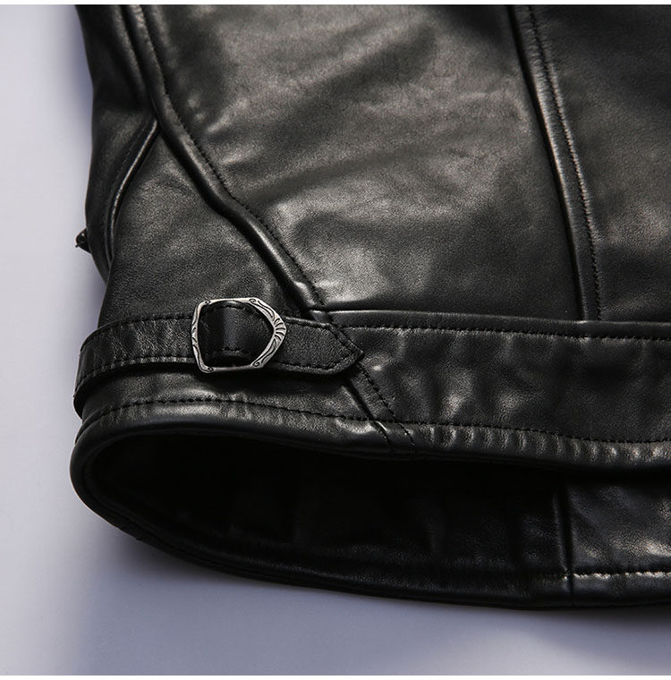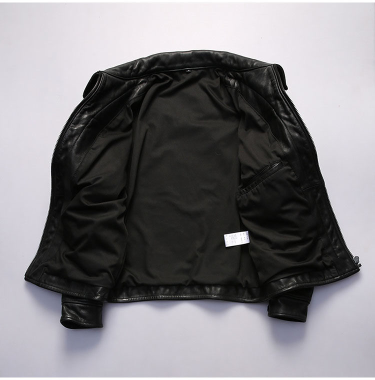Mendoza 1.6mm Uncoated First Layer Calfskin Lapel Slim Short Biker Leather Jacket Men's Genuine Leather Jacket