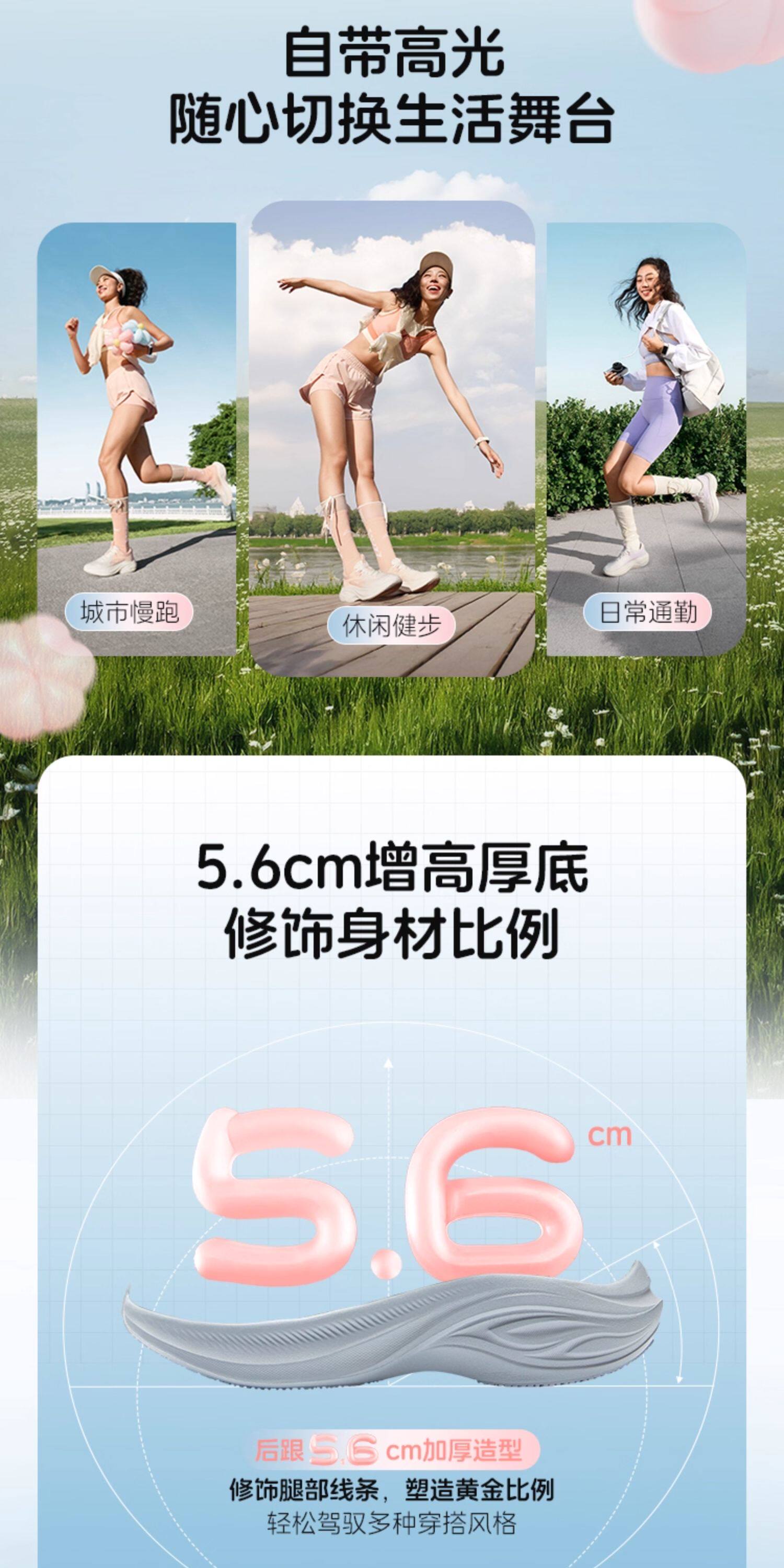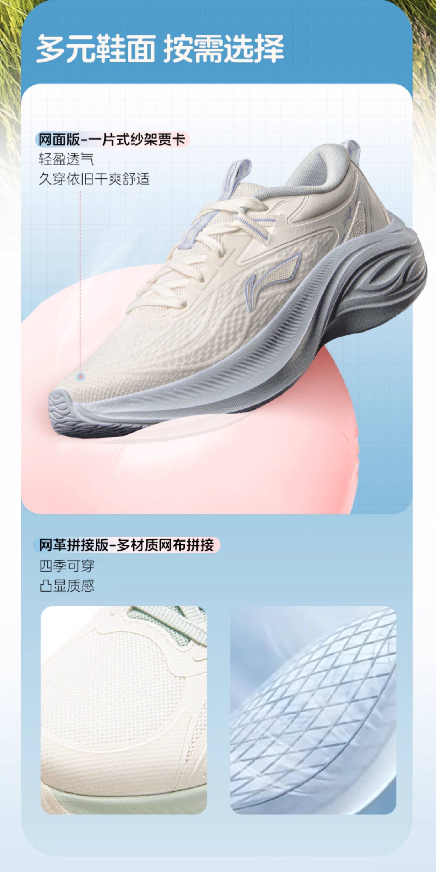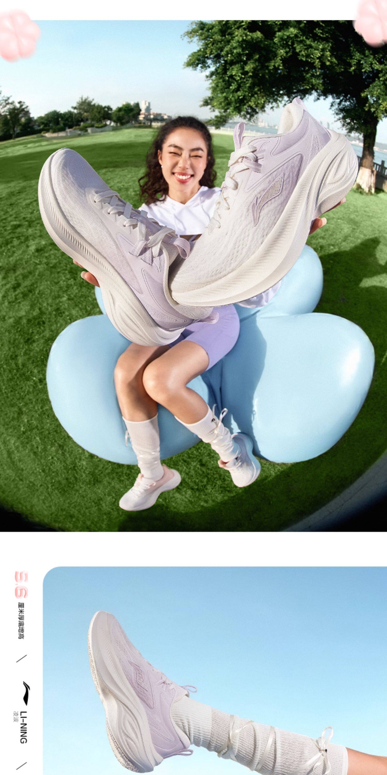 Li-Ning Women's Running Shoes, Lightweight and Breathable, New Summer Model, Thick-Soled, Height-Increasing, Shock-Absorbing, Soft-Soled, Jump Rope, Casual Sports Shoes