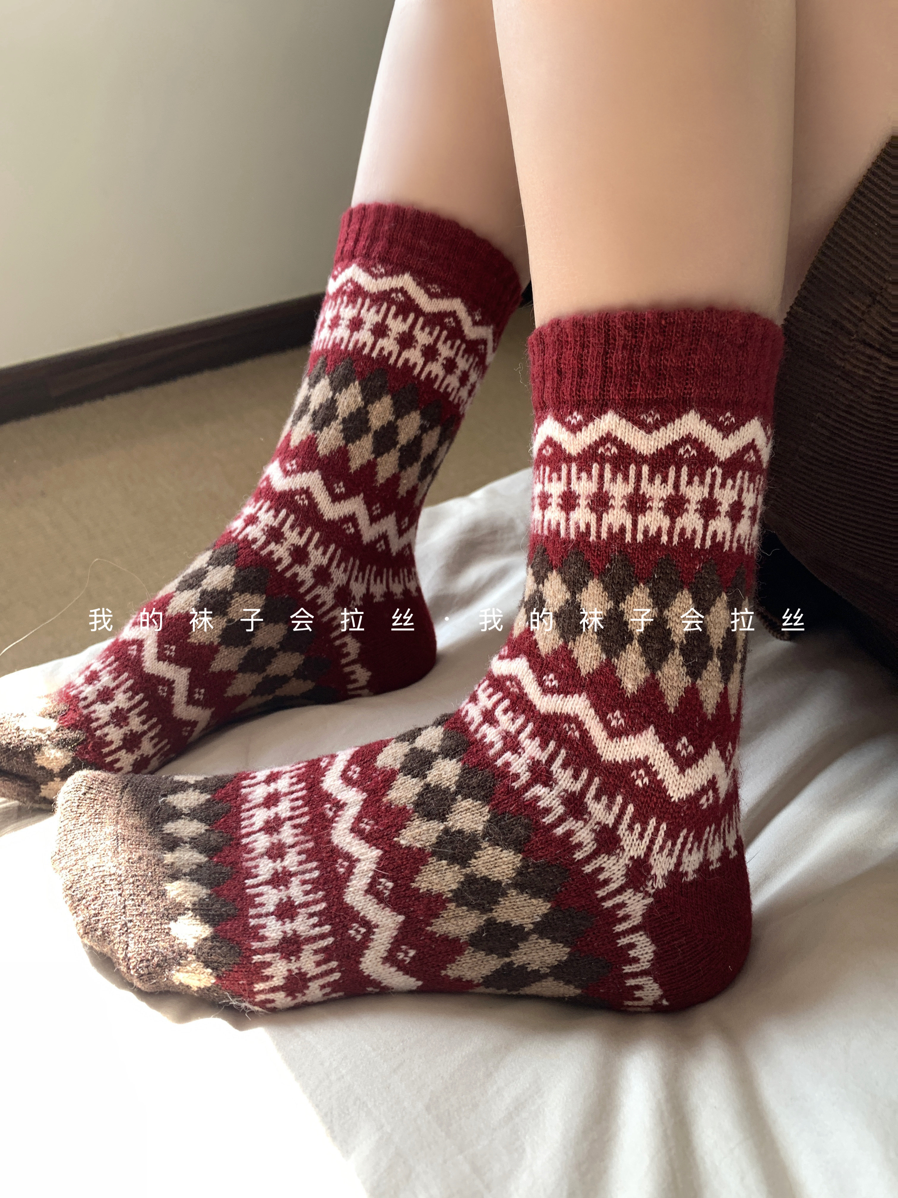 5-Color Fair Isle Argyle Autumn and Winter Warm Japanese Retro Ethnic Style Wool Socks (111)