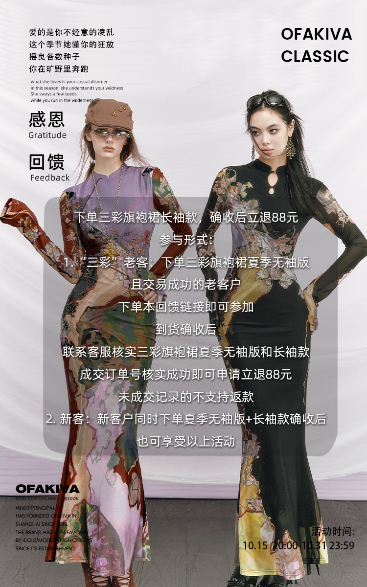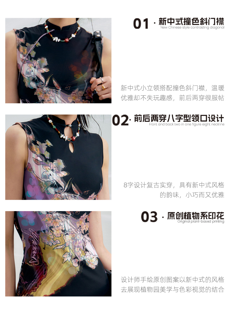 [Same Style as Li Meng] Ofakiva “Three Colors” New Chinese-Style Reversible Color-Blocked Printed Cheongsam Dress