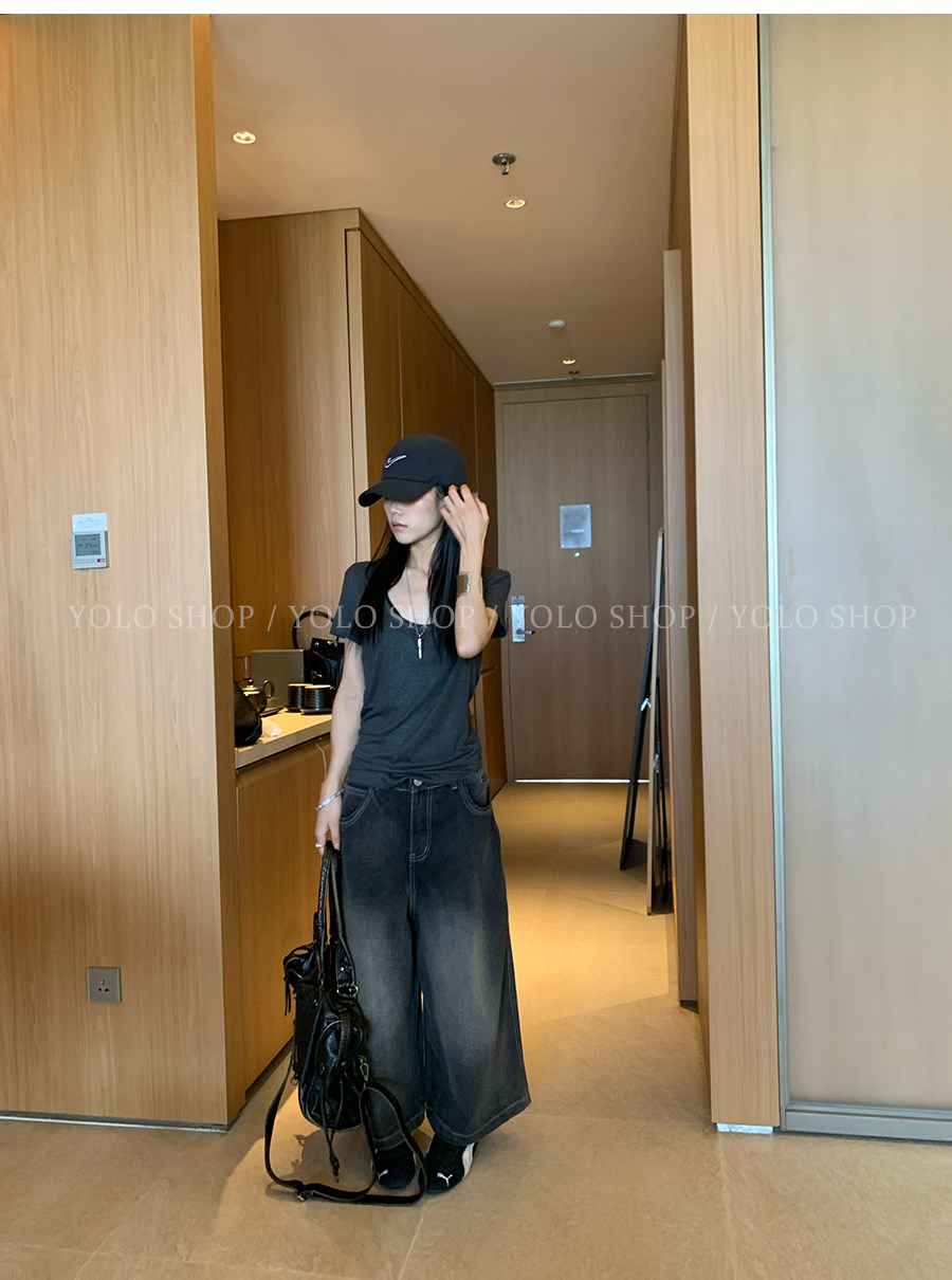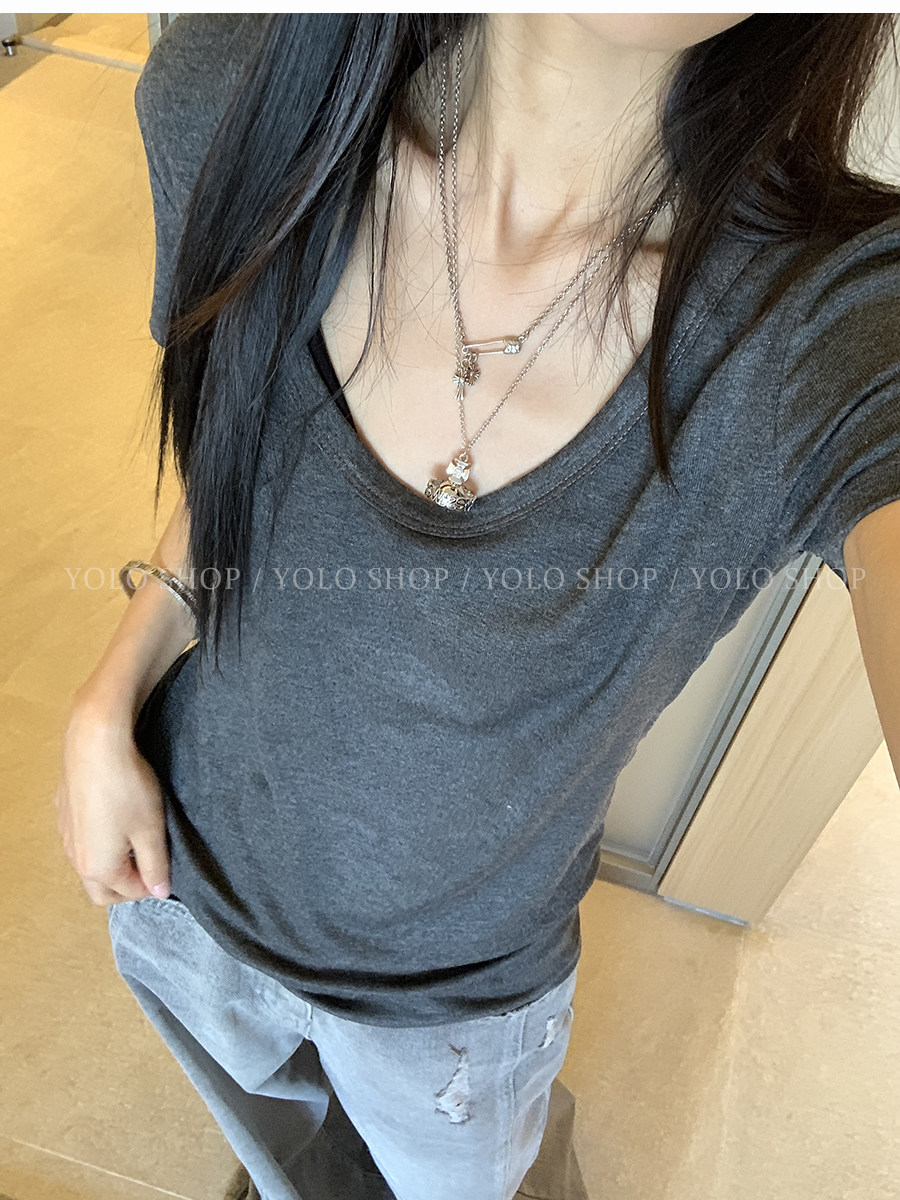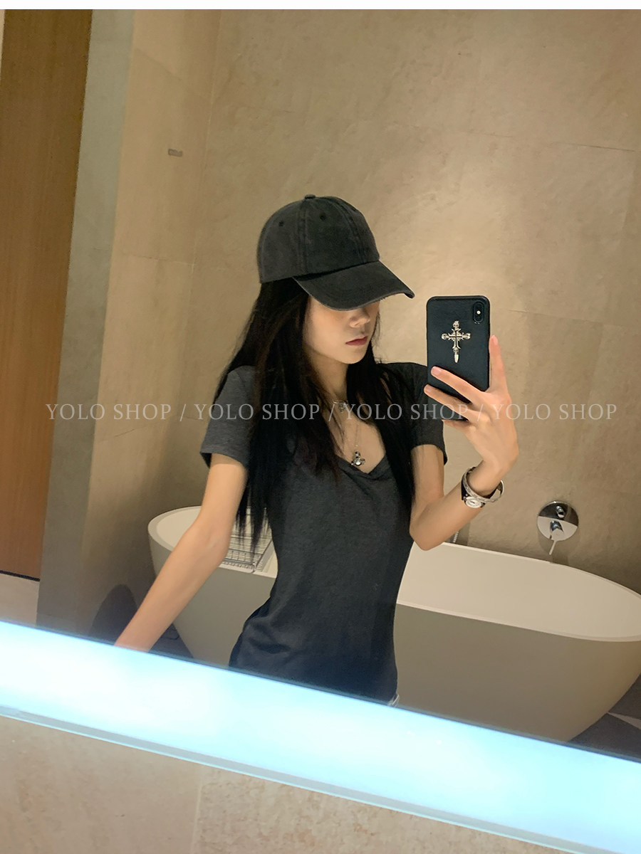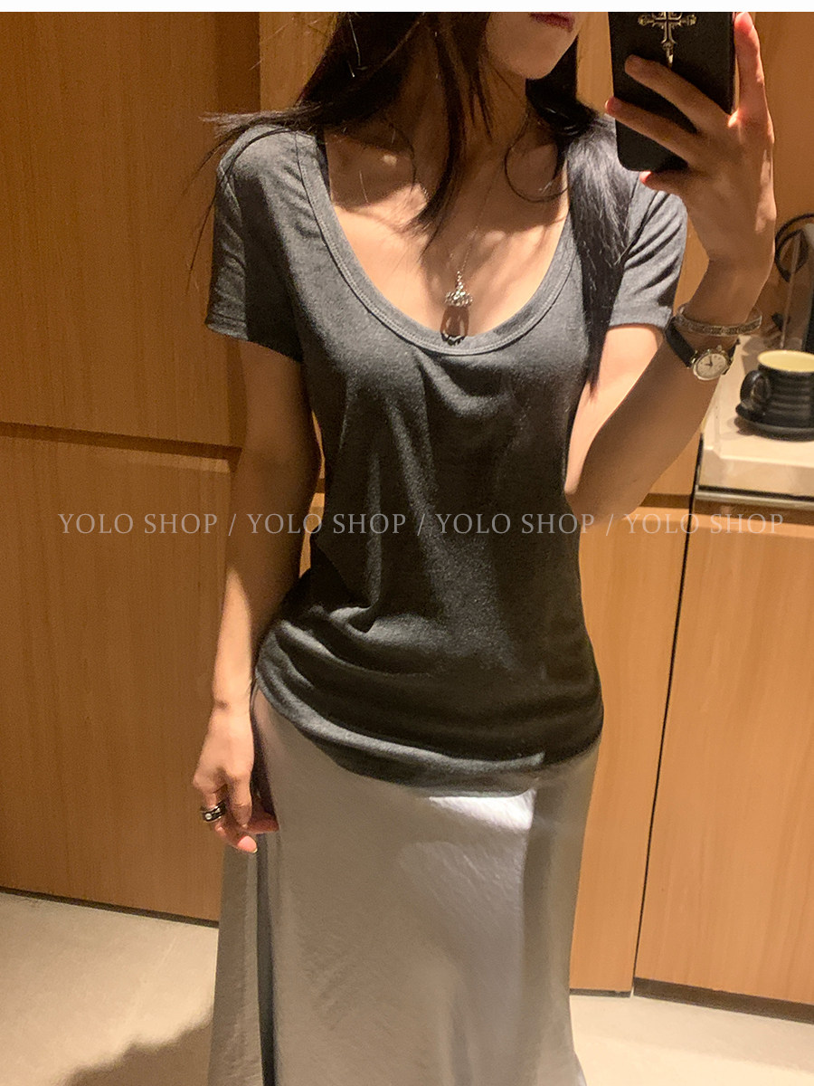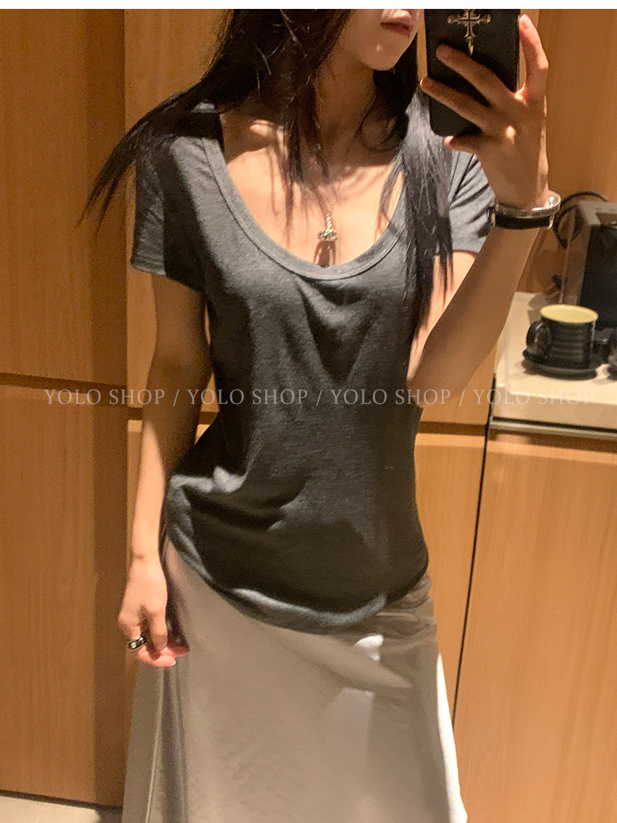 这个夏天谁能不爱这种简简单单的T恤 百搭又好穿 面料是有弹力的 软软糯糯 非常亲肤 版型改了来回11次 终于做到了宽松却修身的感觉了 腰线收拢多1毫米都会破坏自然垂坠感 超显瘦 完全不用担心会显胖的问题 领型经过调整做的是uv结合的感觉 比圆领多一分女人味,比深v少一分张扬 袖子也是做到能包裹住手臂粗的那一段 夏天搭配短裤、长裤适配度都很高 也完全可以当居家服穿哦