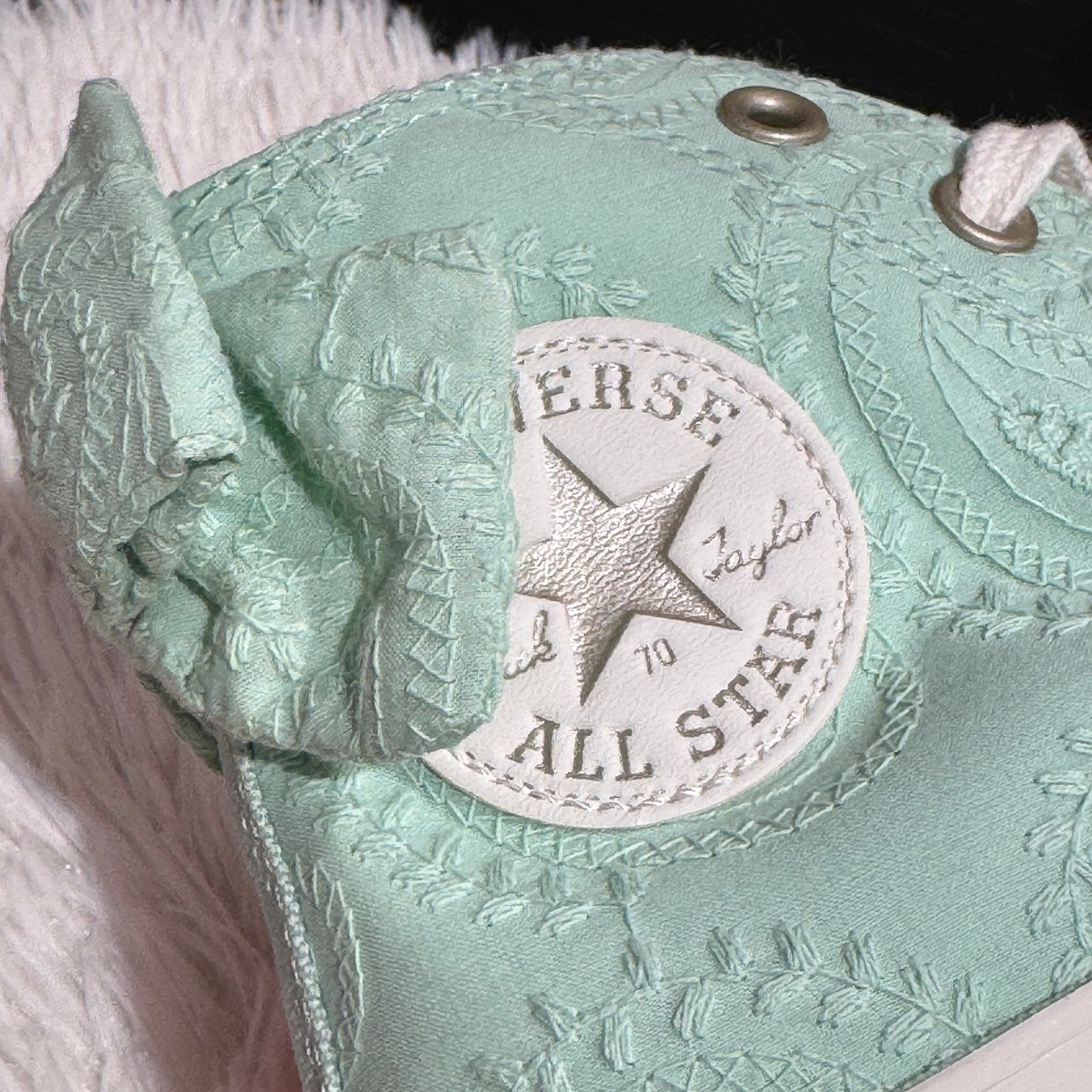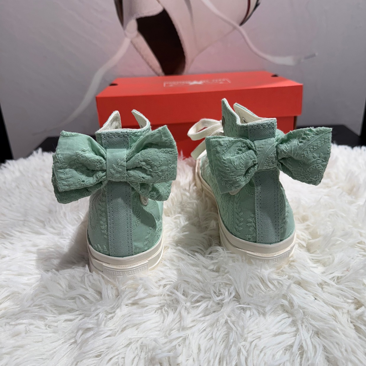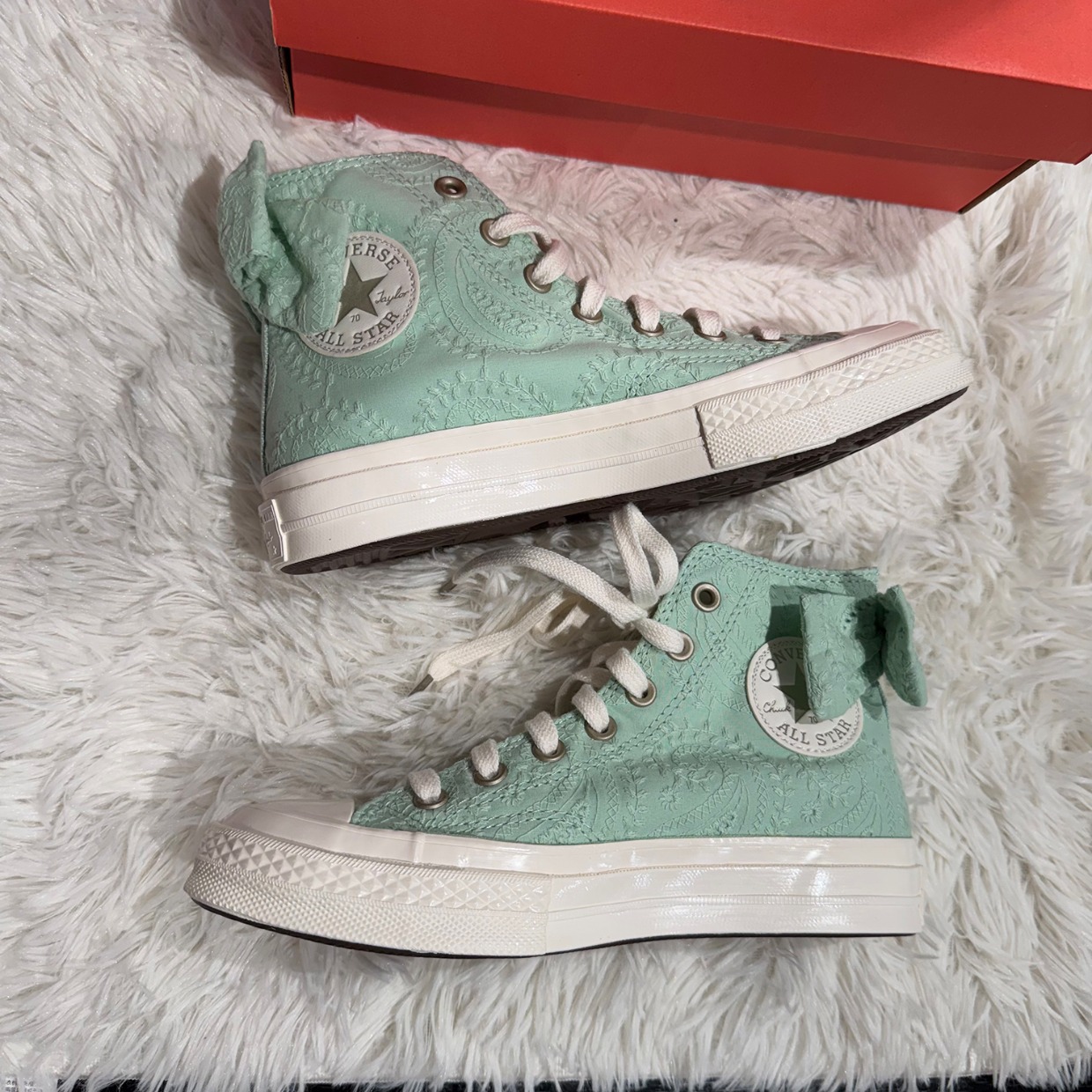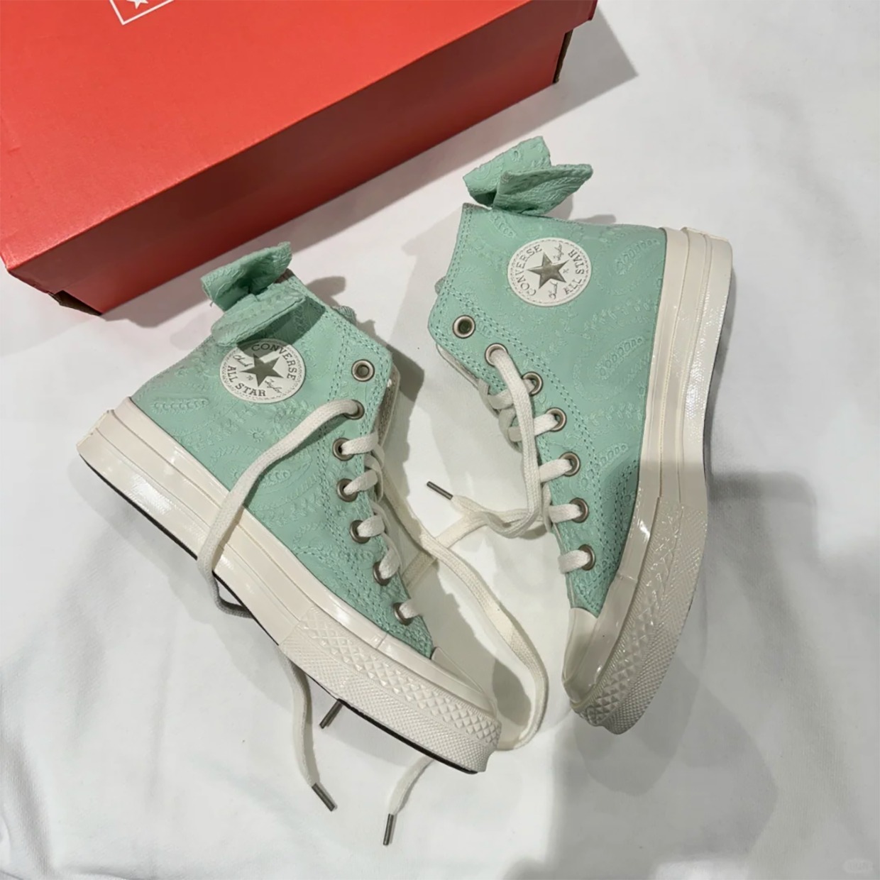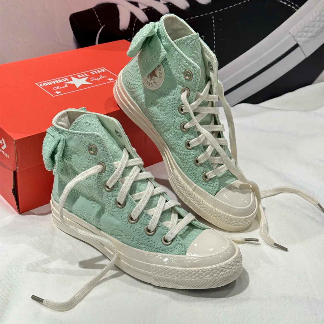 Authentic Converse Converse Mint Green Paisley Bow High-Top Women's Casual Canvas Shoes A10245C