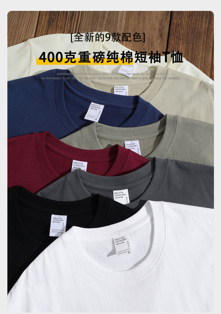 Xinjiang Cotton 400g Heavyweight Pure Cotton Short-Sleeved T-Shirt for Men and Women, Couple Half-Sleeve Summer White Round Neck Loose Base Shirt