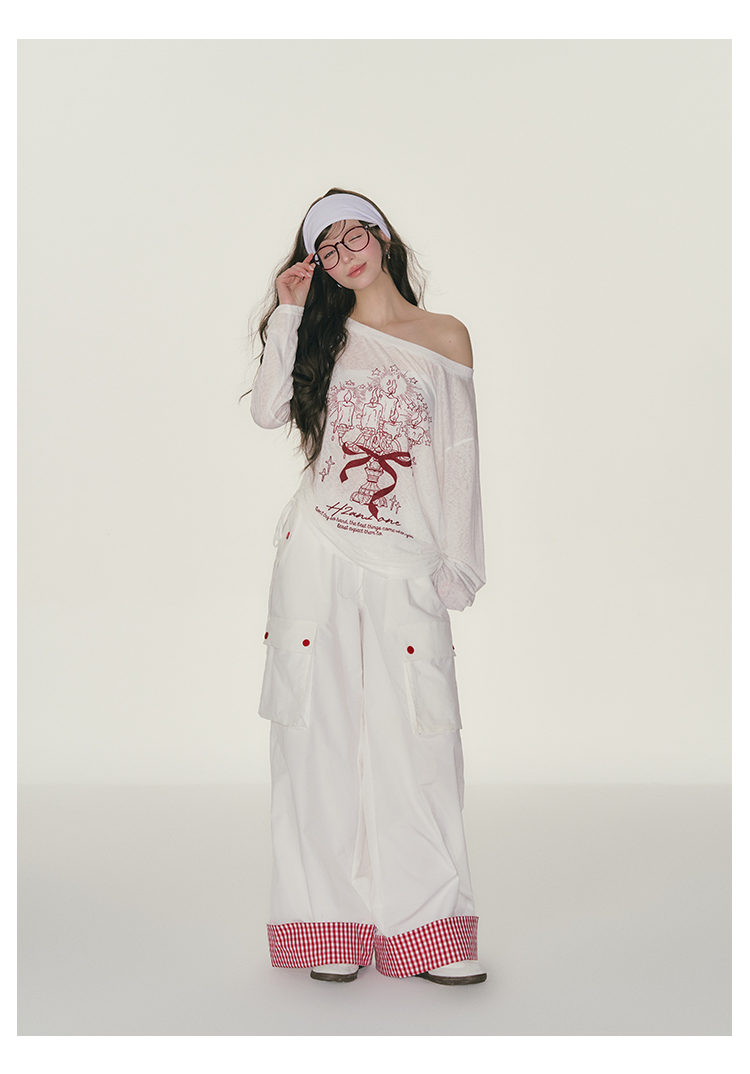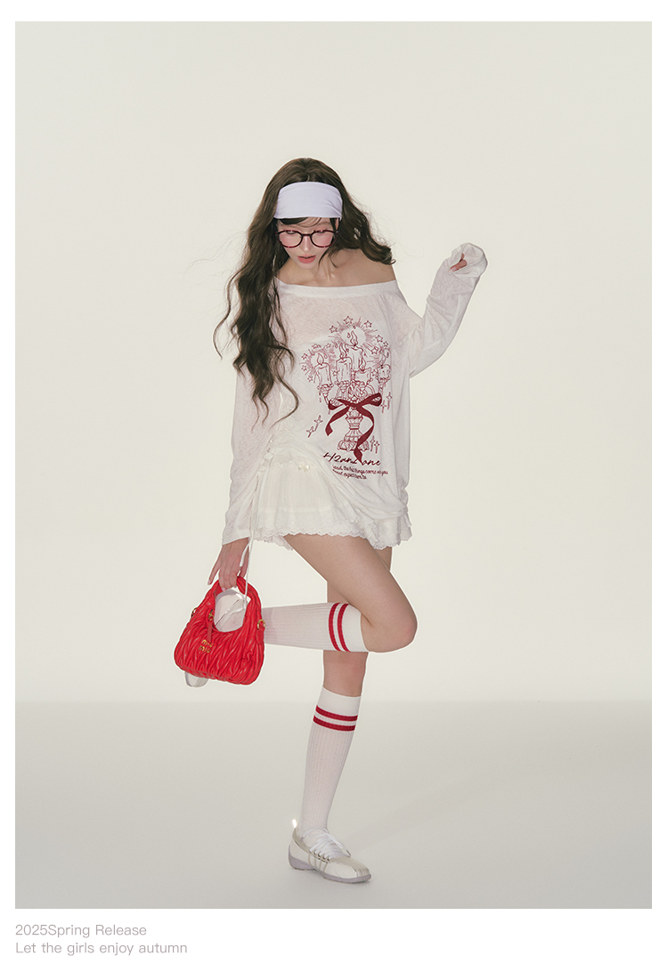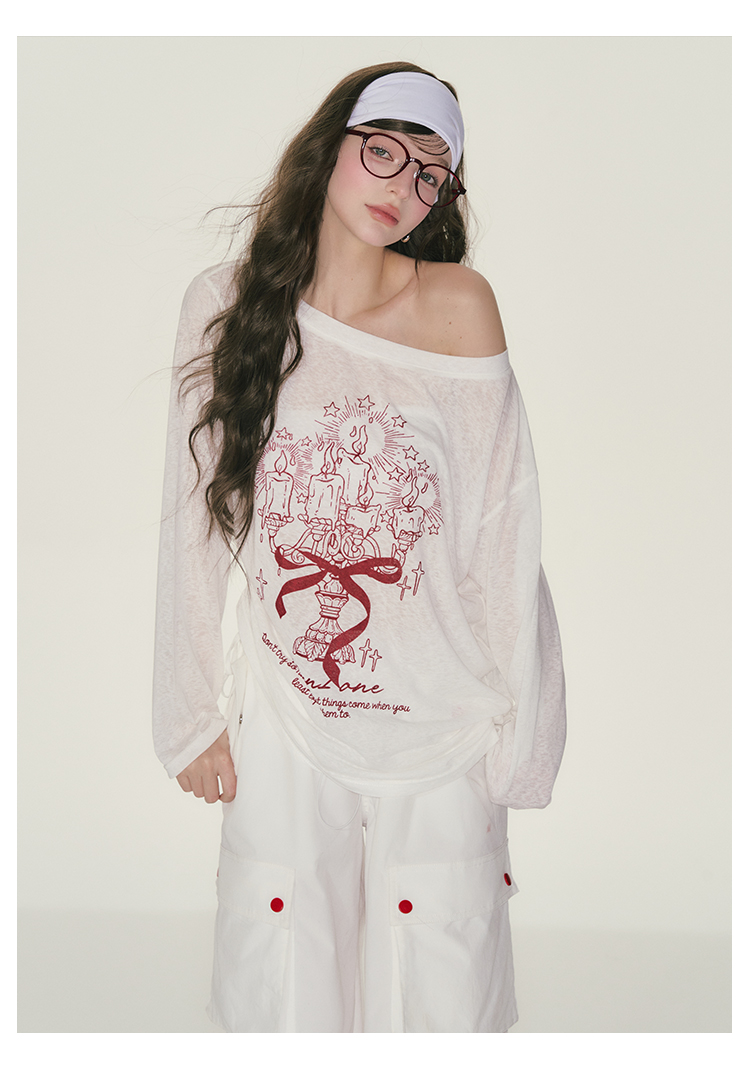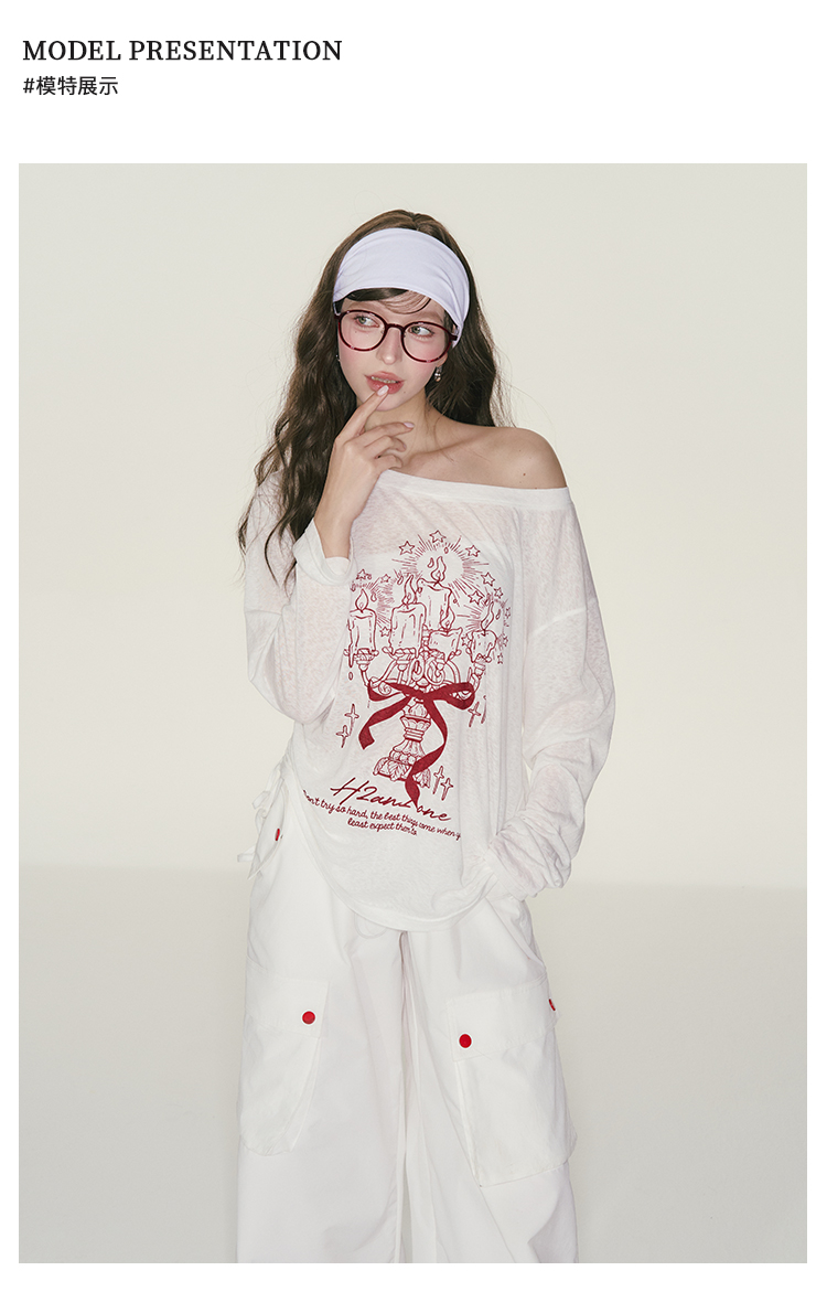 H2An1 Studio丨2025 New Graffiti Off-Shoulder T-Shirt Sun Protection Cover-Up for Women, Spring and Summer Thin Loose Top