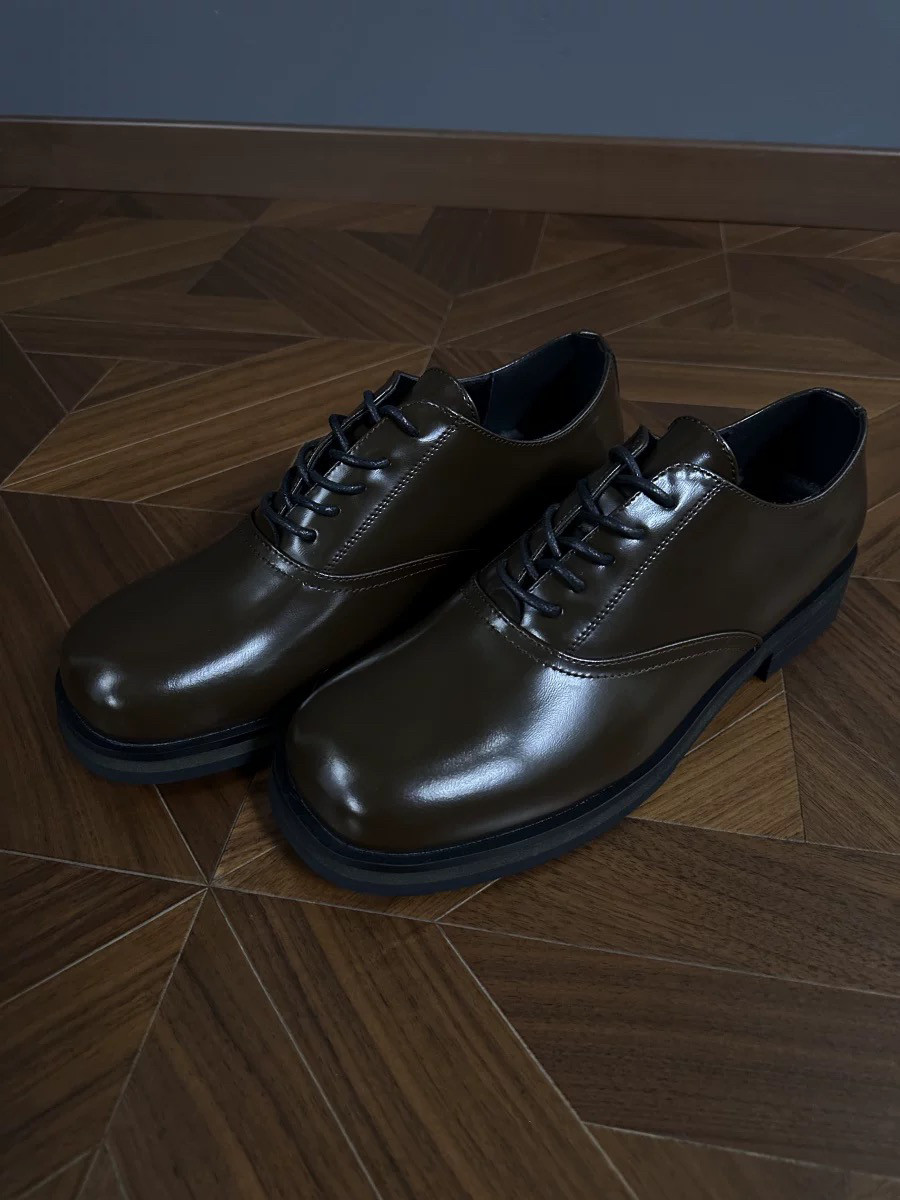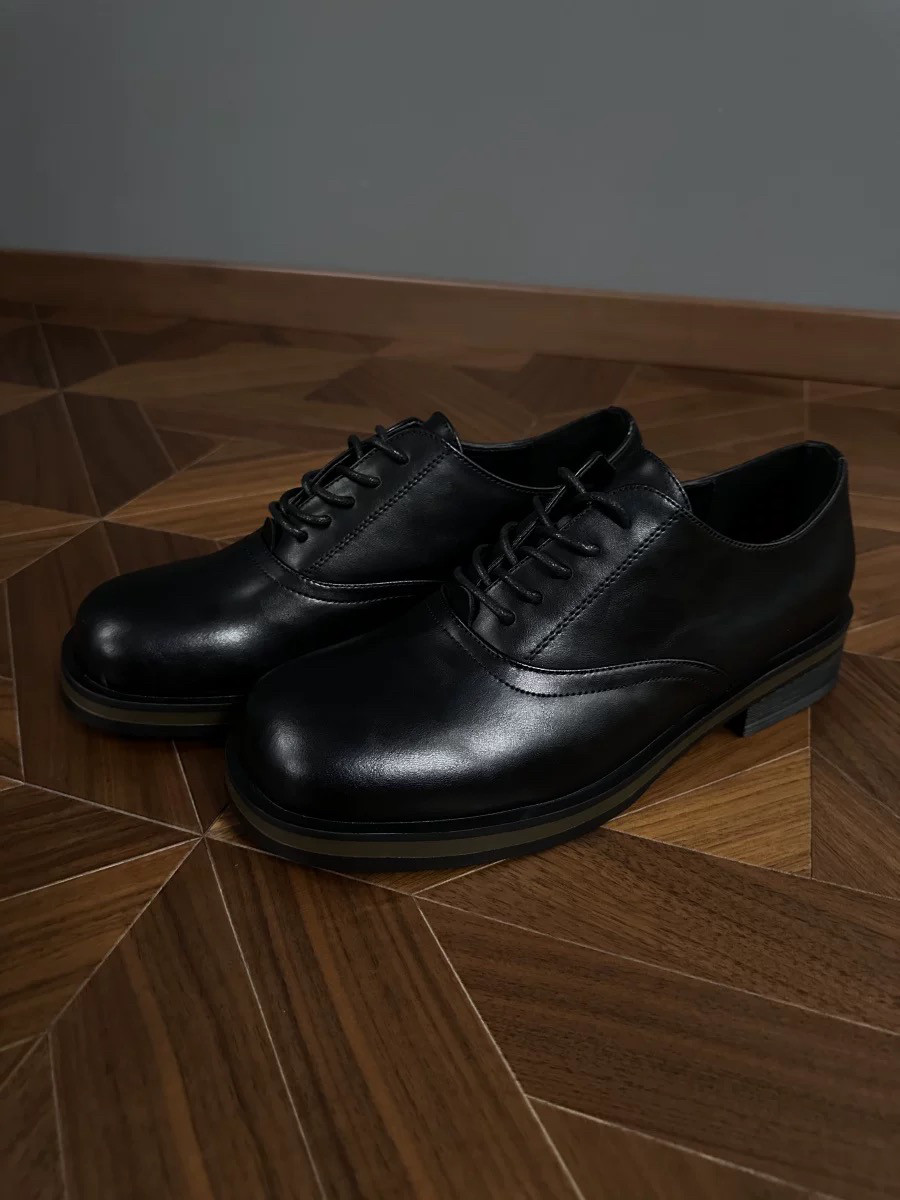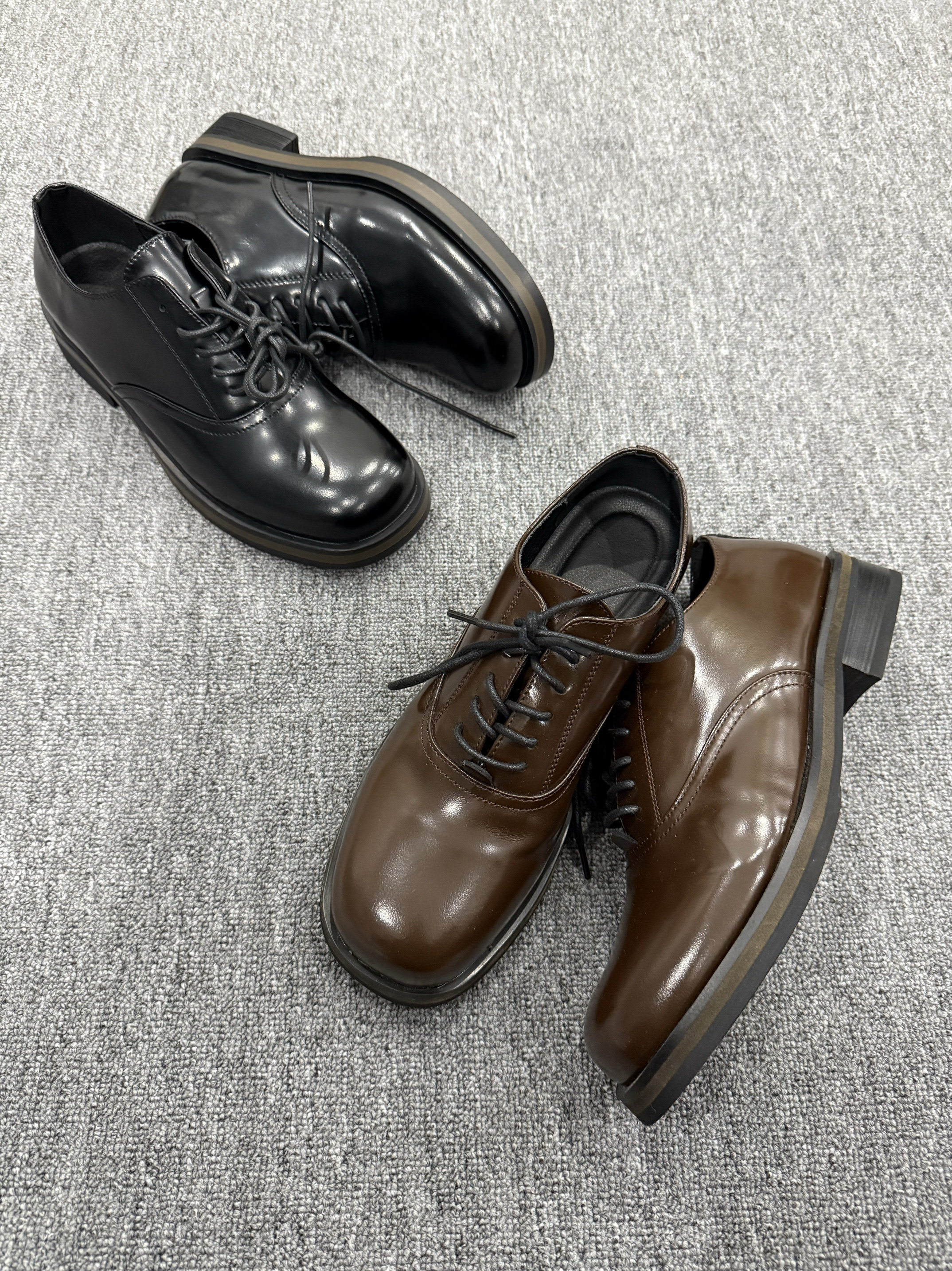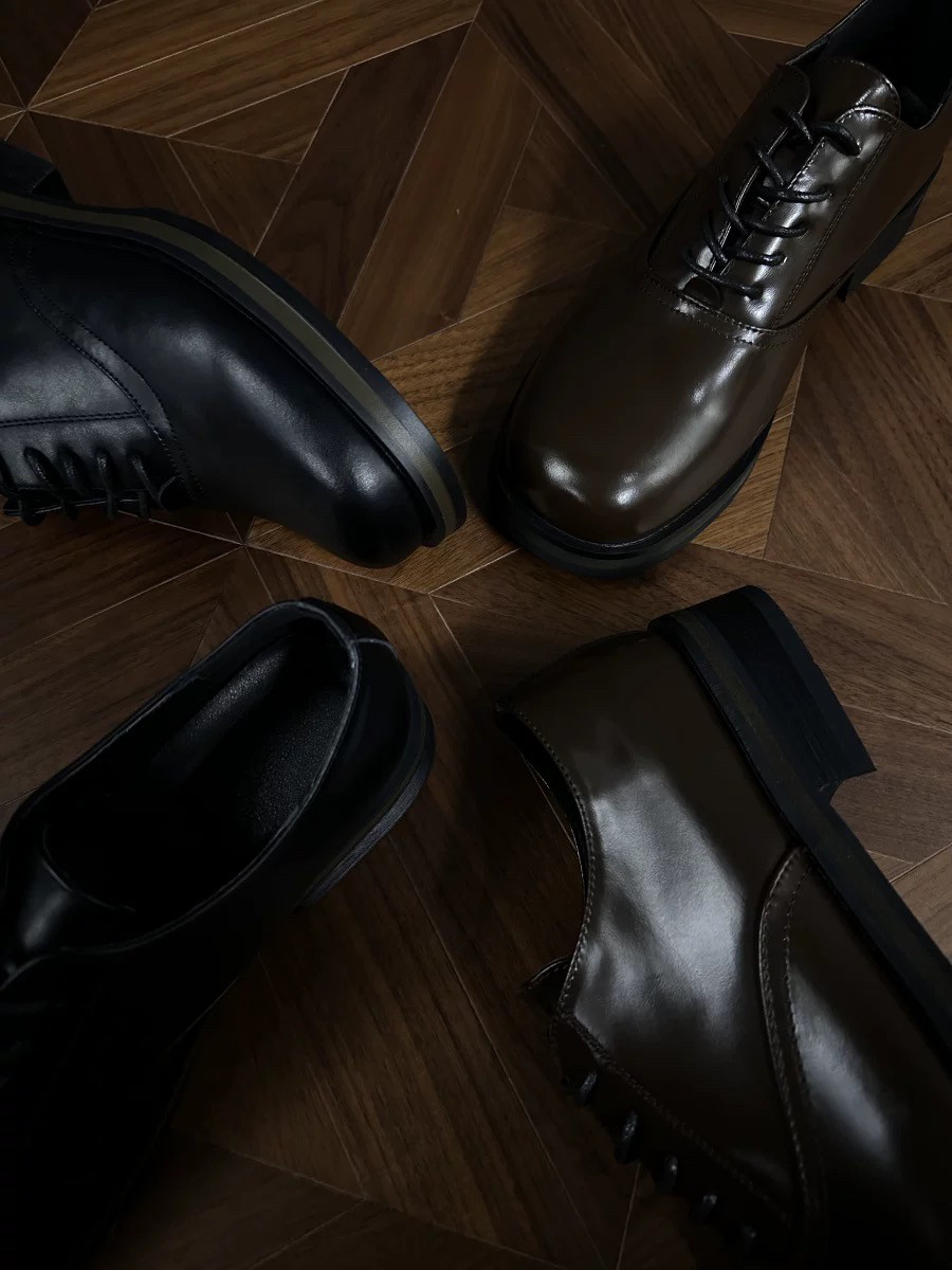 Roes Italian First-Layer Leather Horse Oil Leather Lining Cleanfit Square-Toe Derby Height-Increasing Leather Shoes for Men and Women