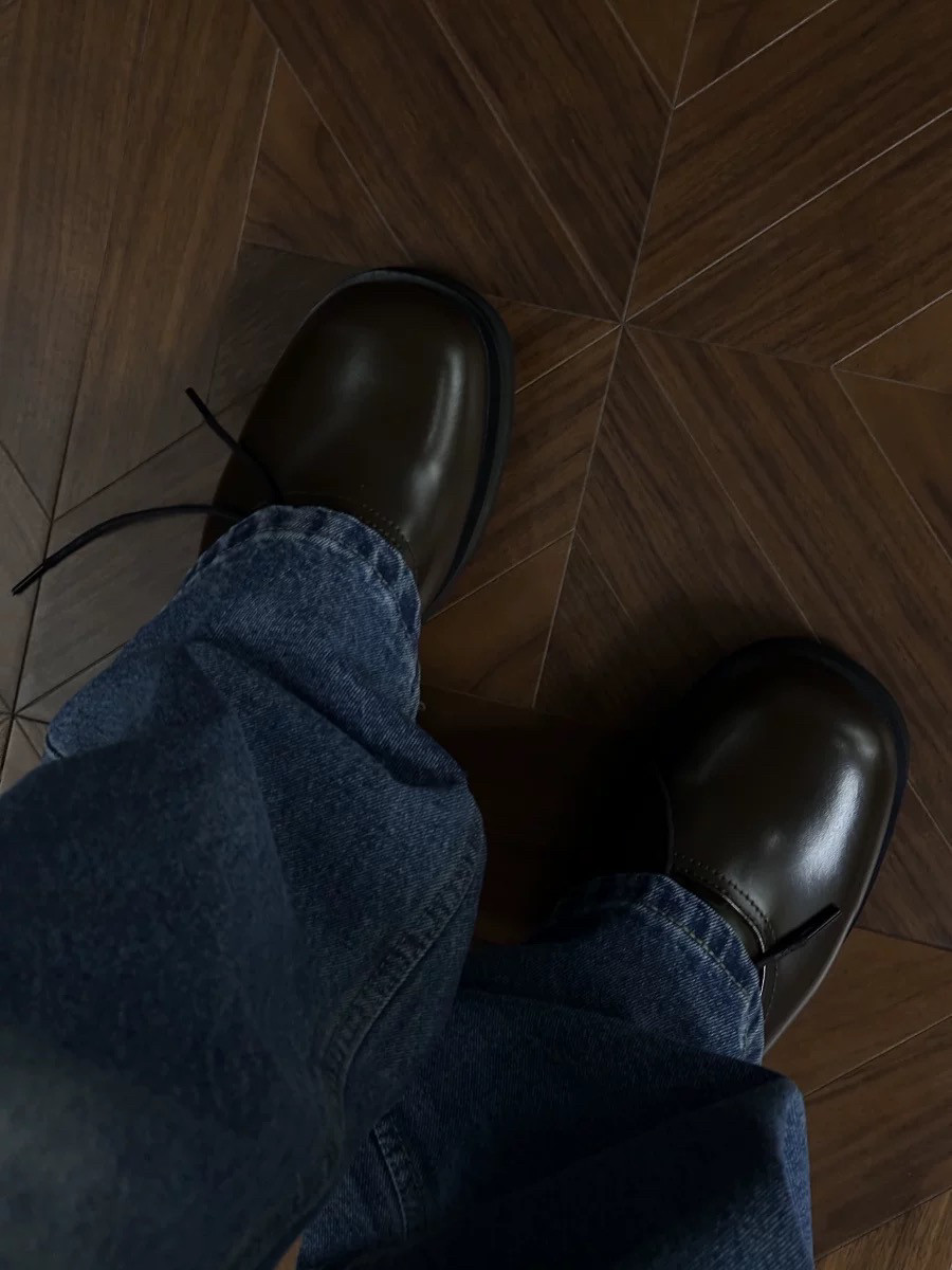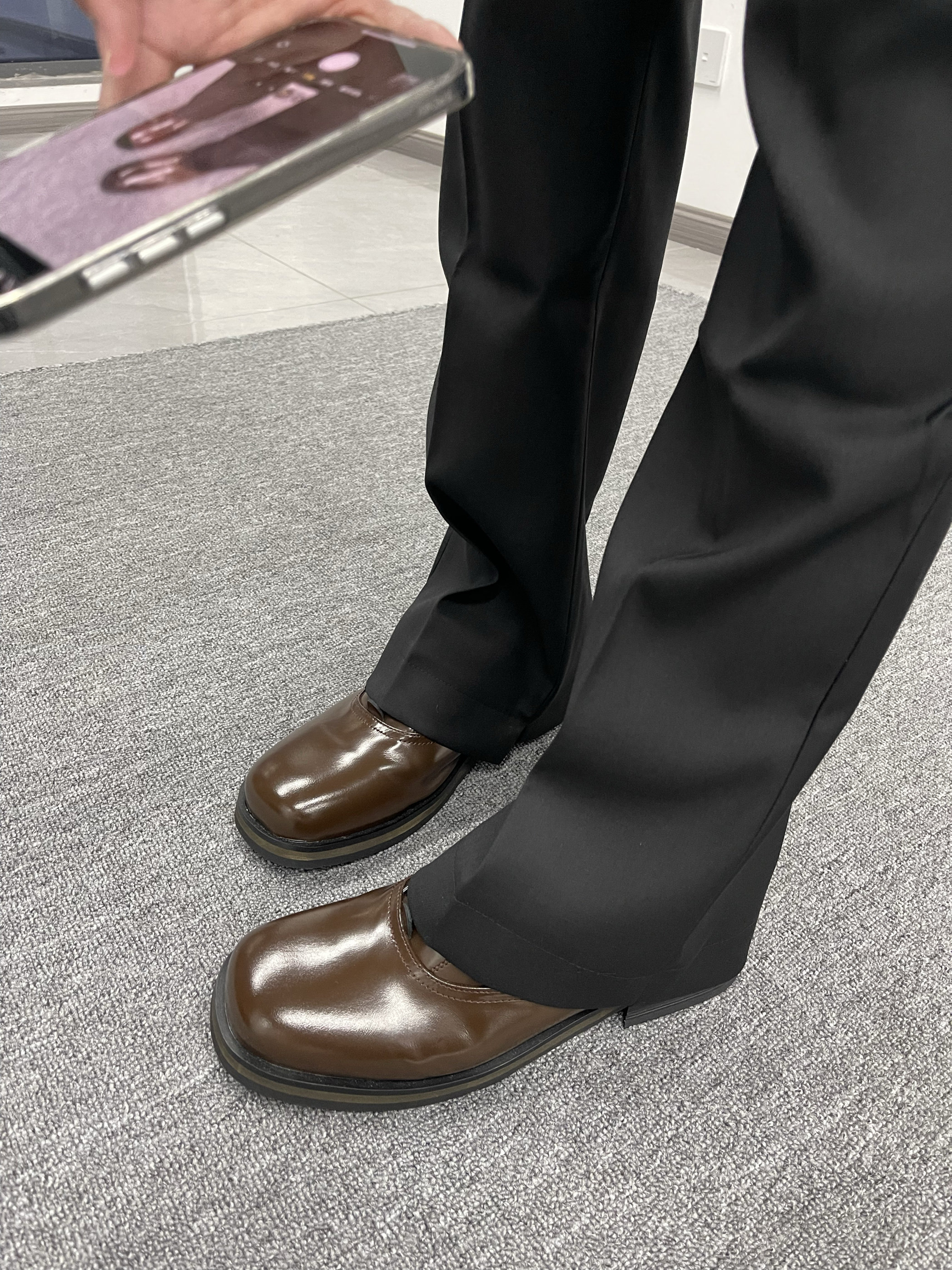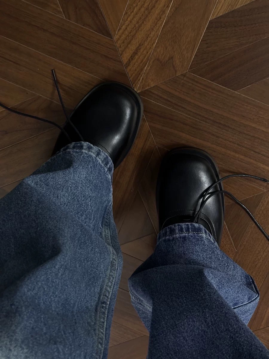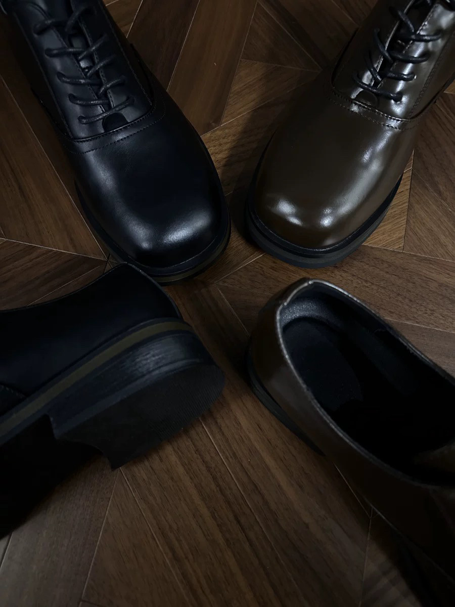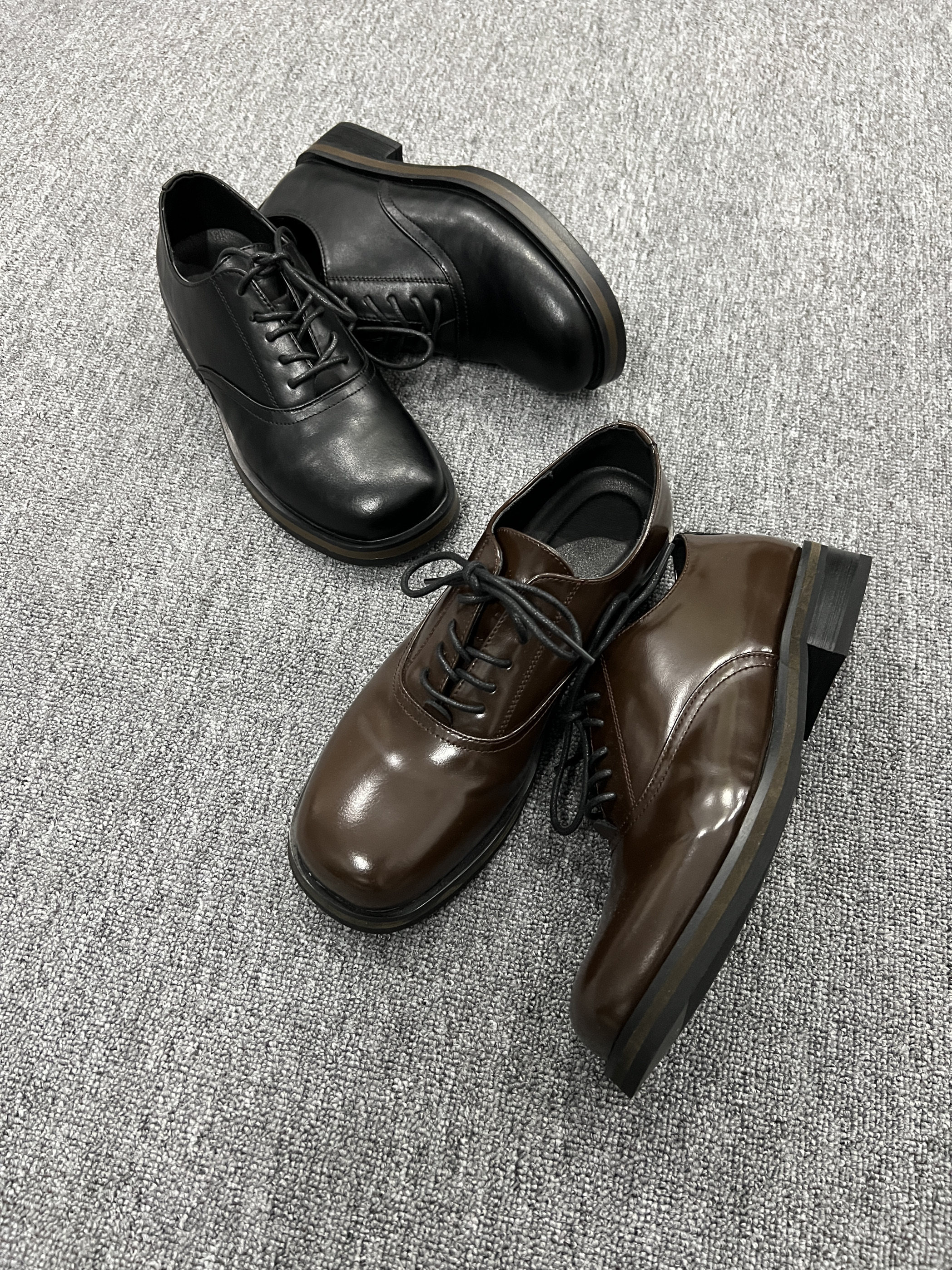 Roes Italian First-Layer Leather Horse Oil Leather Lining Cleanfit Square-Toe Derby Height-Increasing Leather Shoes for Men and Women