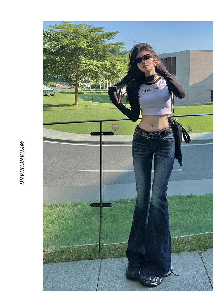 American Retro Low-Waist Flared Jeans for Women 2026 Spring/Summer New Elastic Slim-Fit Bootcut Pants
