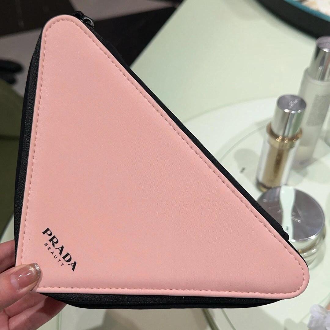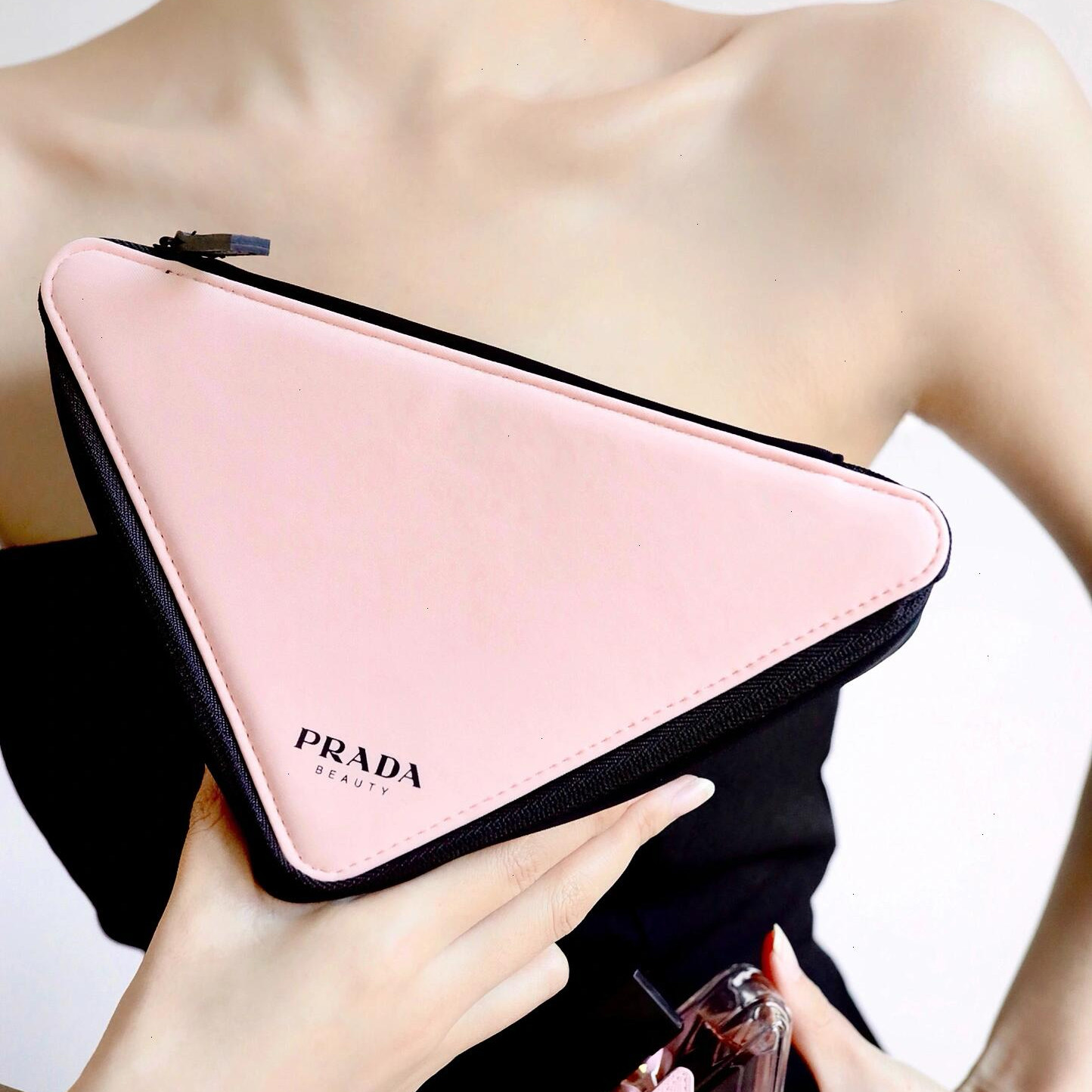 Prada Pink Triangular Cosmetic Bag Large Capacity Storage Bag Portable Travel Toiletry Bag