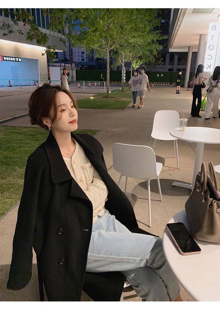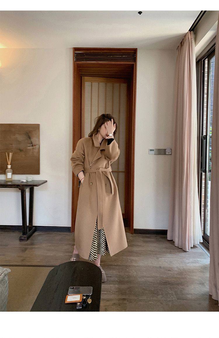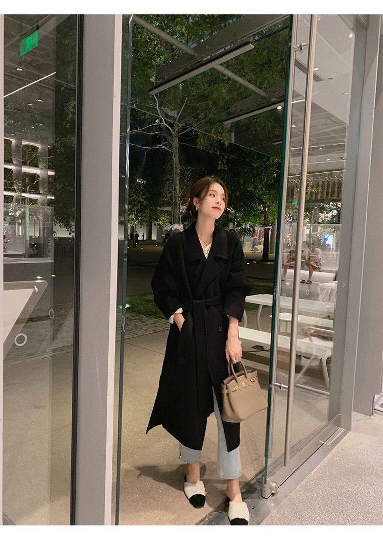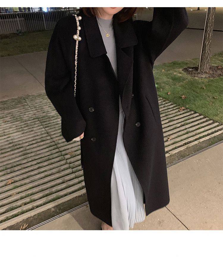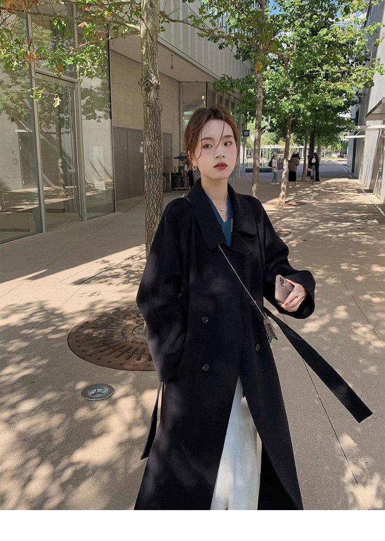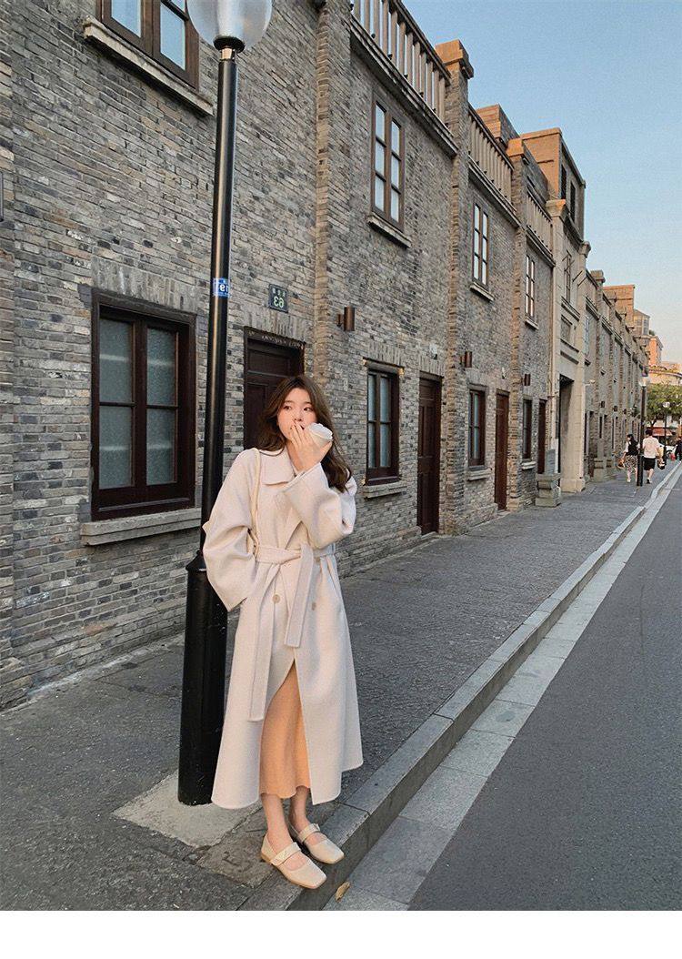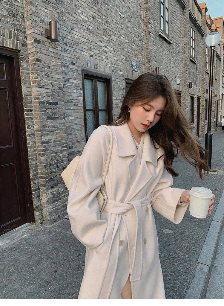 2025 Spring, Autumn, and Winter New Woolen Mid-Length Coat, White Hepburn Style Popular Fashion Korean Style Slimming Coat for Women
