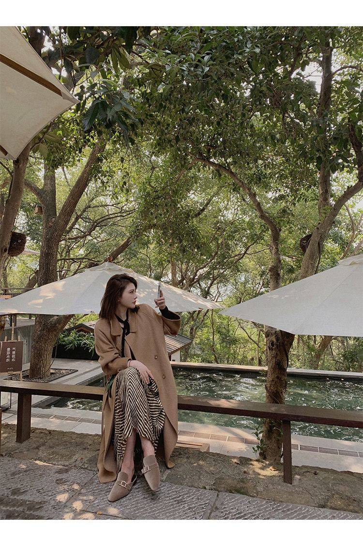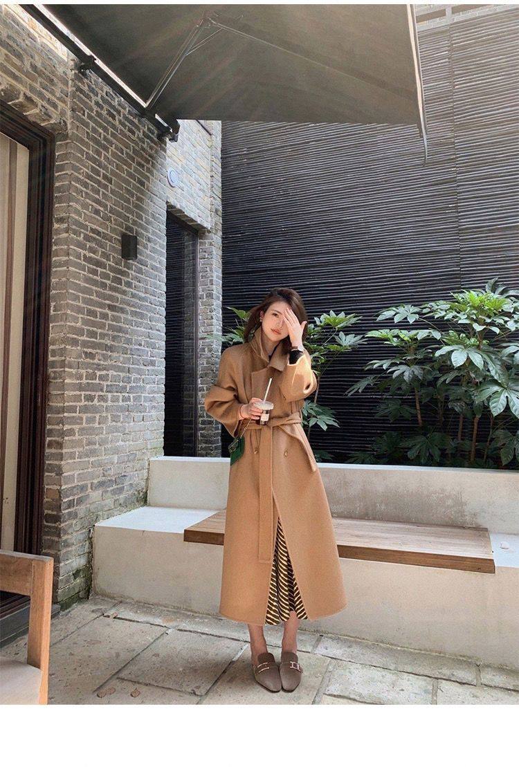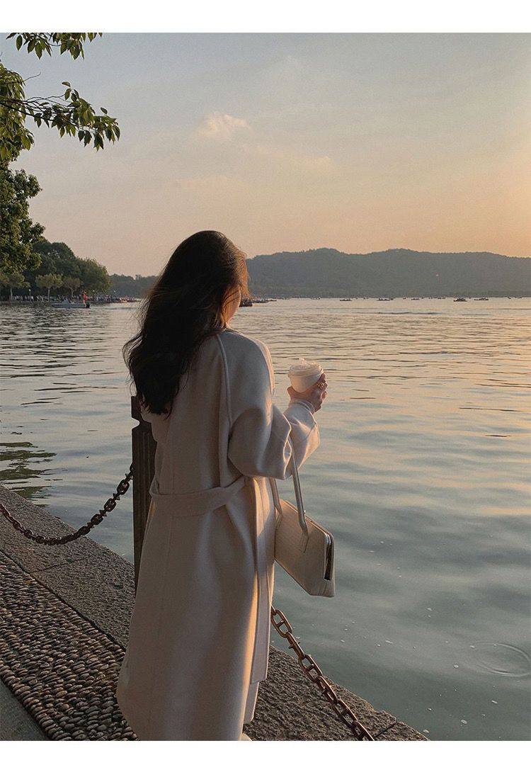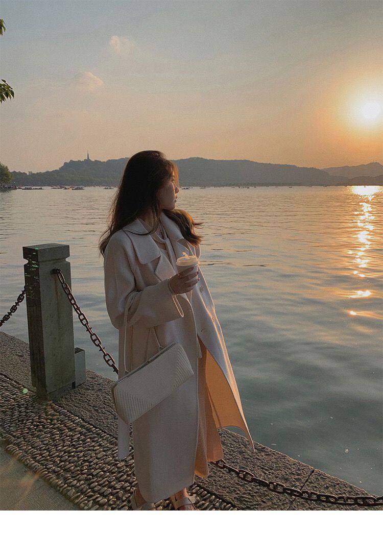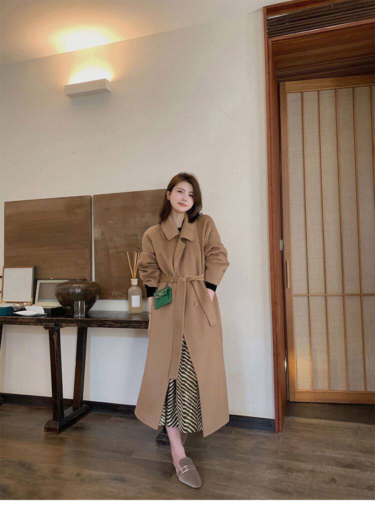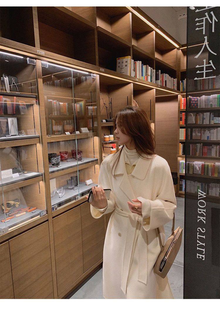 2025 Spring, Autumn, and Winter New Woolen Mid-Length Coat, White Hepburn Style Popular Fashion Korean Style Slimming Coat for Women