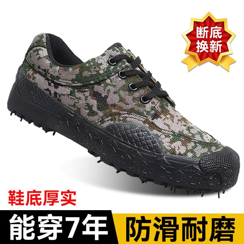 Jiefang shoes men's Non Slip Abrasion Resistant labor work yellow sneakers camouflage shoes yellow rubber shoes training shoes rubber shoes Running Shoes