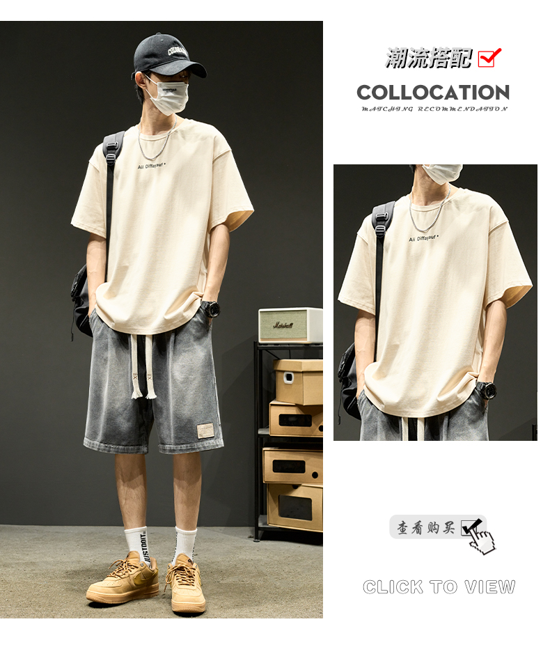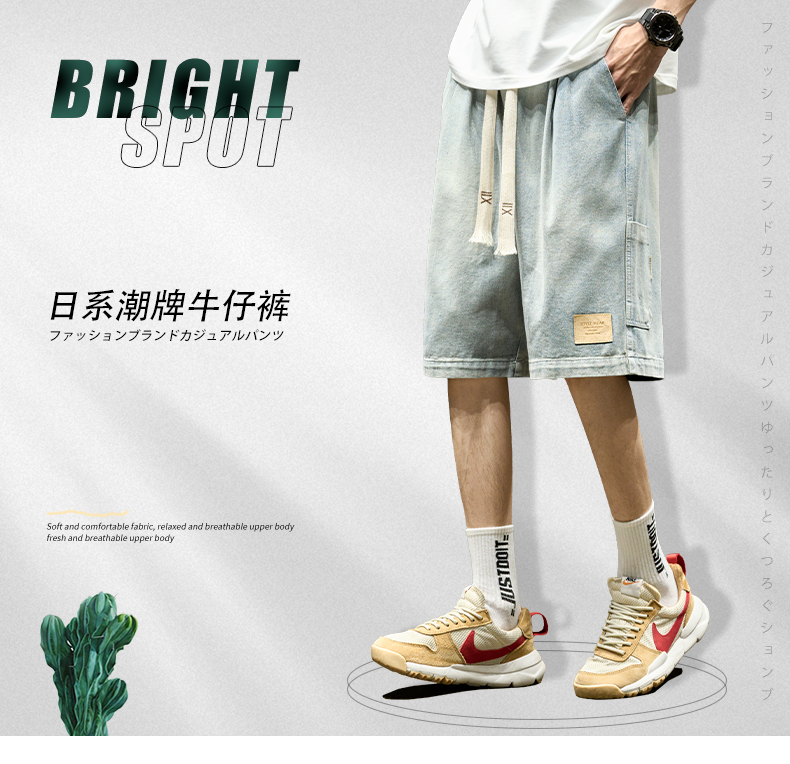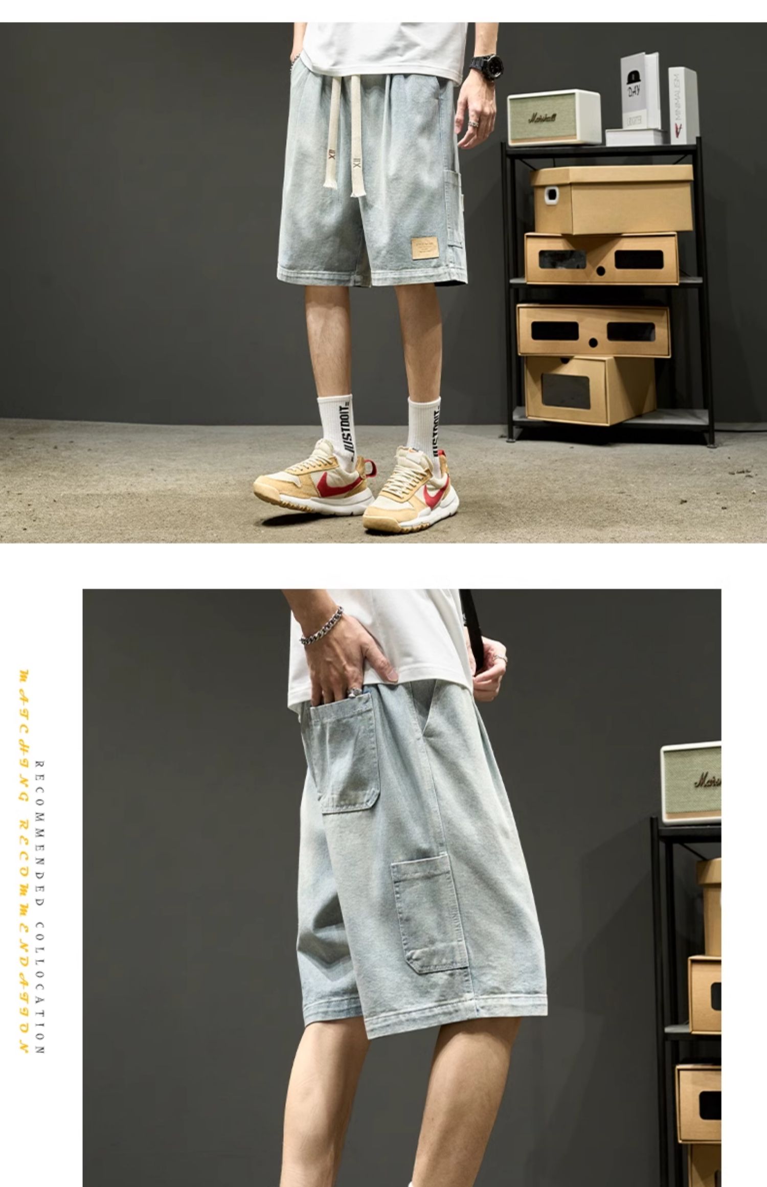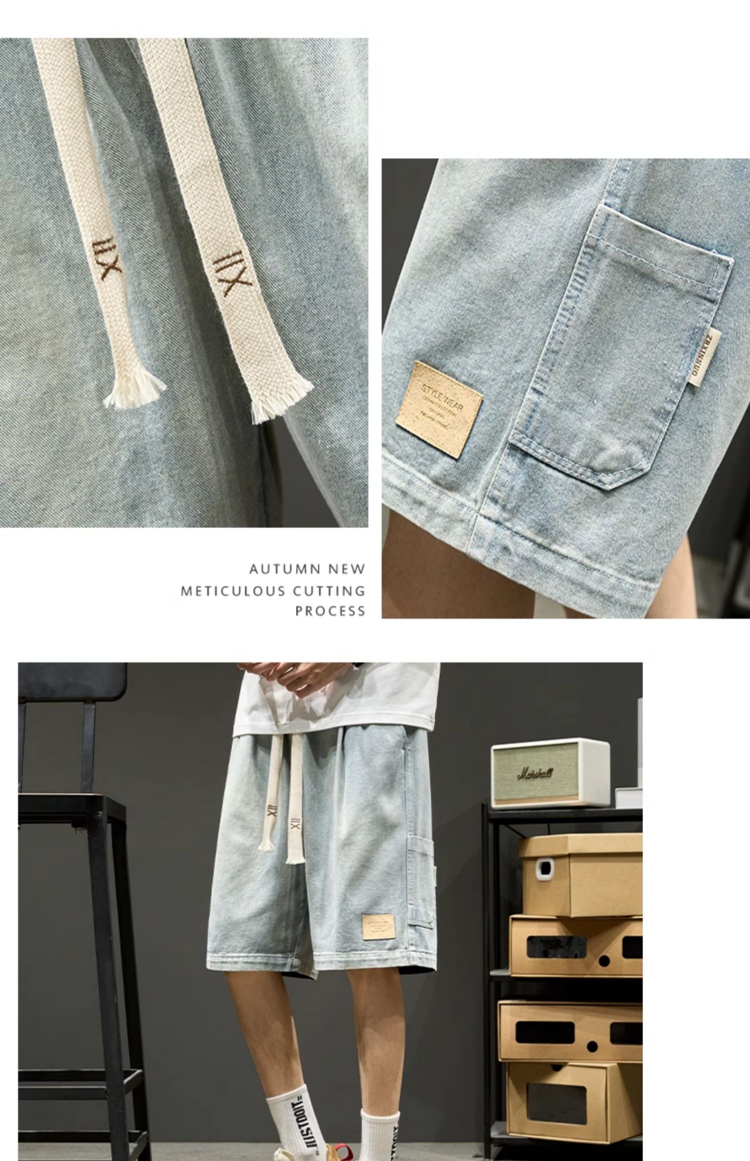 Kurishiki Isuke Denim Shorts for Men, Summer Trendy Brand, Washed and Distressed, Straight-Leg, Japanese Retro Workwear, Thin Five-Point Shorts