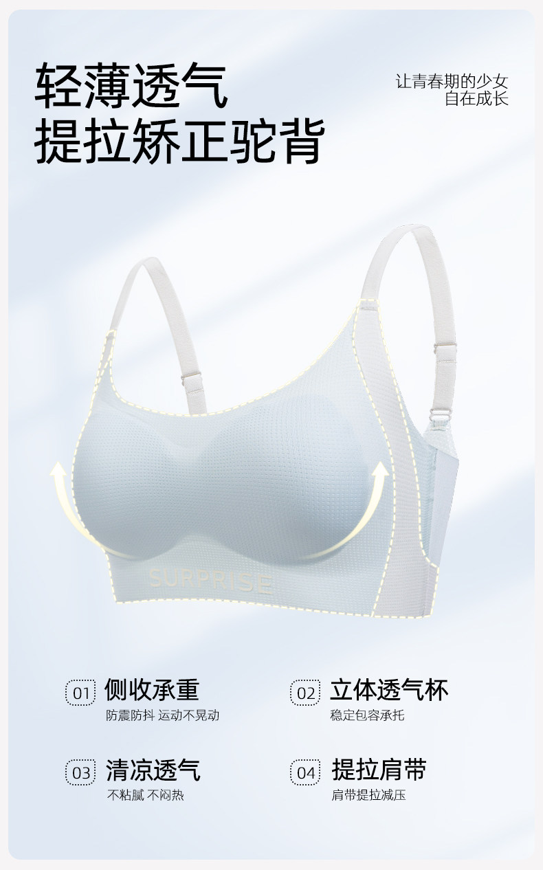 Jeanswest Girls' Underwear for Middle and High School Students, Sports Bra with Shockproof, Breathable, Fixed Cup Vest for Stage Two and Three