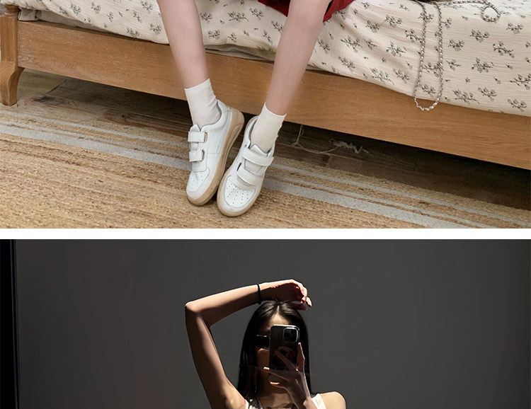 Smiley Face White Sneakers for Women, 2026 New Spring/Summer Super Popular Versatile Casual Velcro Thick-Soled Height-Increasing Genuine Leather Sneakers