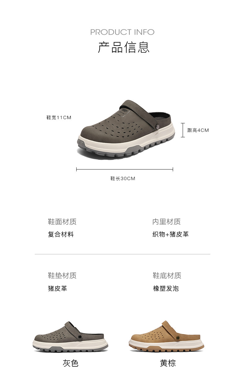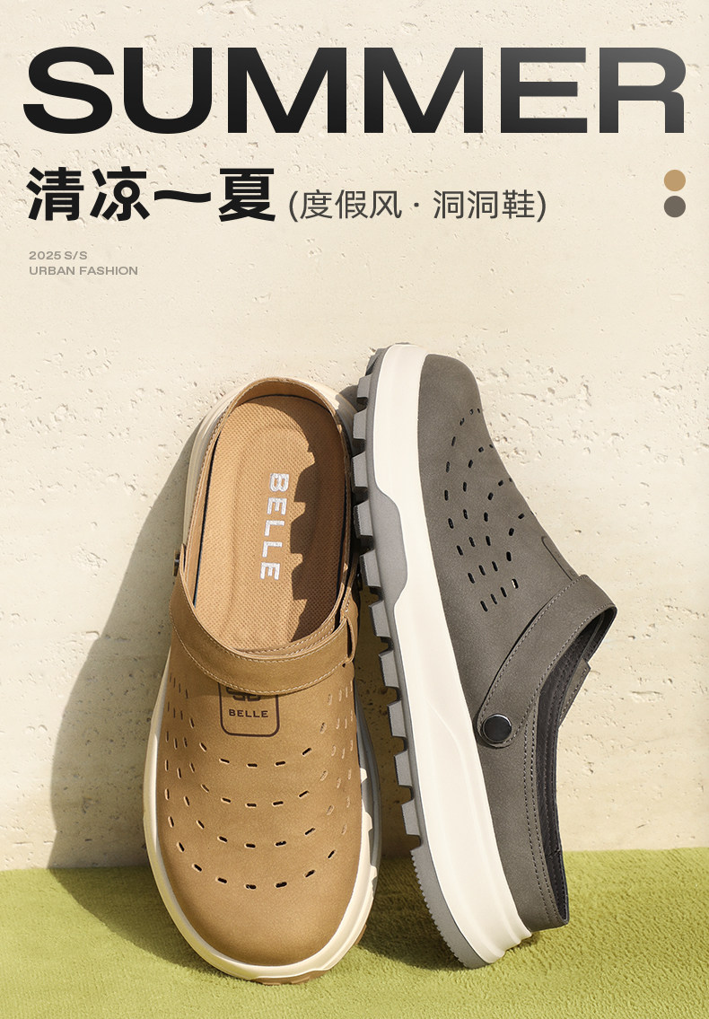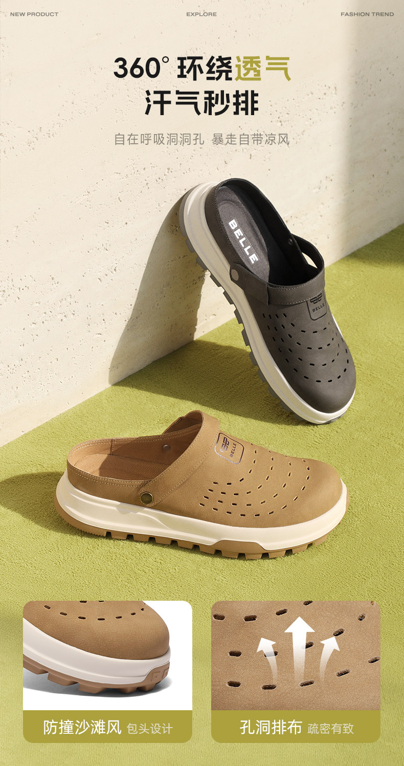 Belle Men's Casual Breathable Clog Shoes Summer New Slip-On Lazy Closed-Toe Sandals A1940Bh5