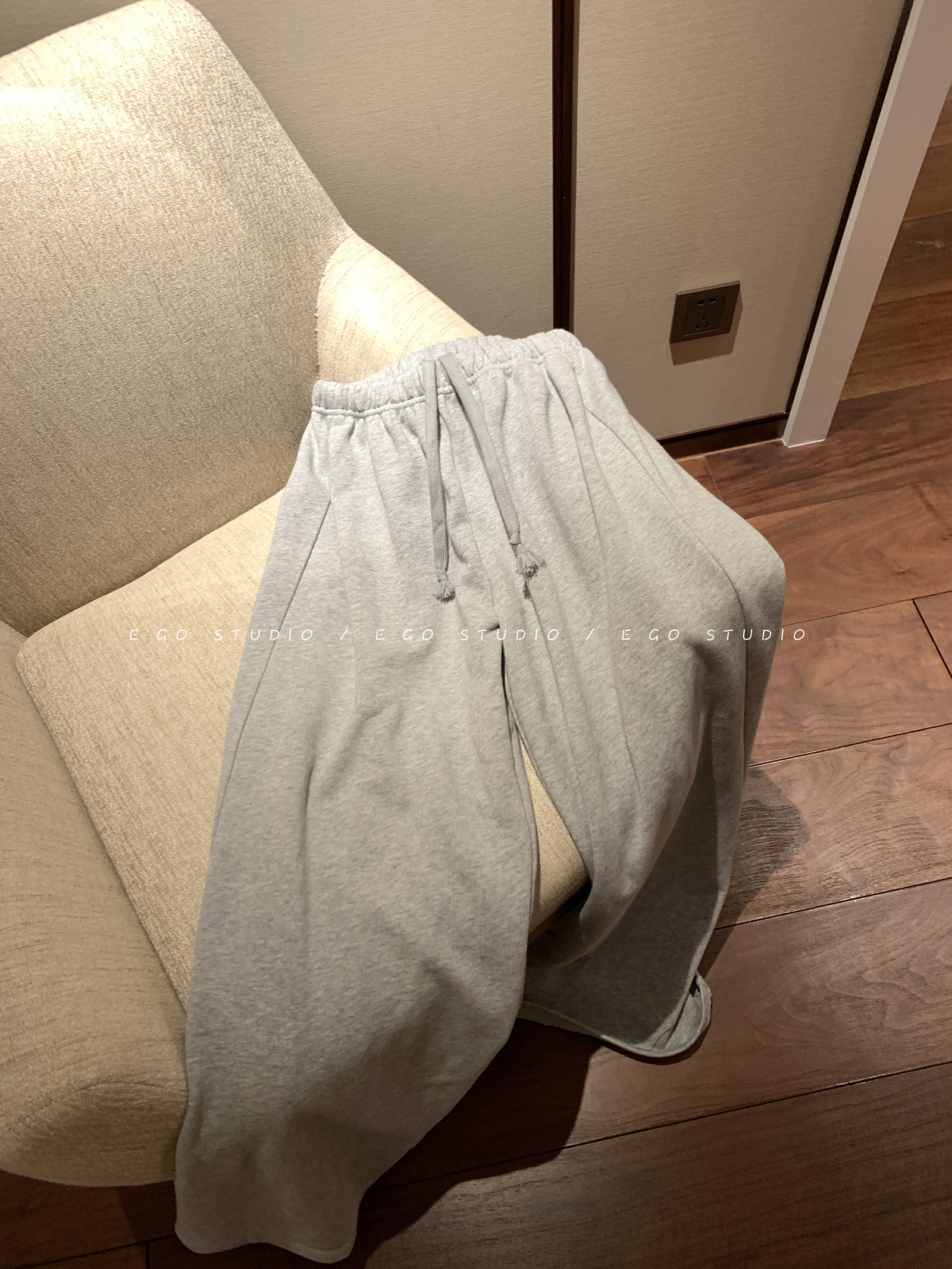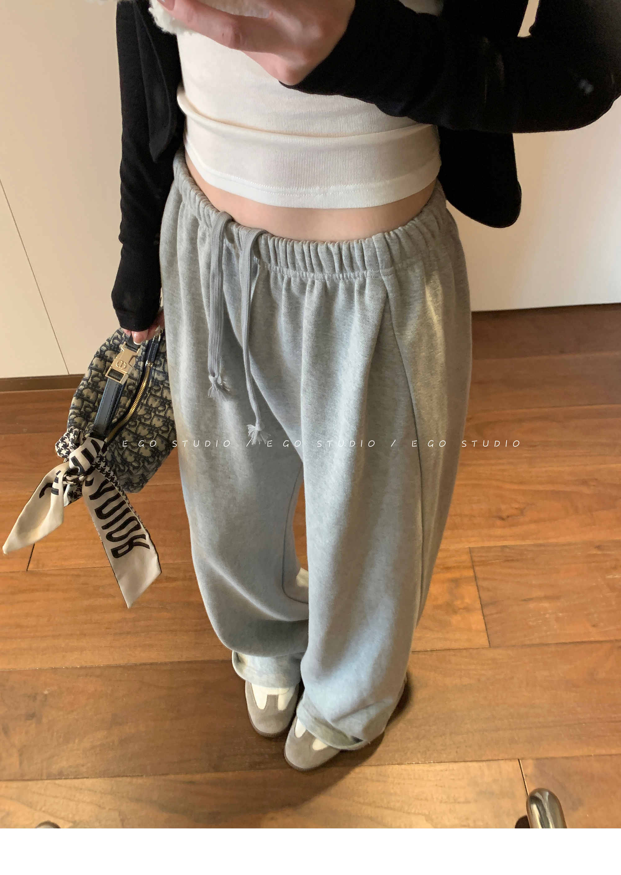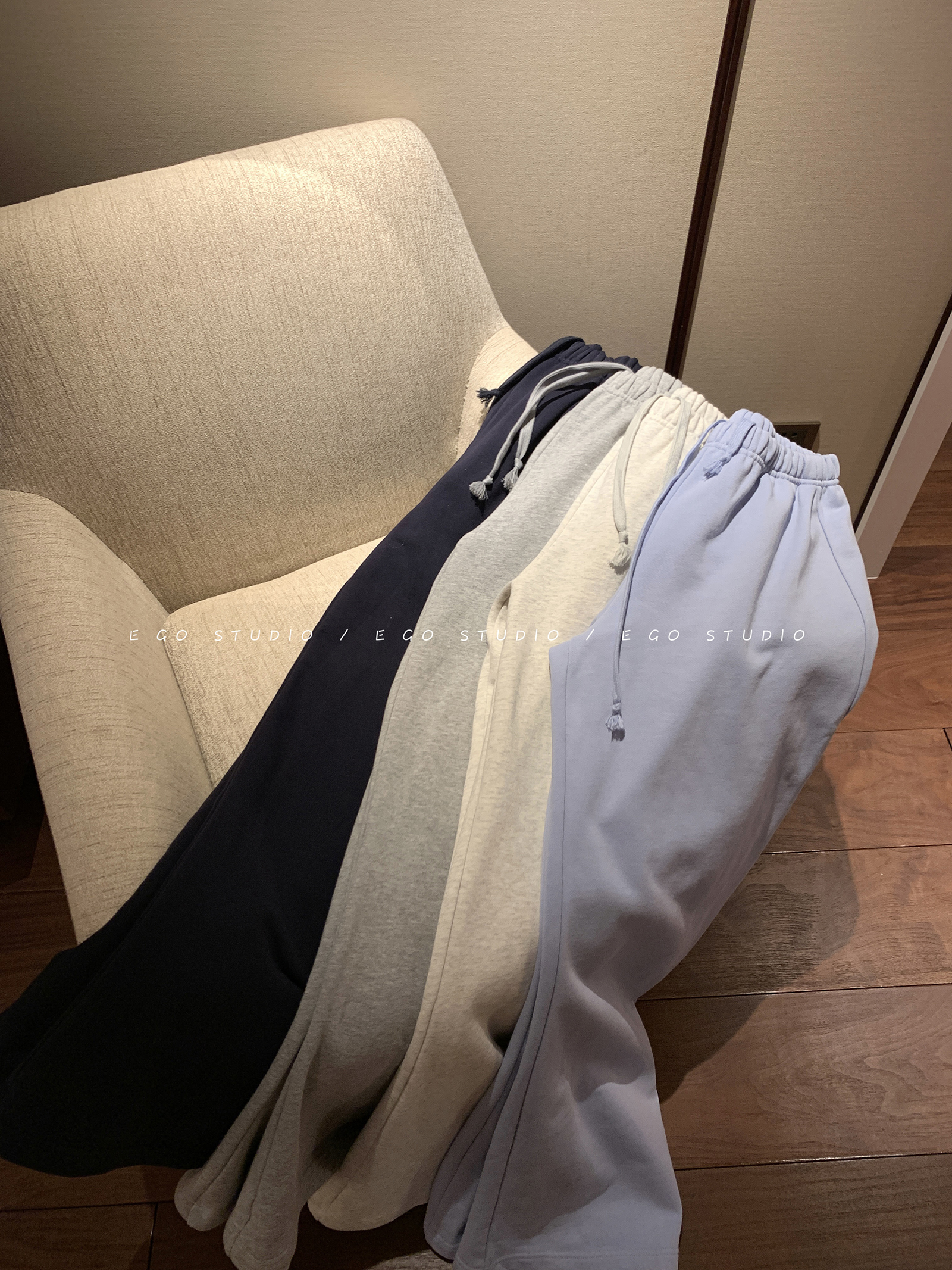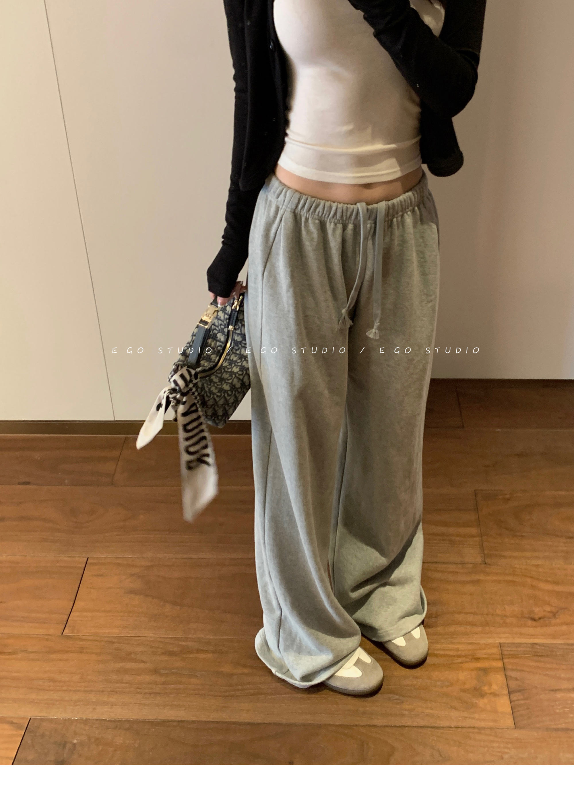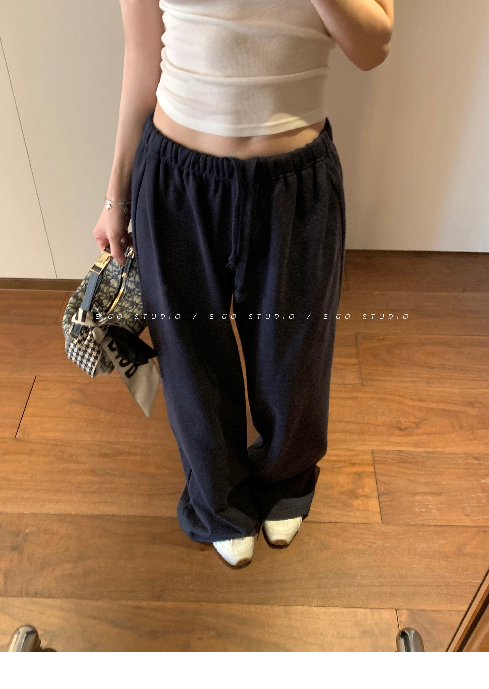 E Go Studio All-Cotton Mid-Low Waist Drawstring American-Style Simple Wide-Leg Casual Versatile Sweatpants for Women