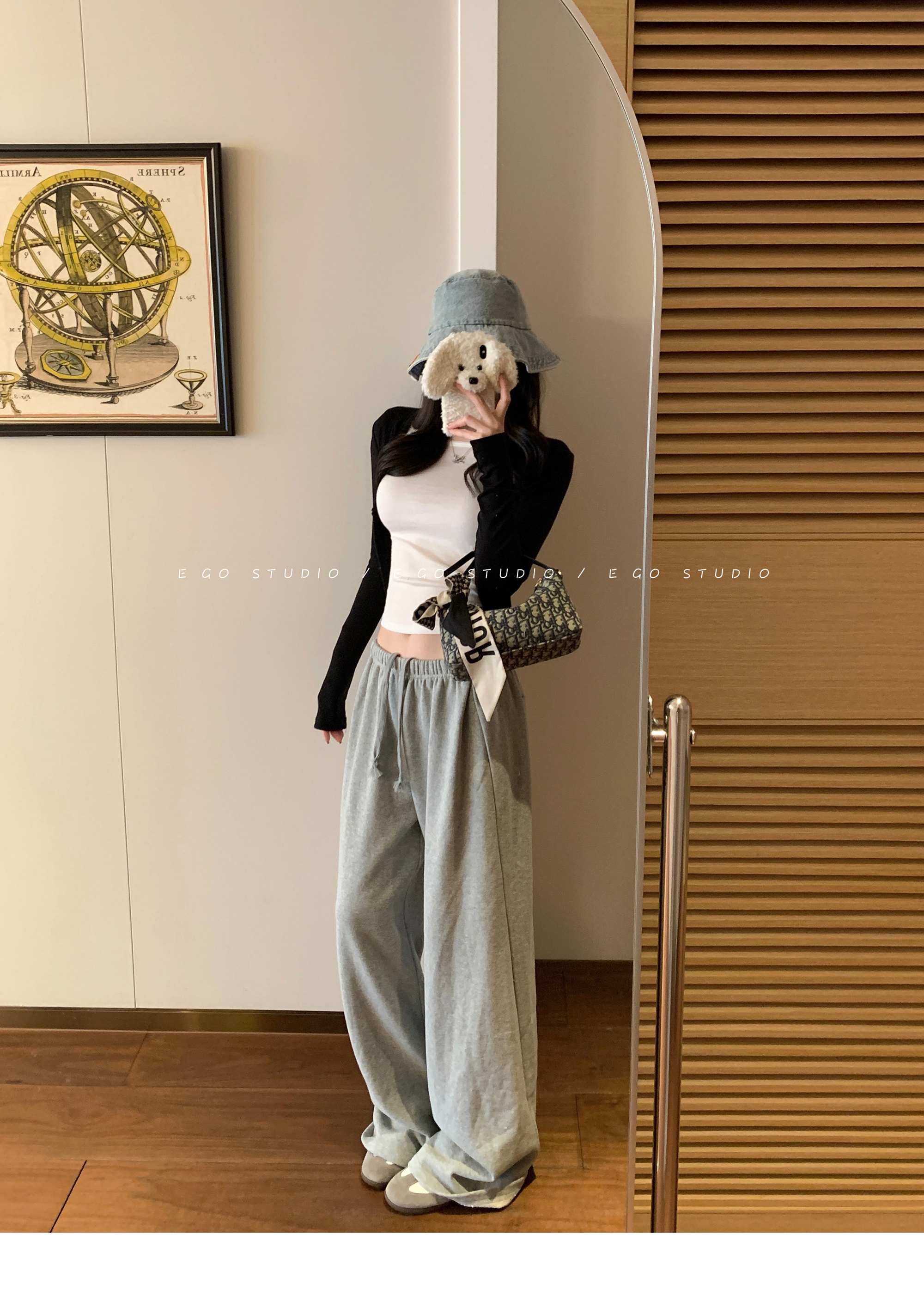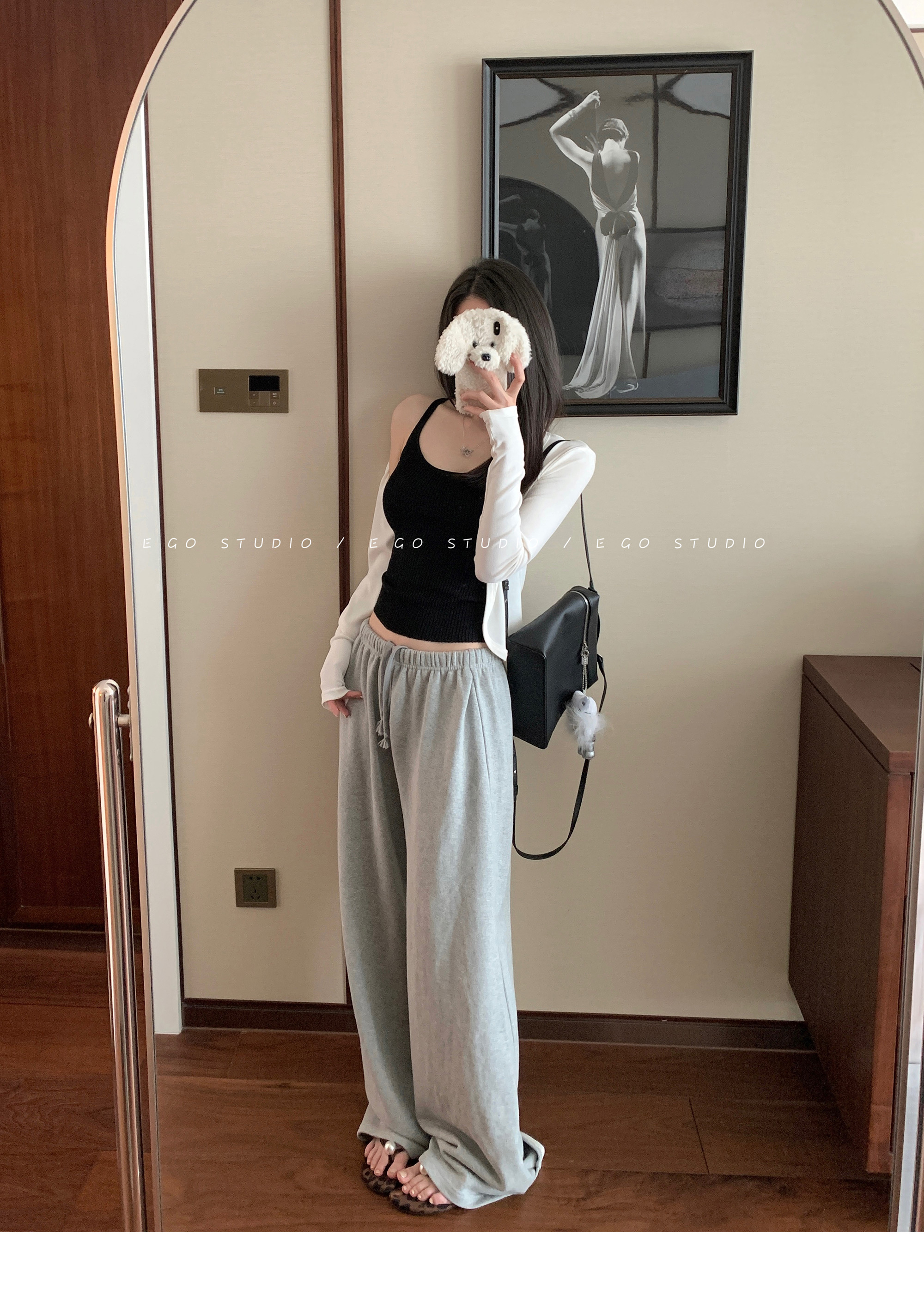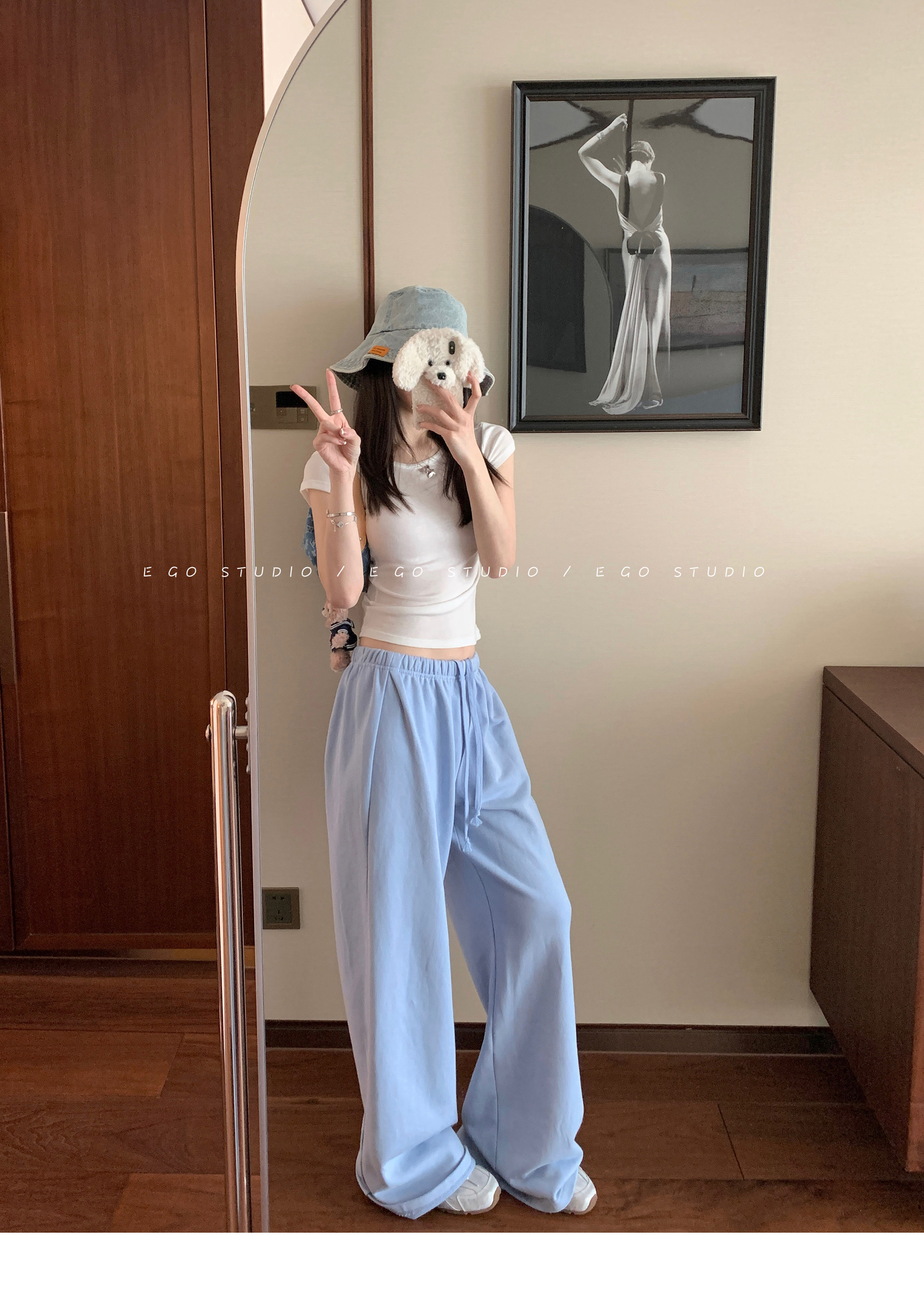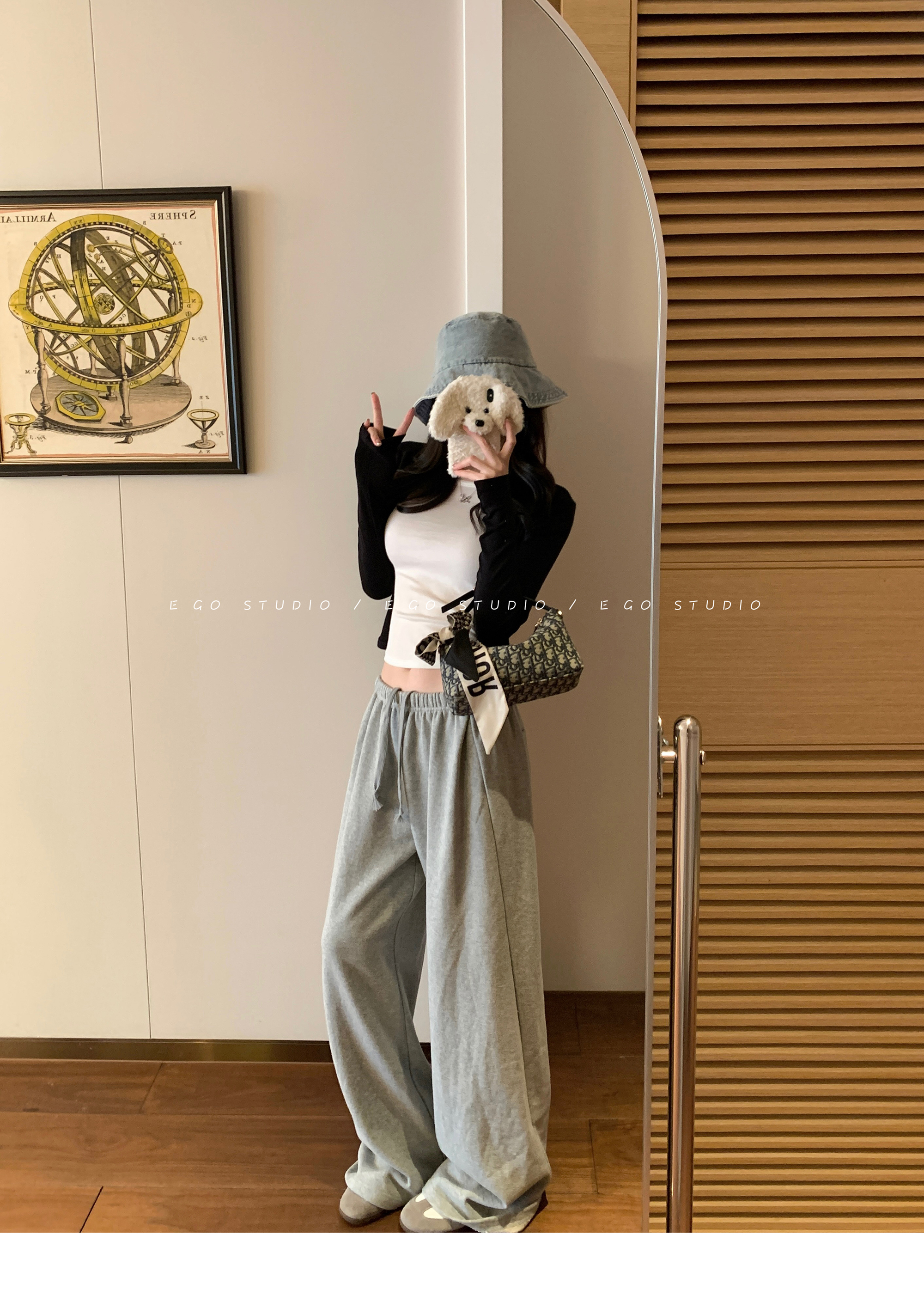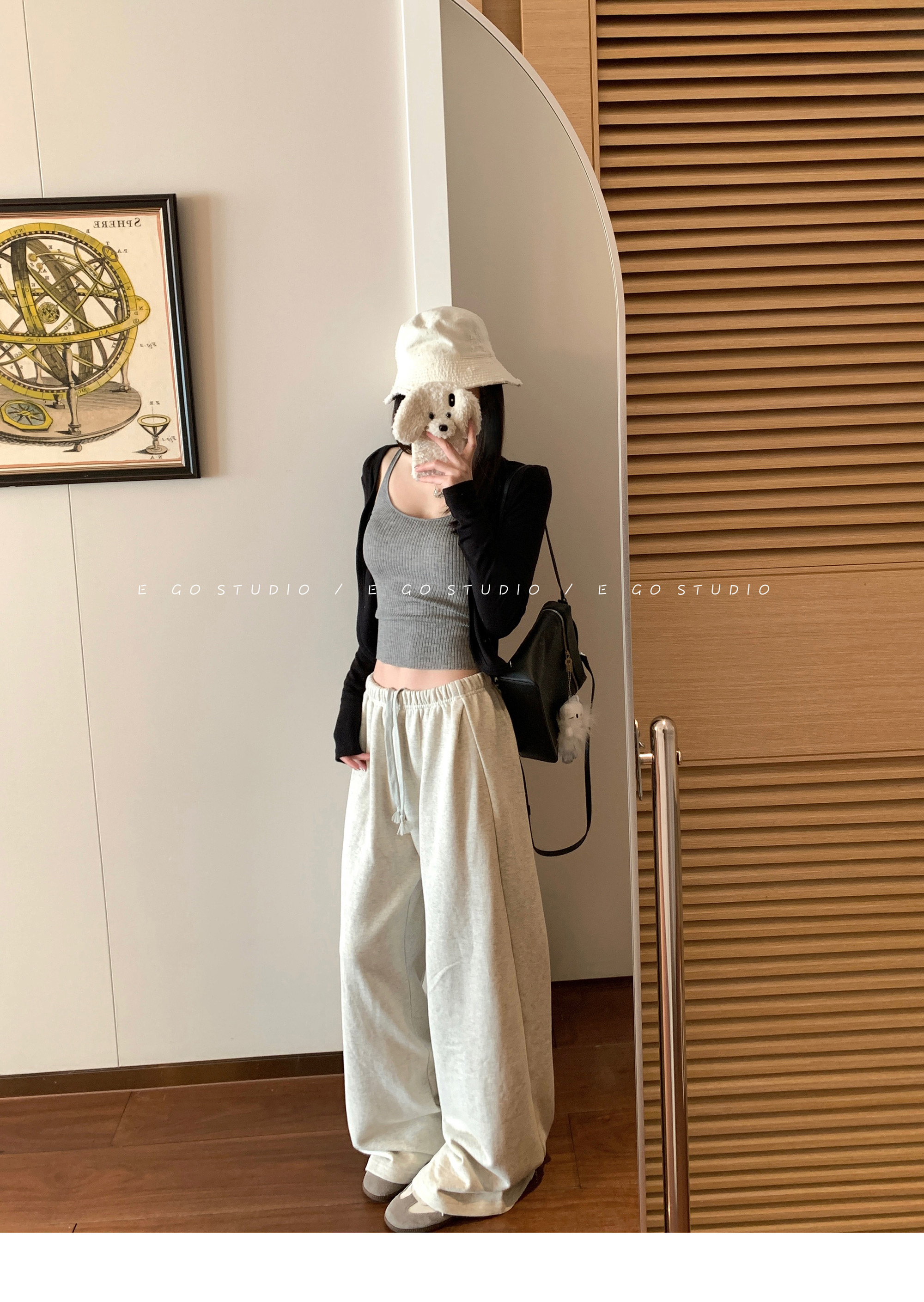 E Go Studio All-Cotton Mid-Low Waist Drawstring American-Style Simple Wide-Leg Casual Versatile Sweatpants for Women