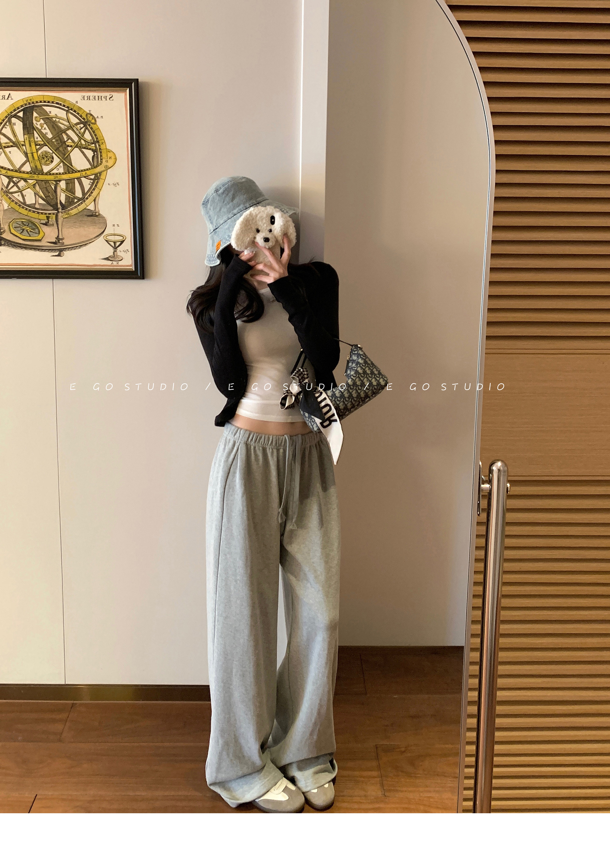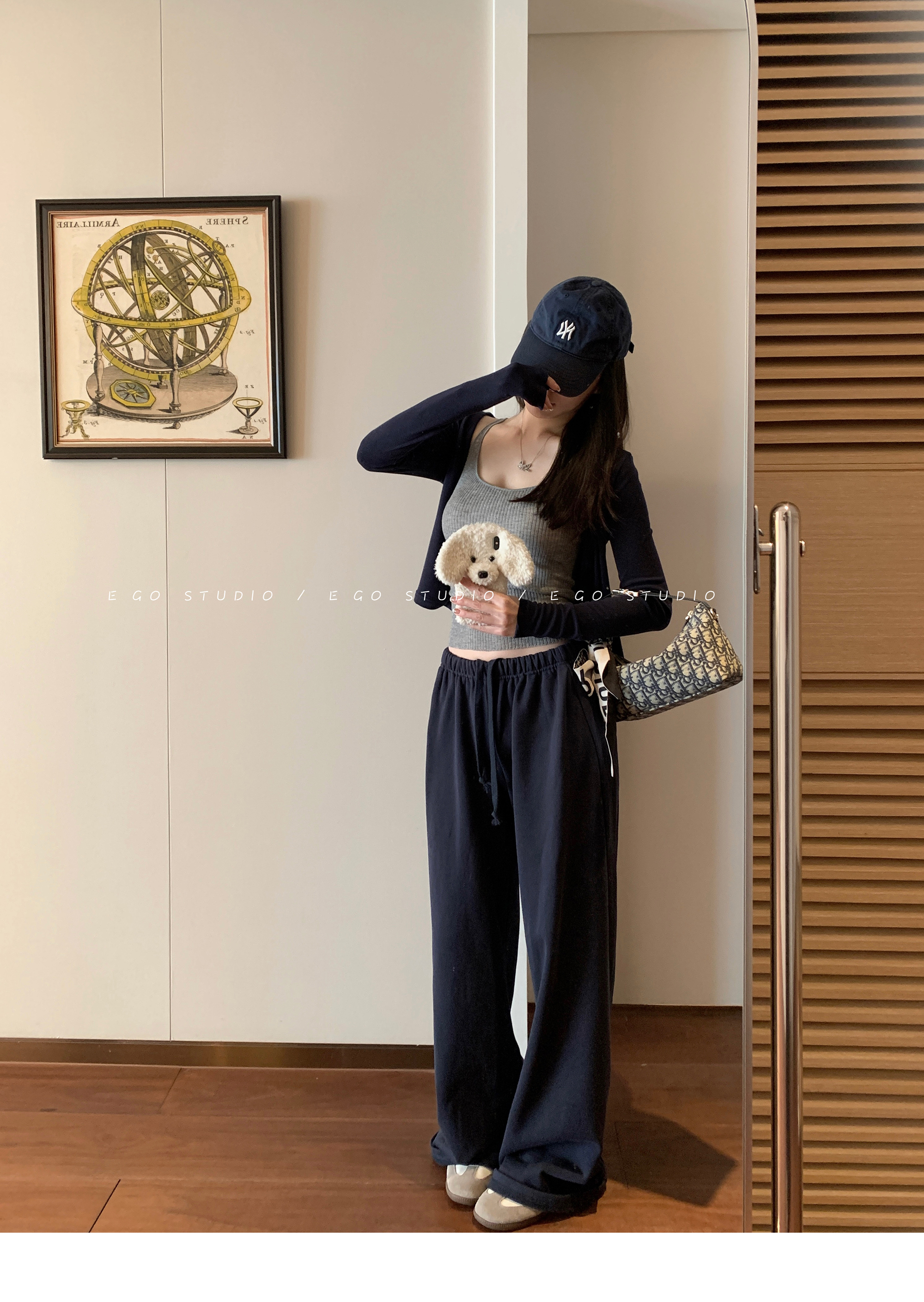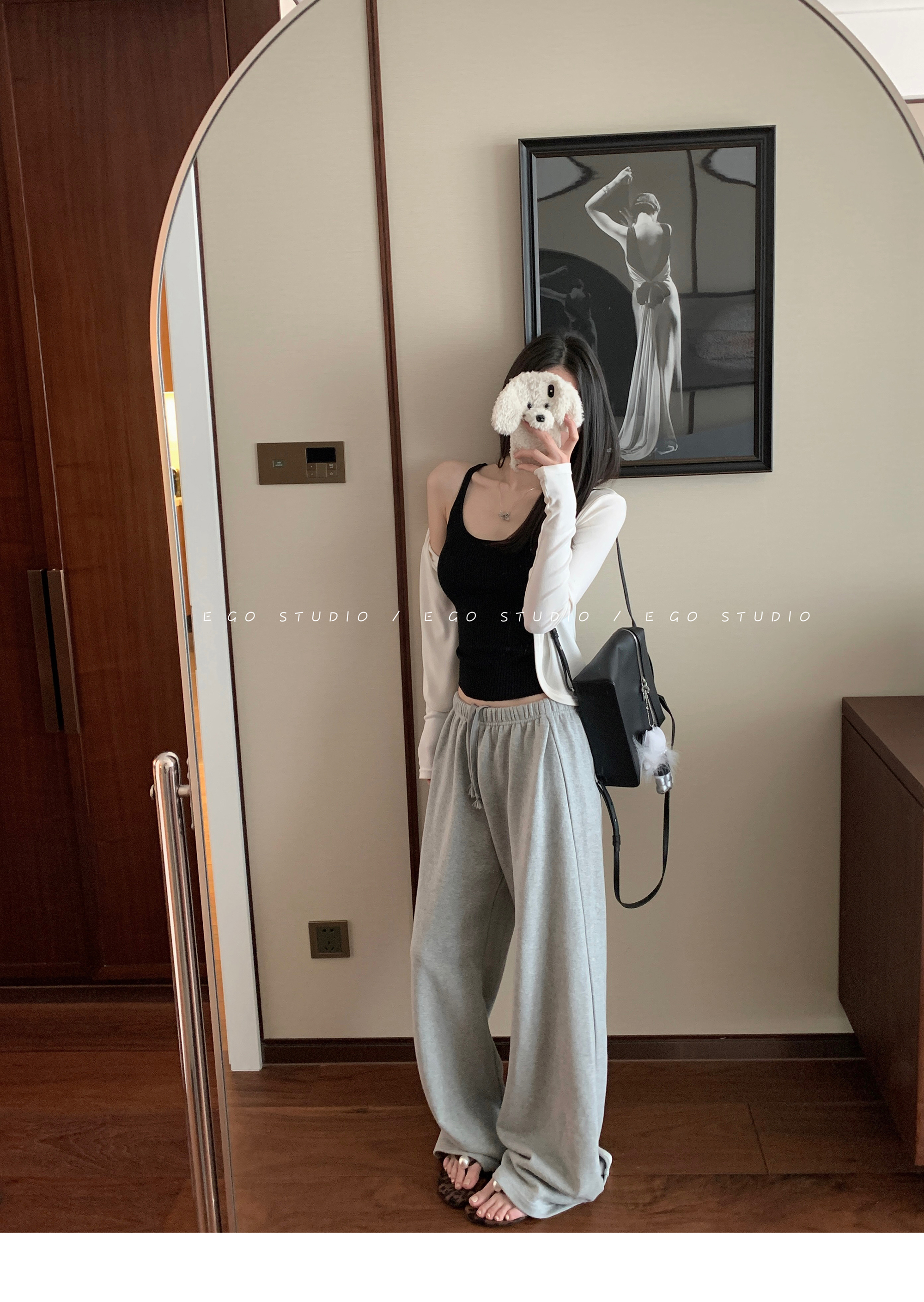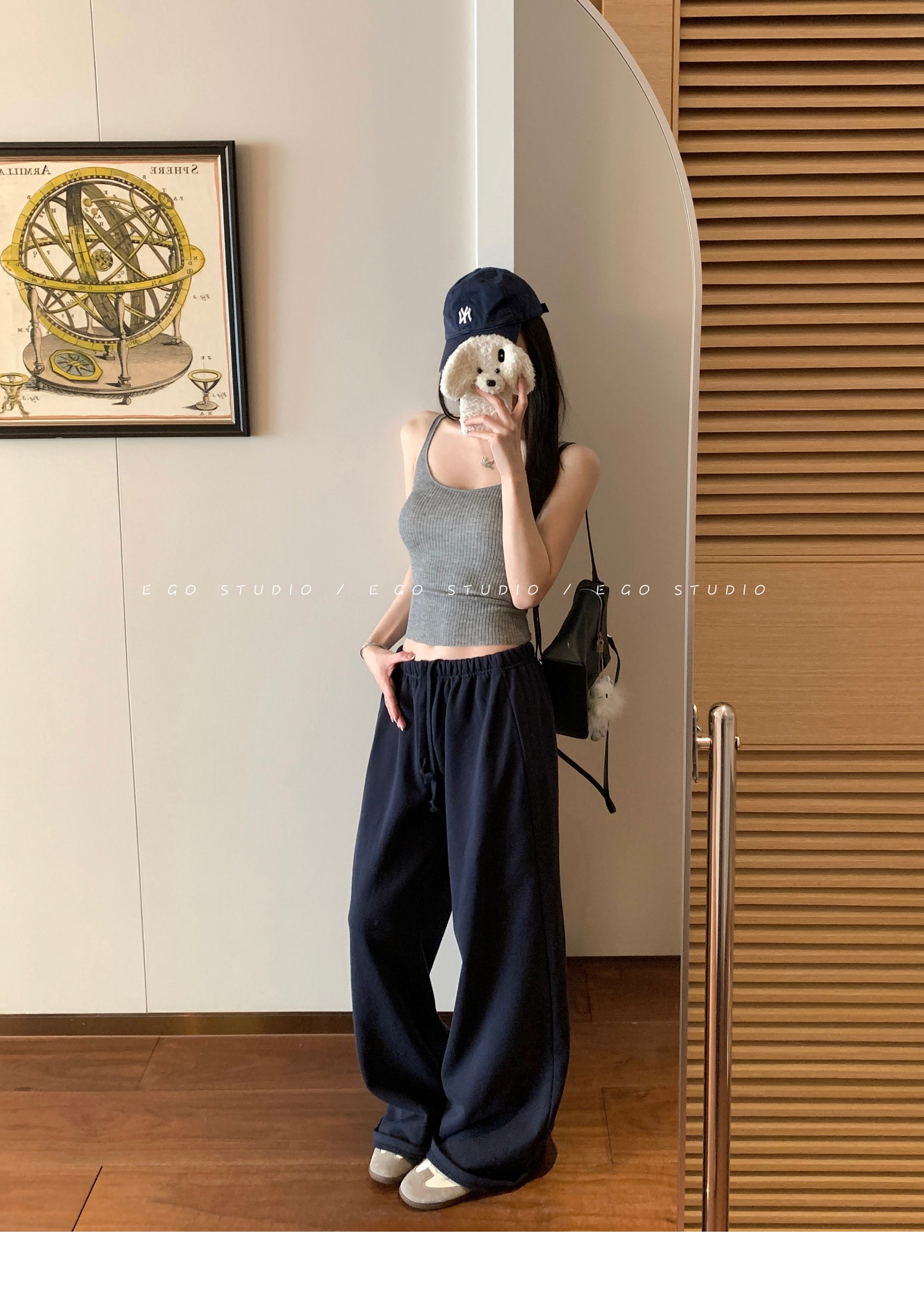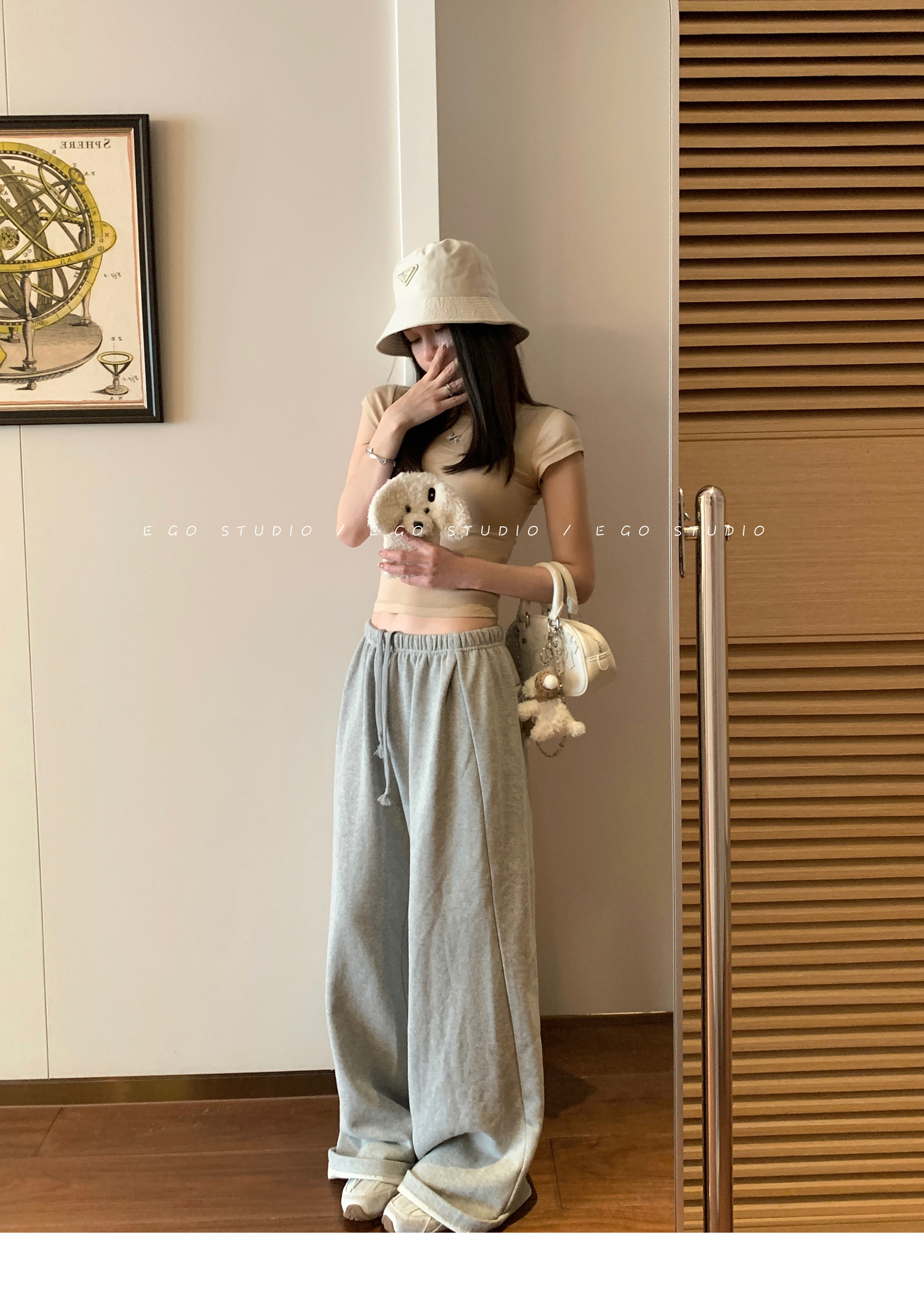E Go Studio All-Cotton Mid-Low Waist Drawstring American-Style Simple Wide-Leg Casual Versatile Sweatpants for Women