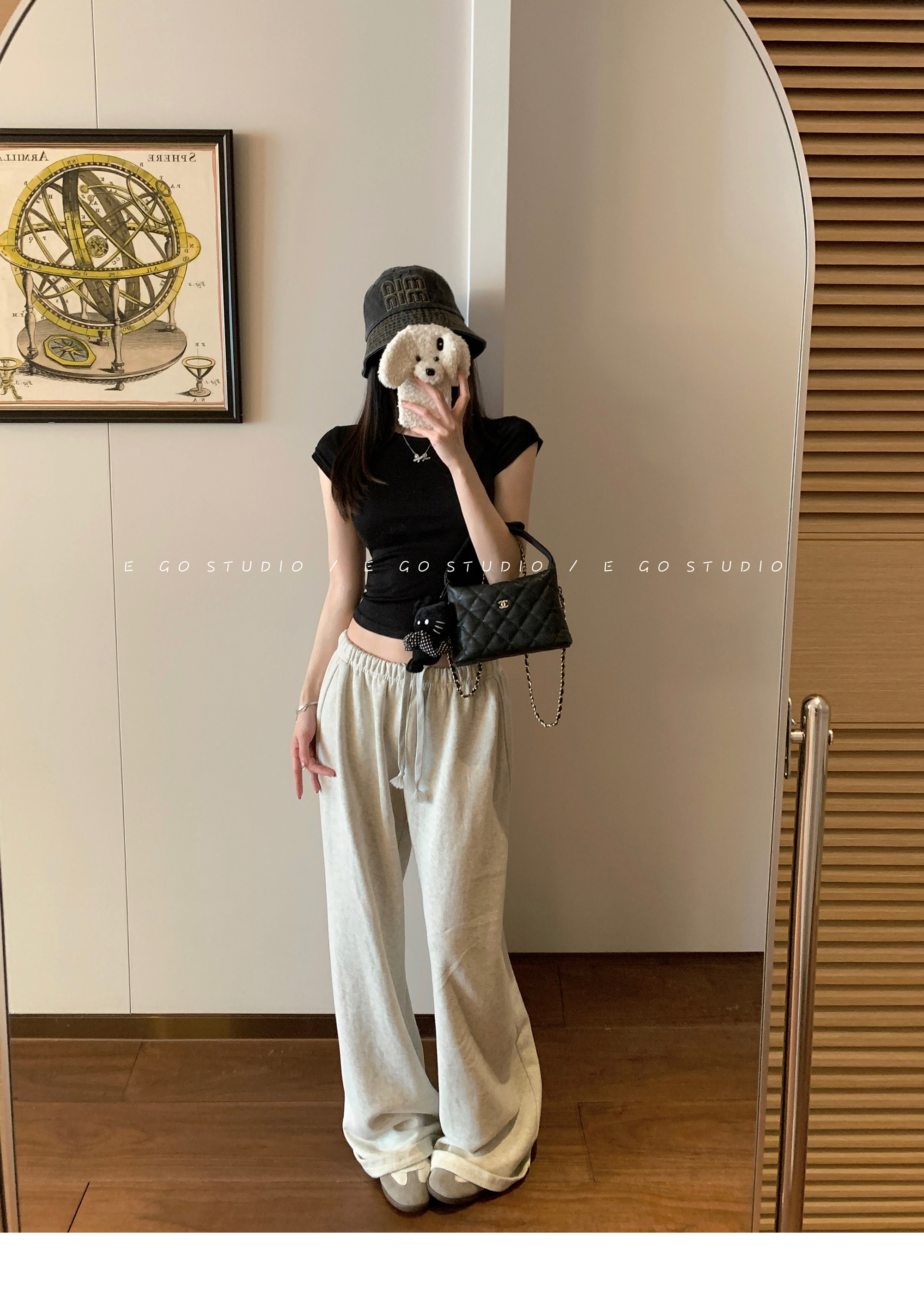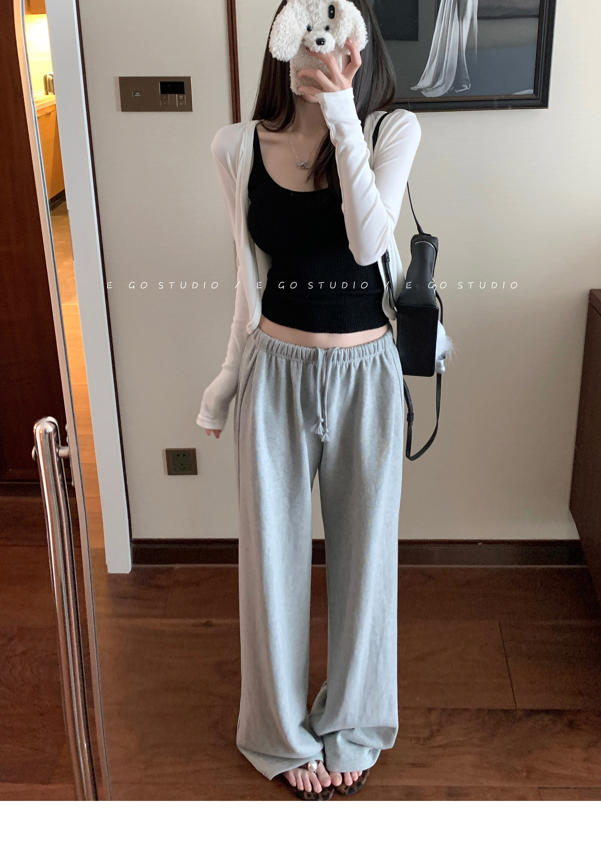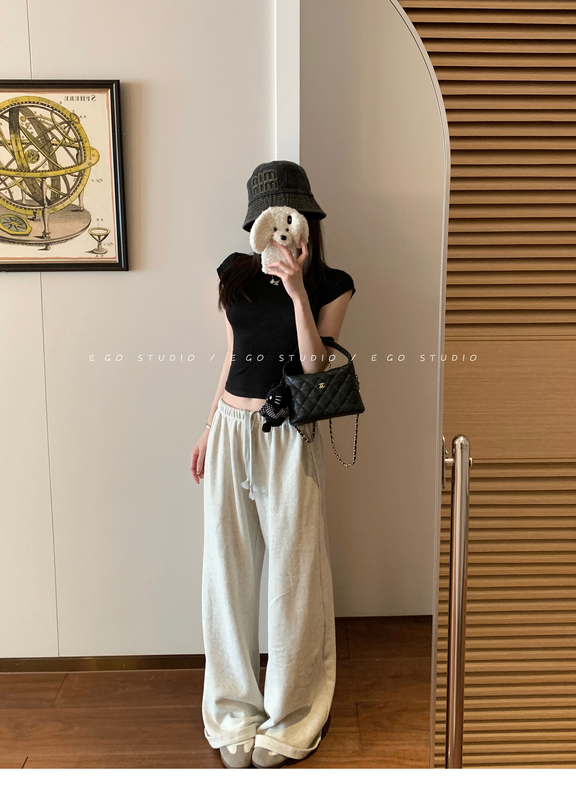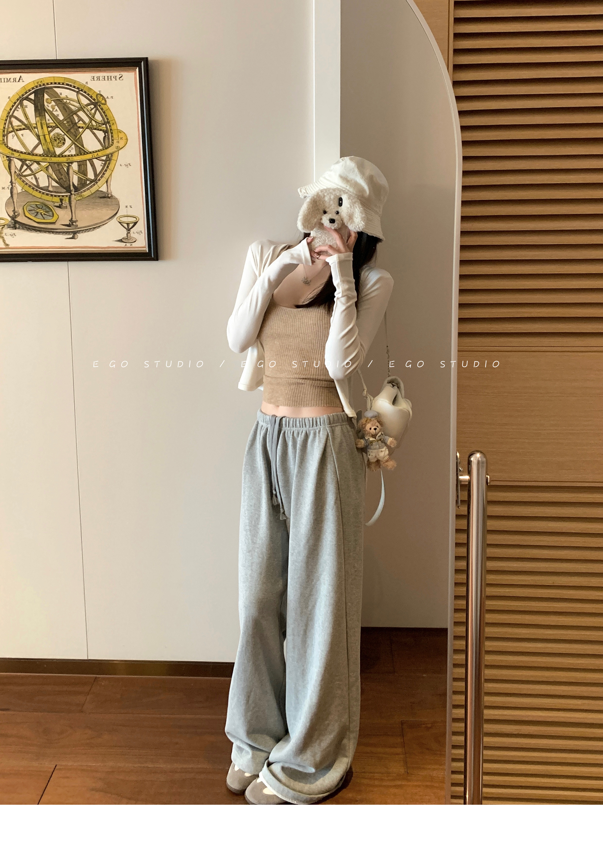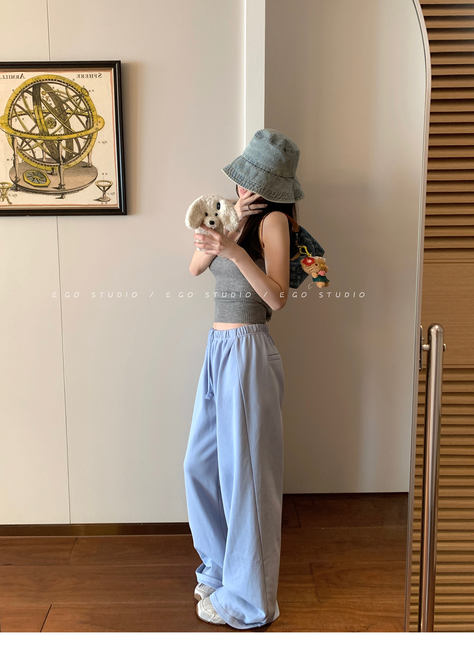 E Go Studio All-Cotton Mid-Low Waist Drawstring American-Style Simple Wide-Leg Casual Versatile Sweatpants for Women
