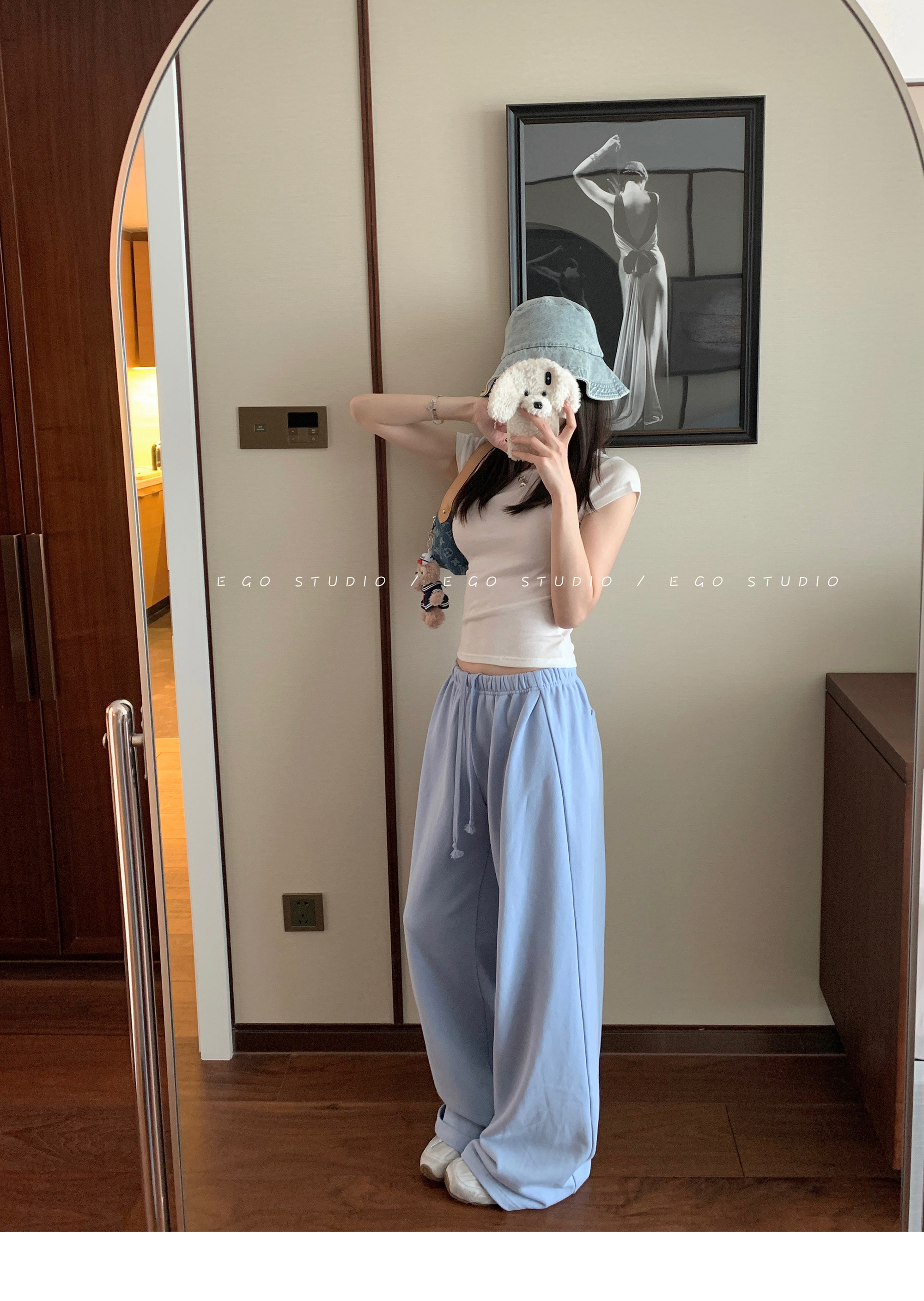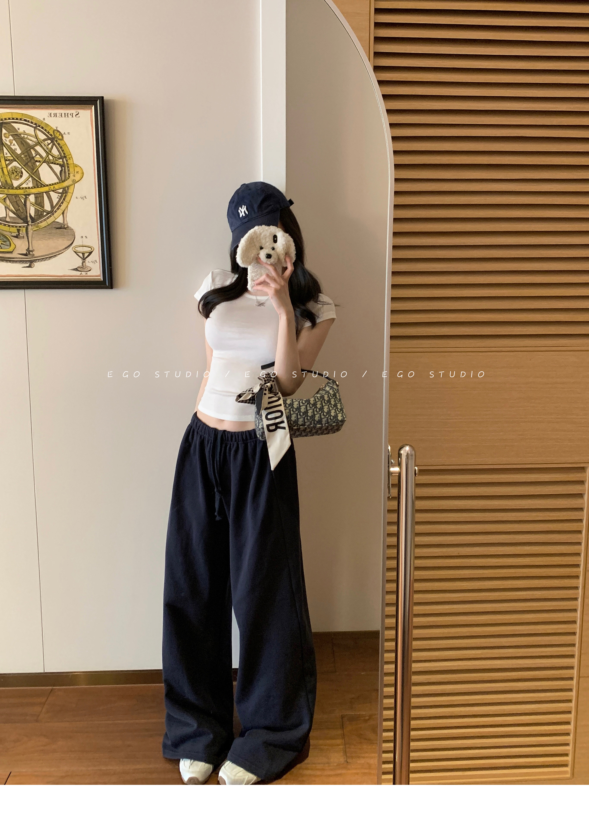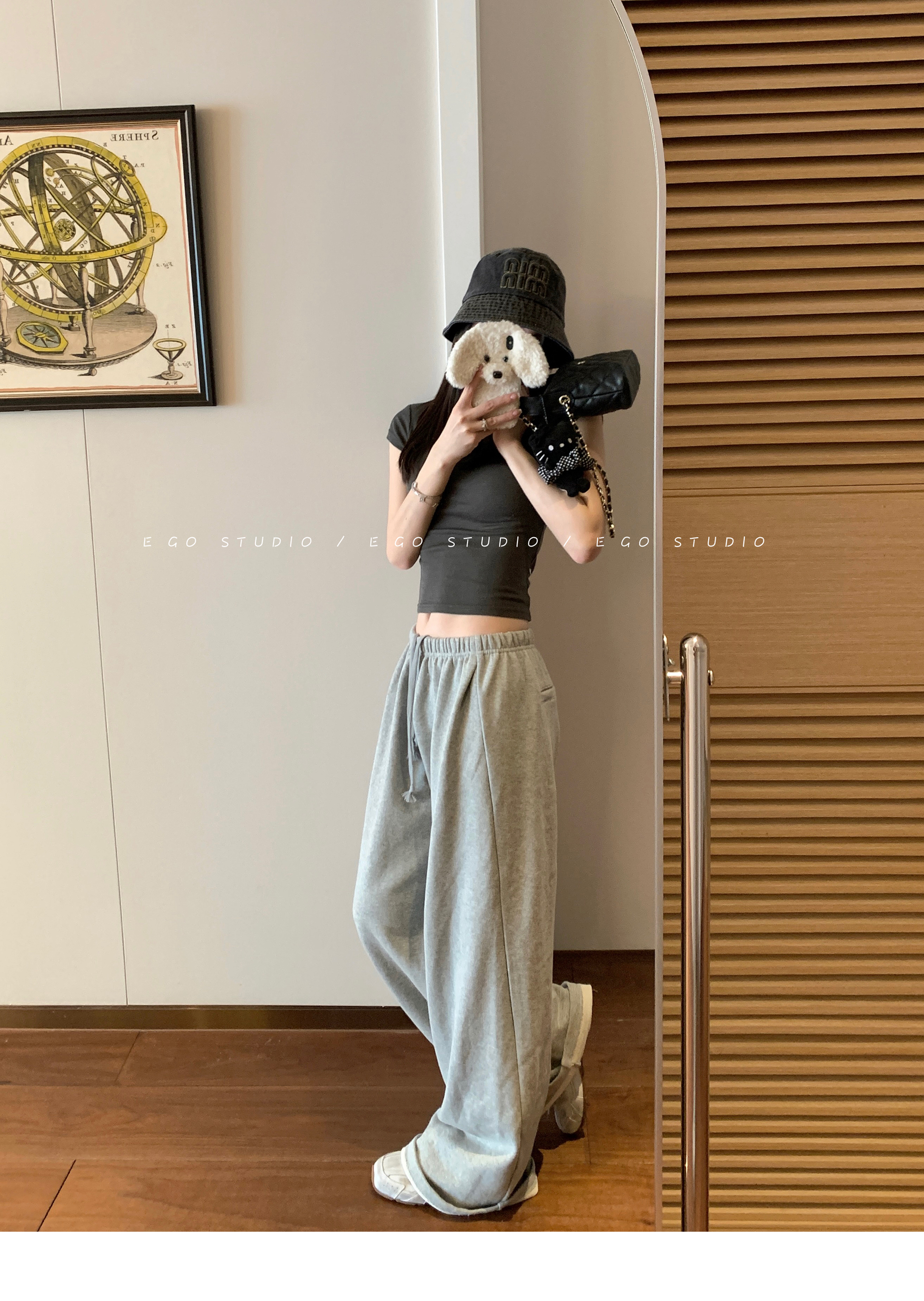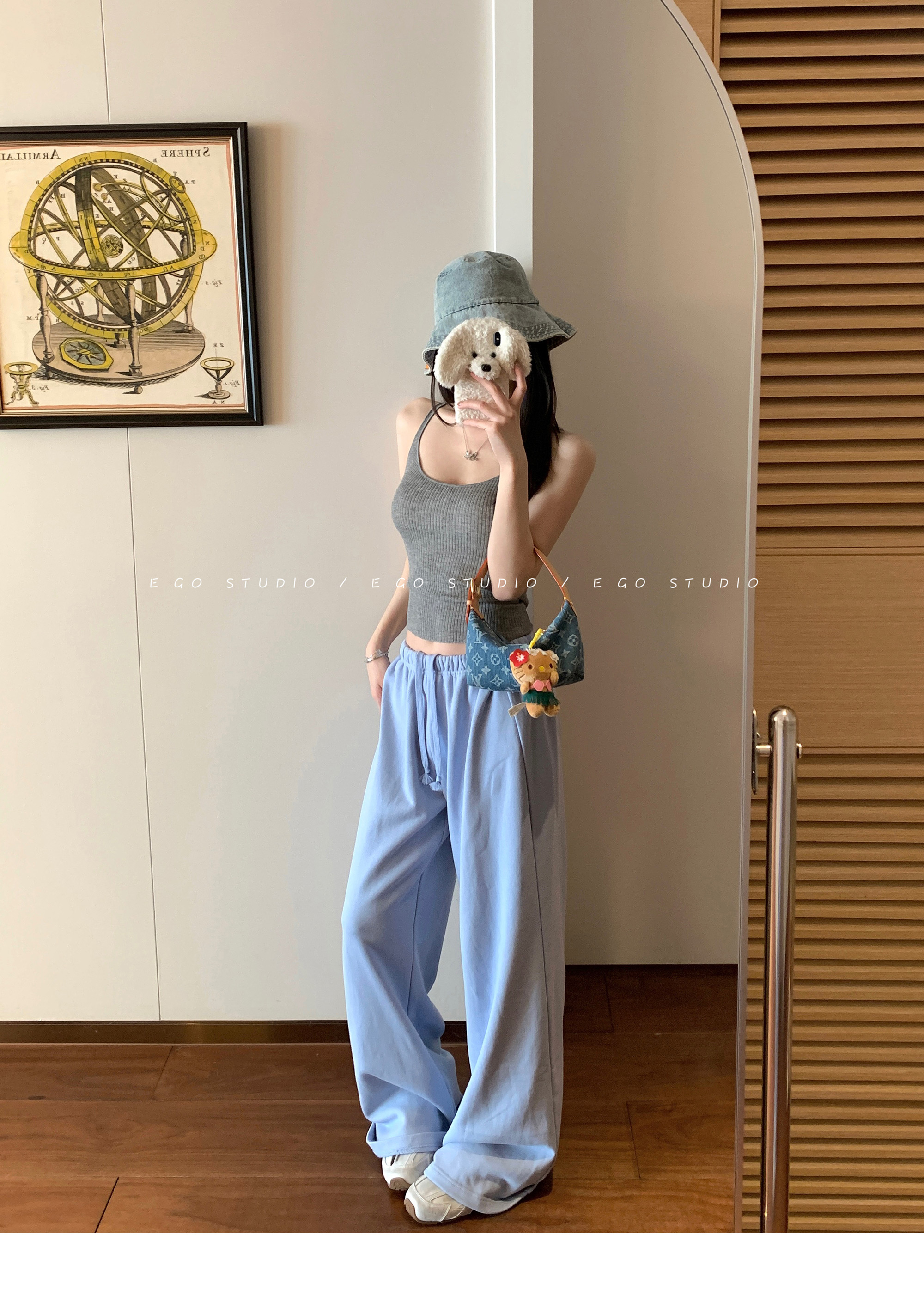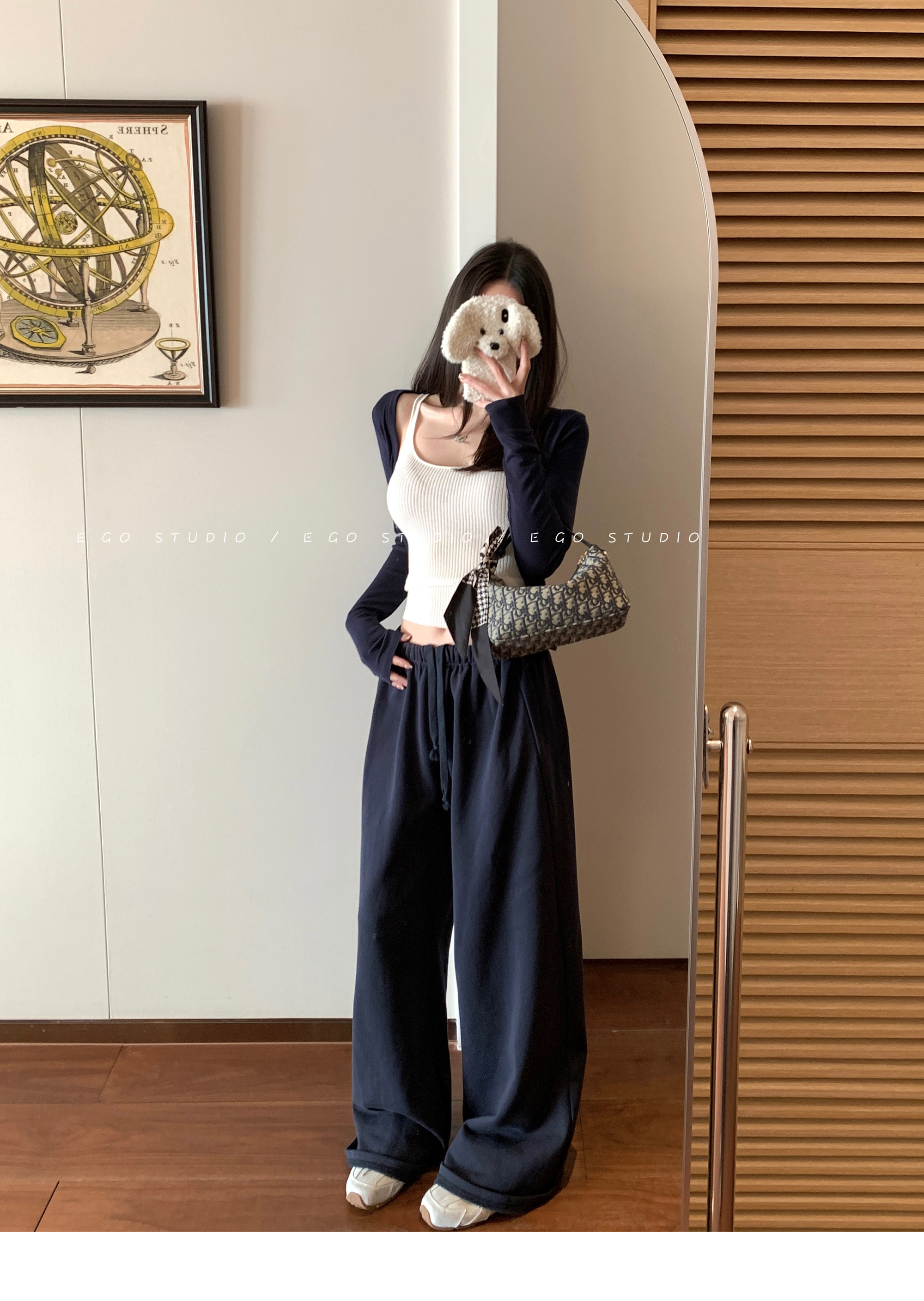 E Go Studio All-Cotton Mid-Low Waist Drawstring American-Style Simple Wide-Leg Casual Versatile Sweatpants for Women