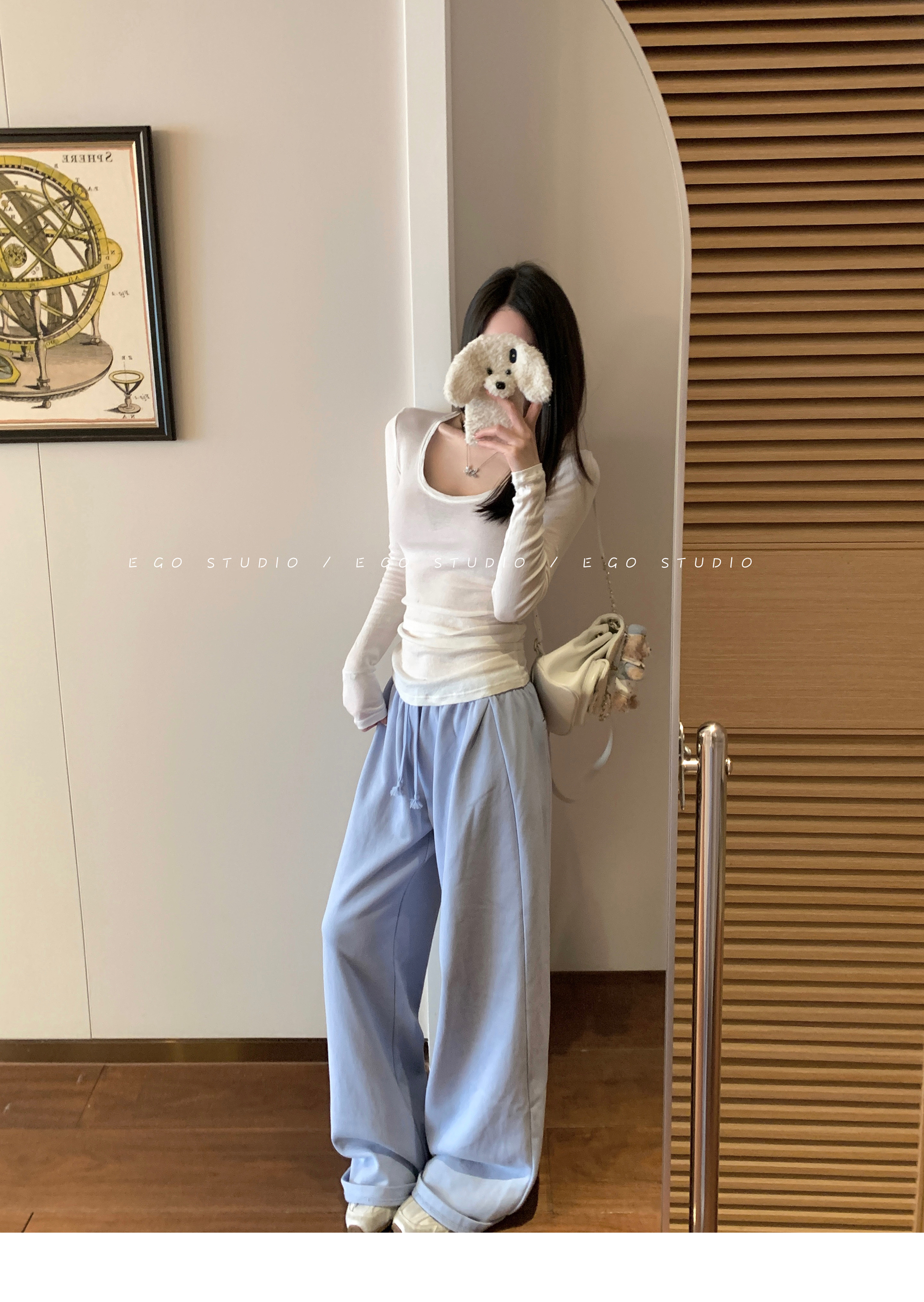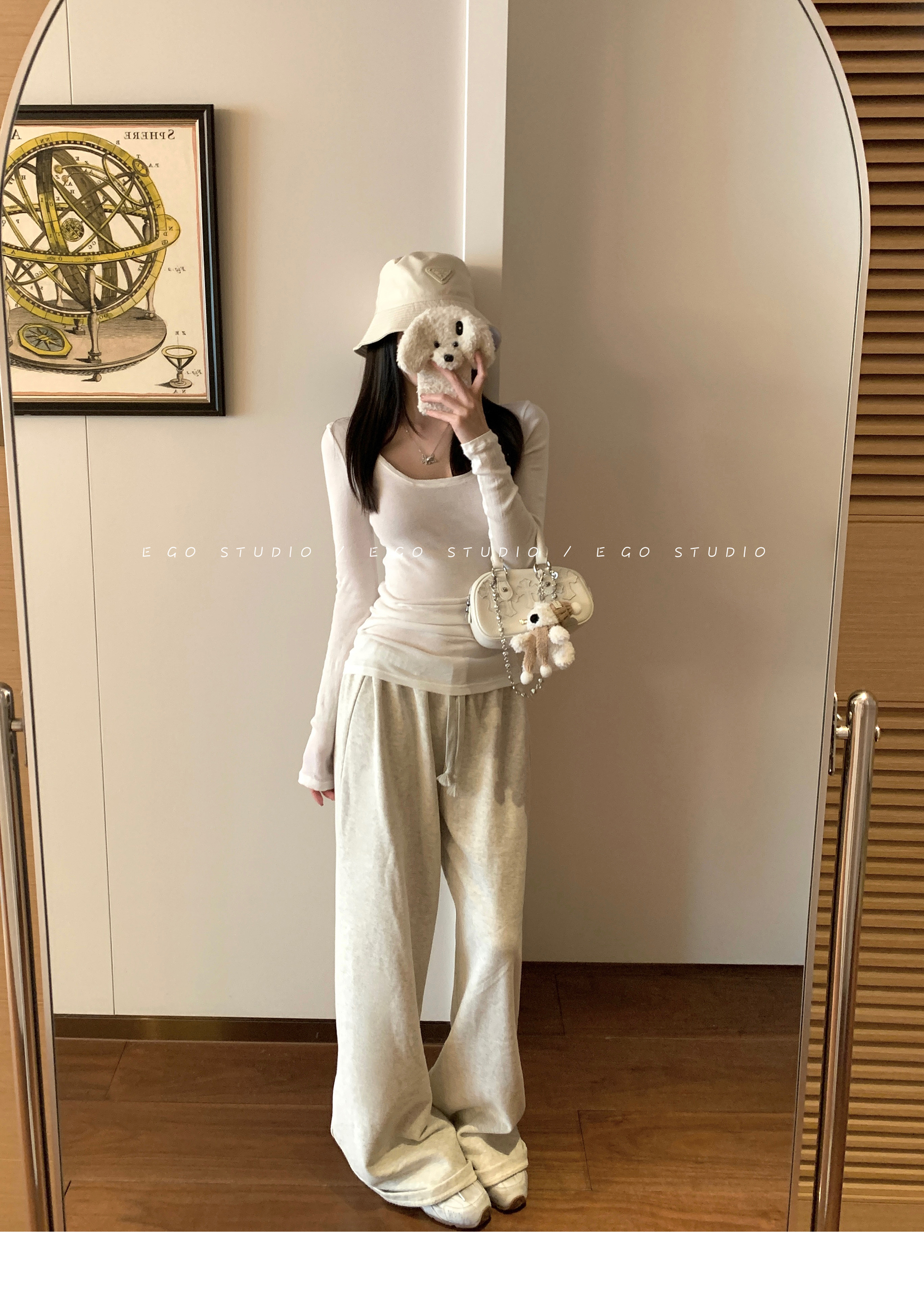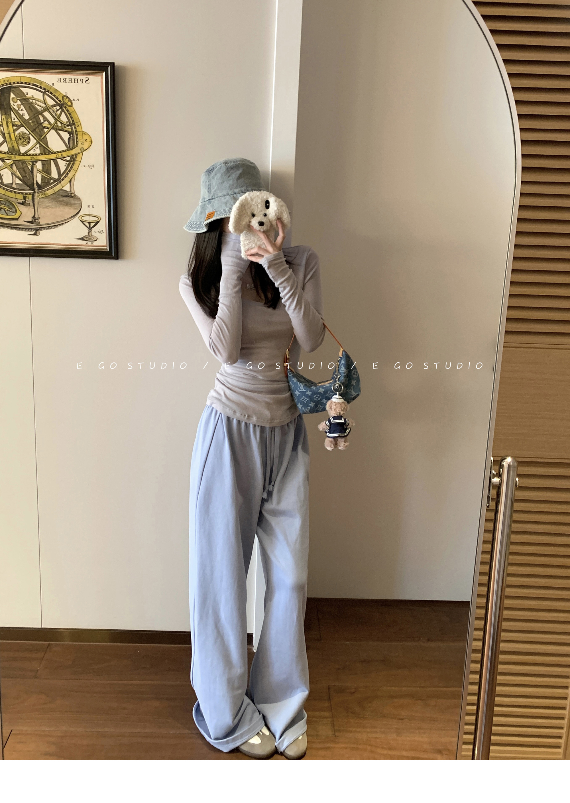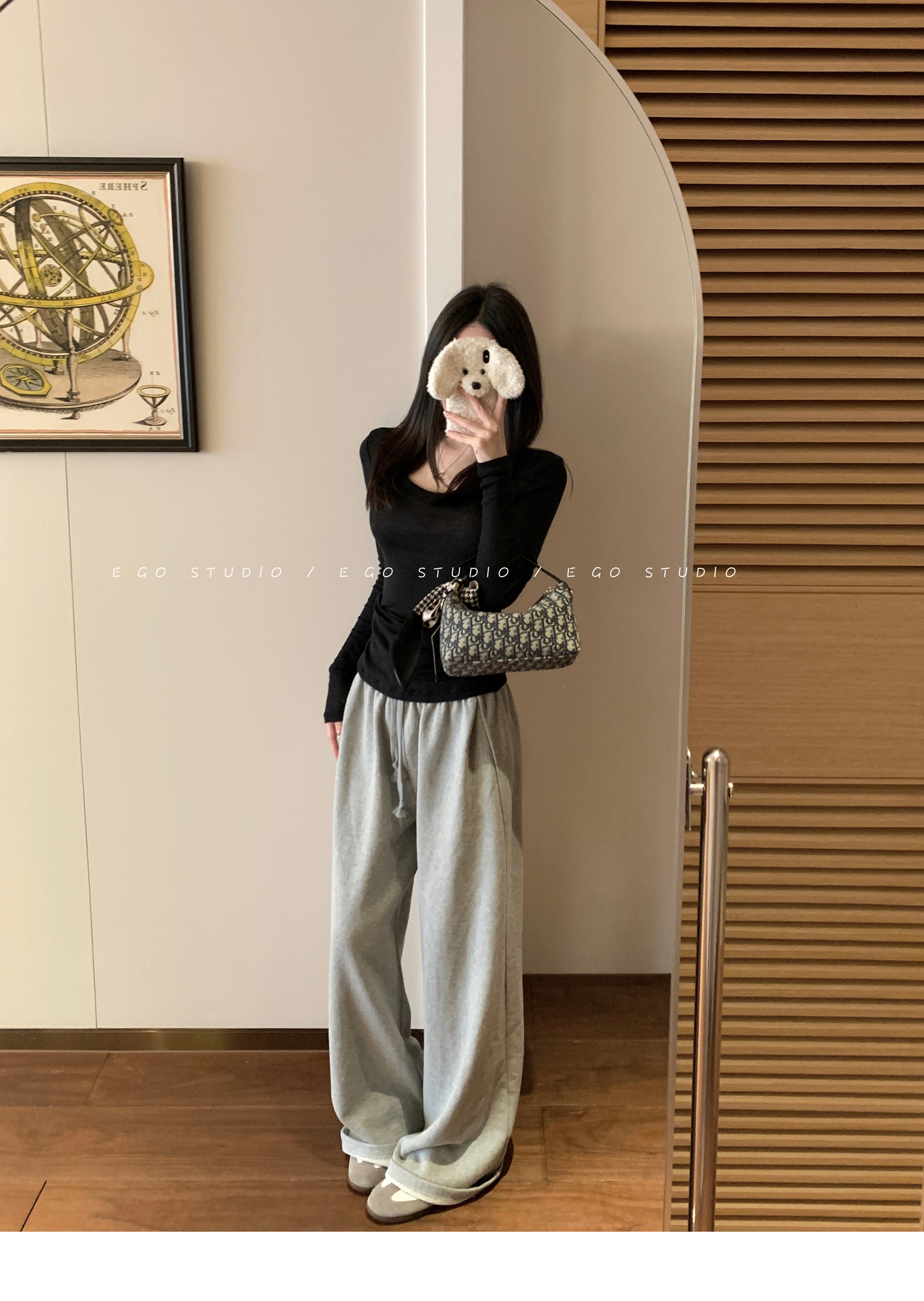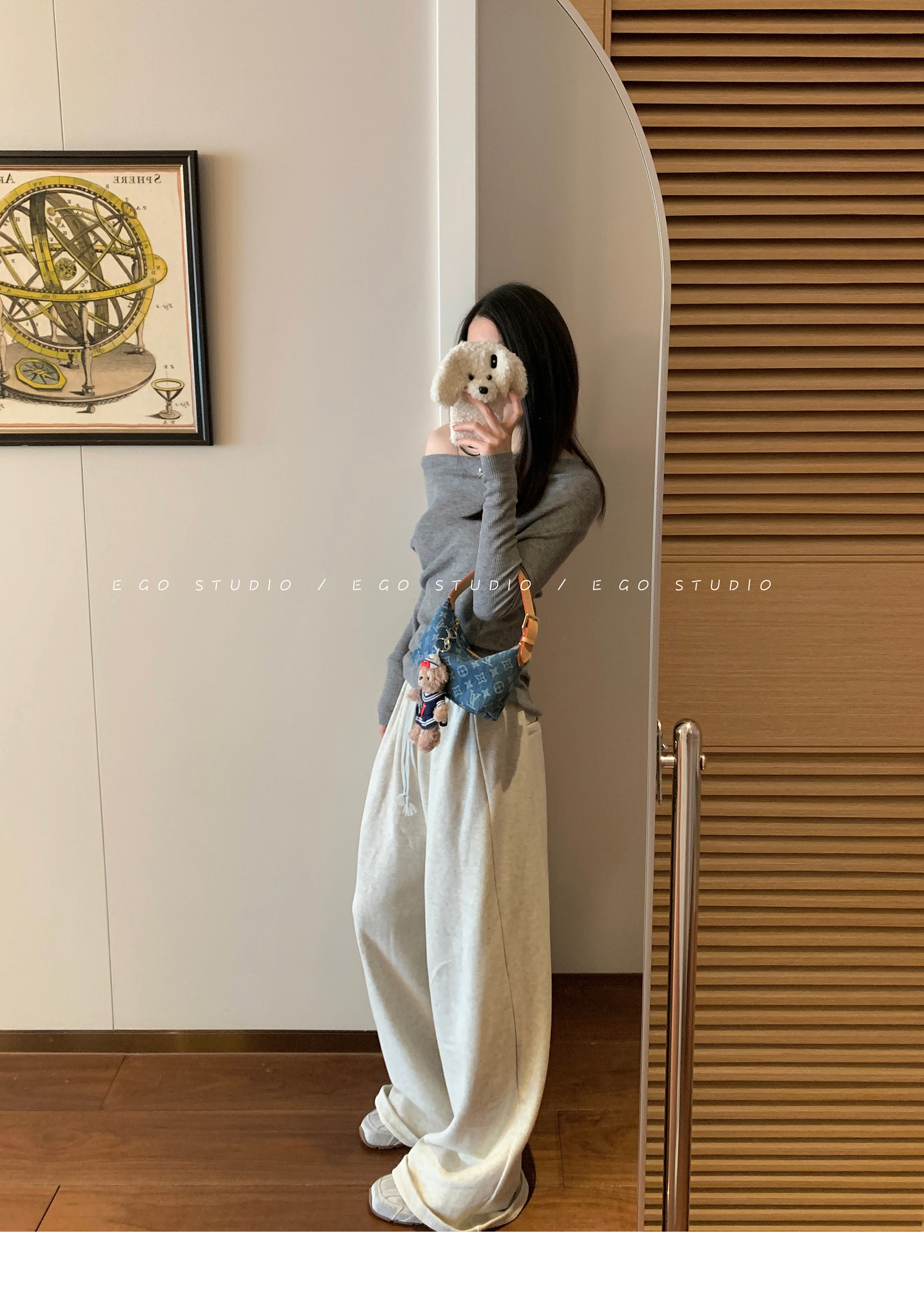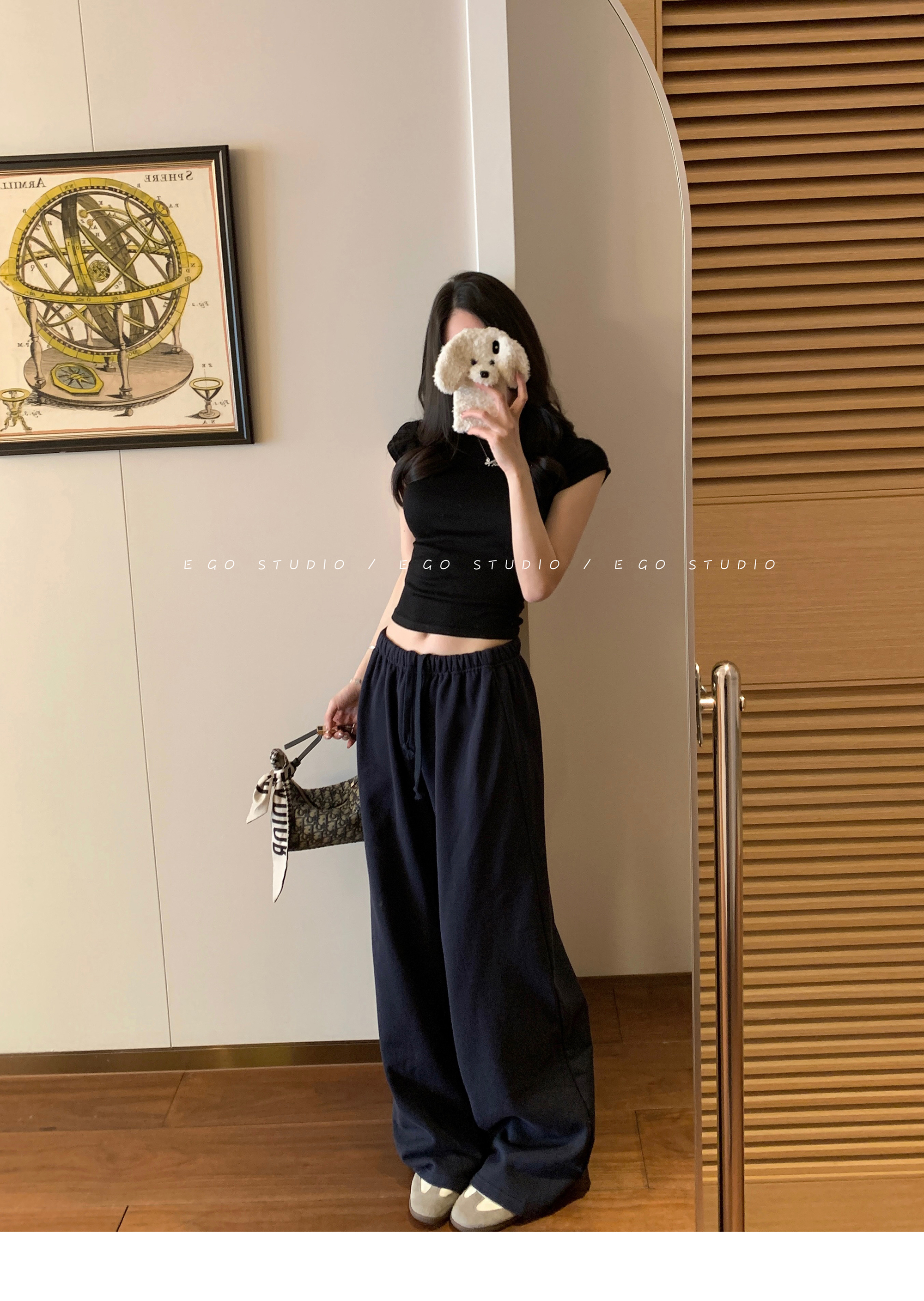 E Go Studio All-Cotton Mid-Low Waist Drawstring American-Style Simple Wide-Leg Casual Versatile Sweatpants for Women