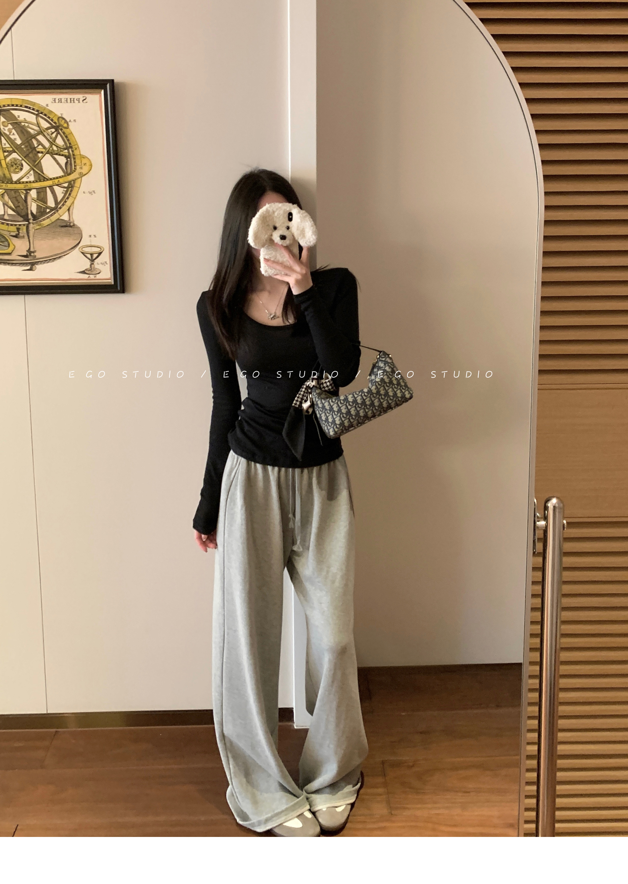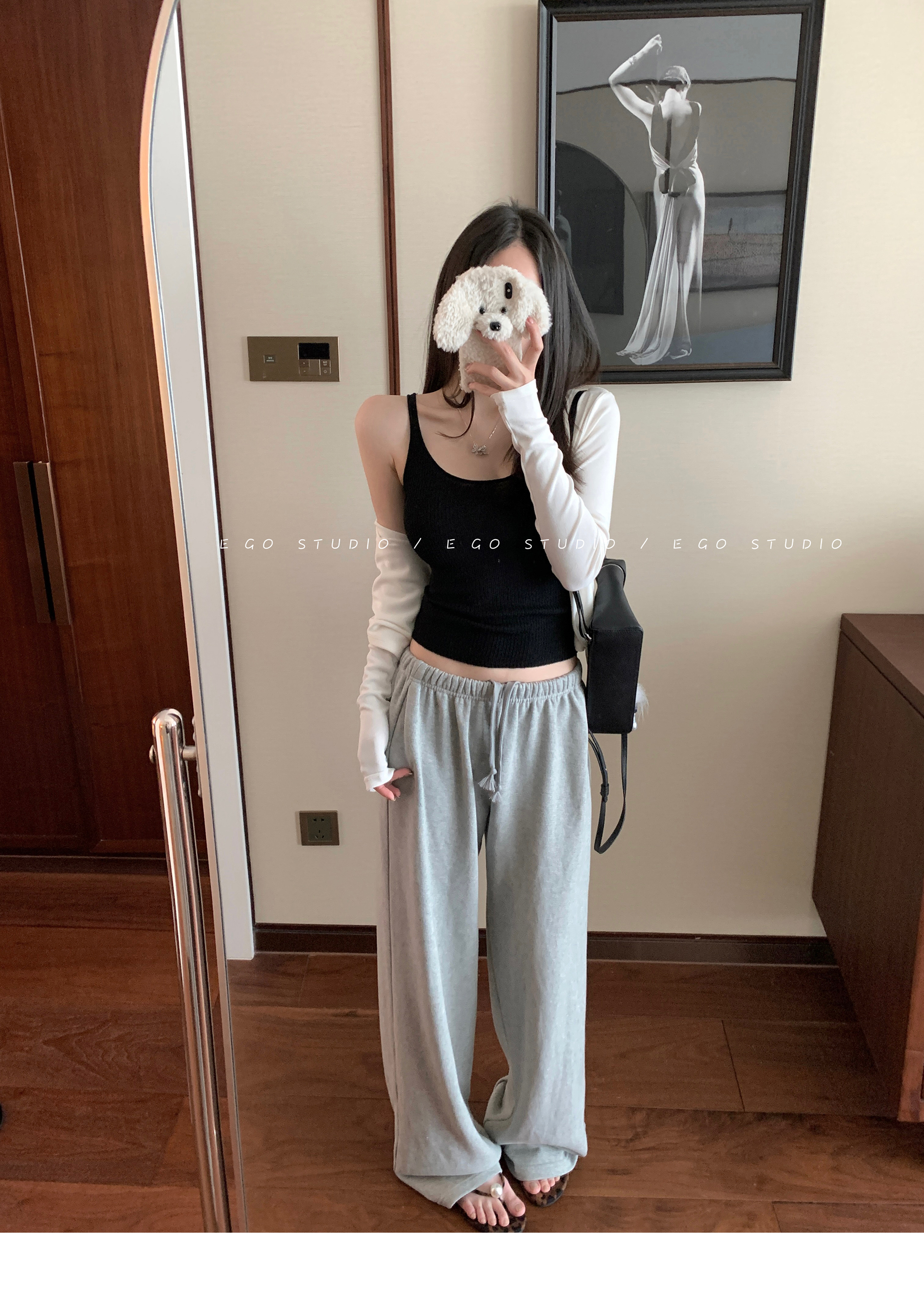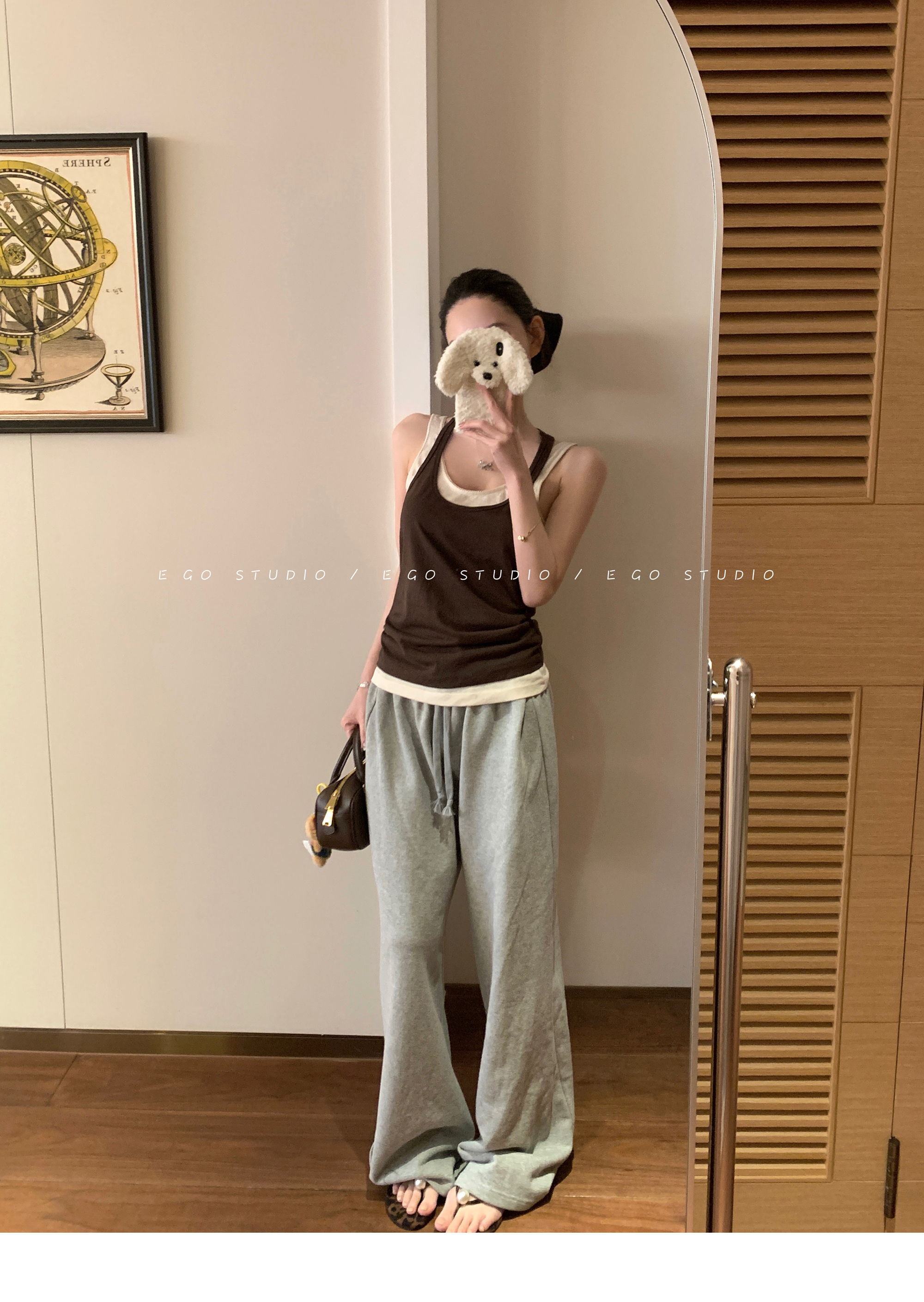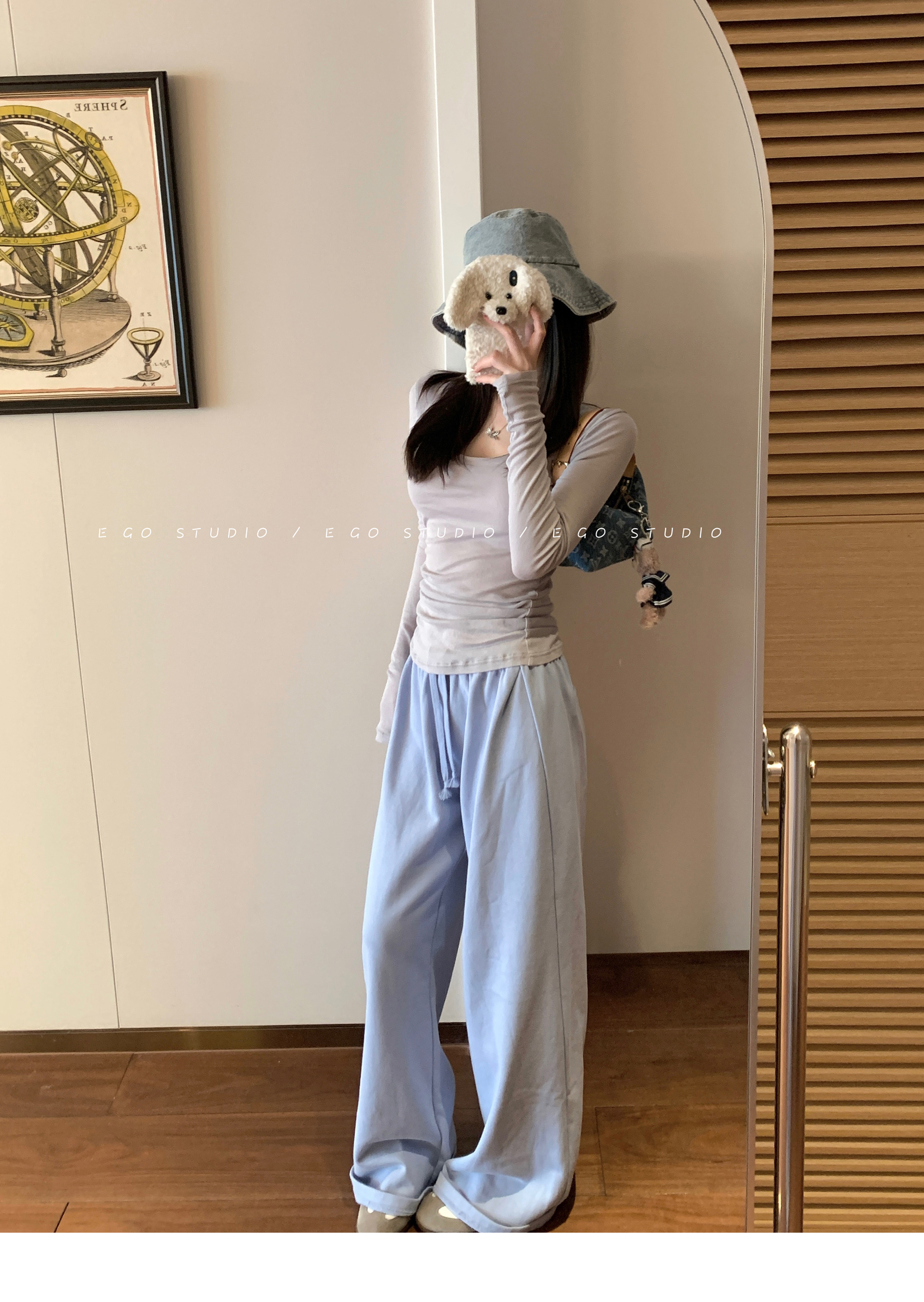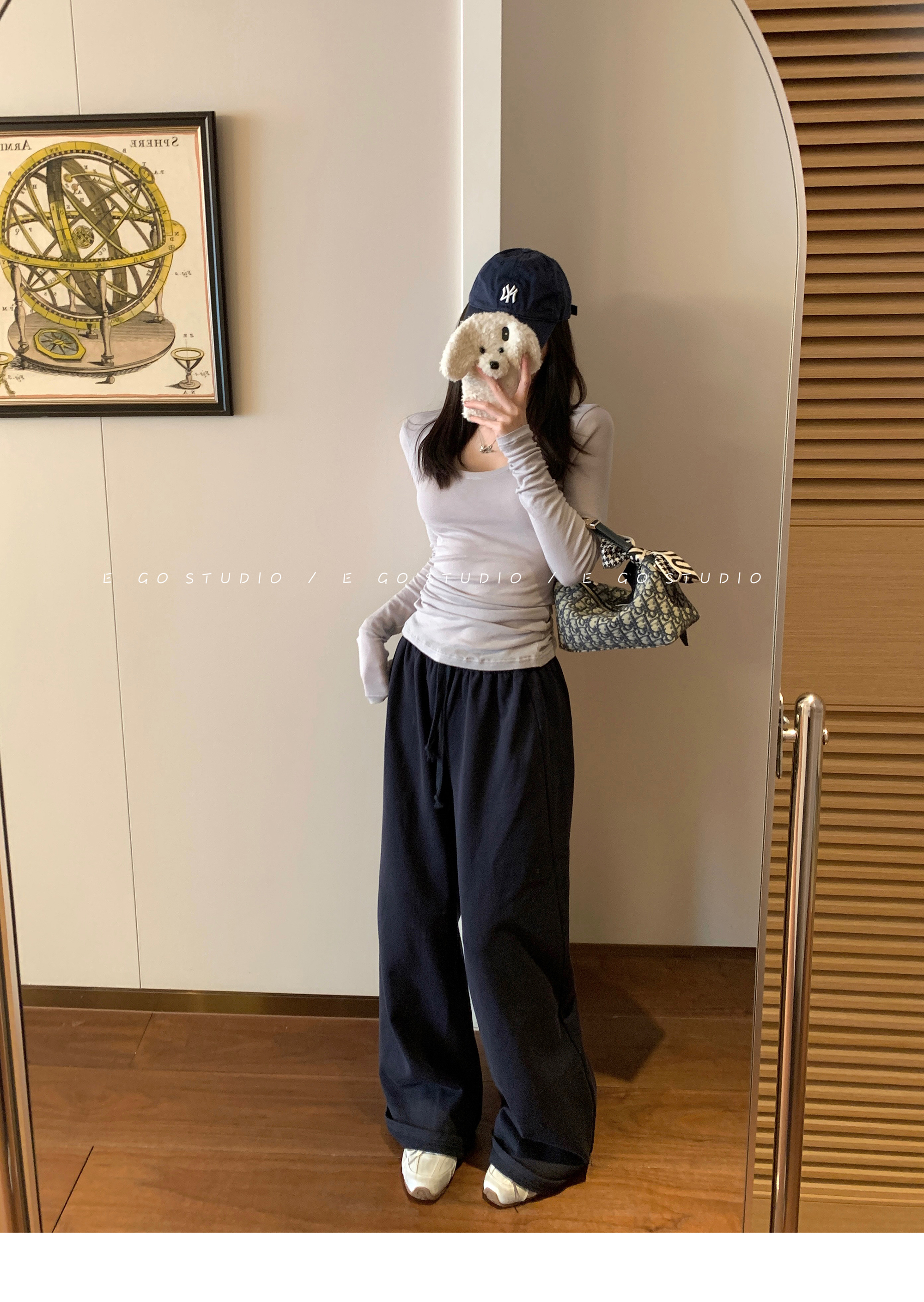 E Go Studio All-Cotton Mid-Low Waist Drawstring American-Style Simple Wide-Leg Casual Versatile Sweatpants for Women
