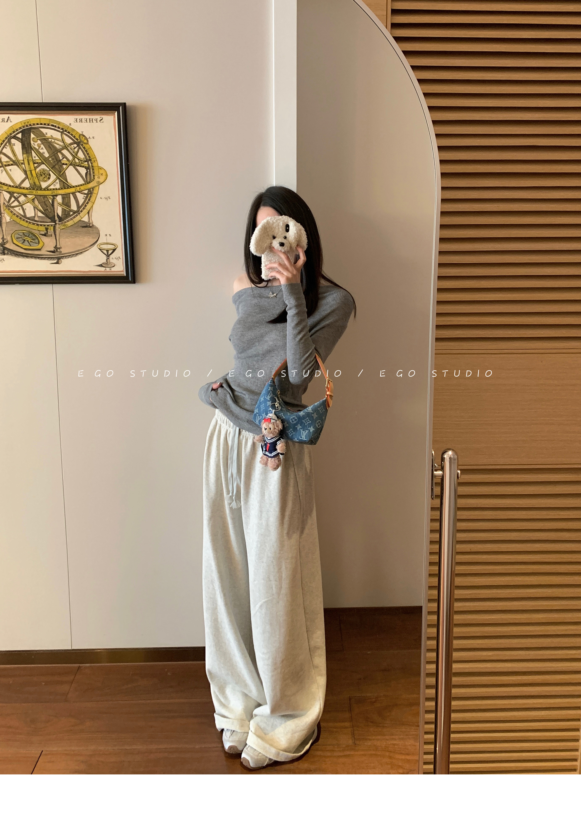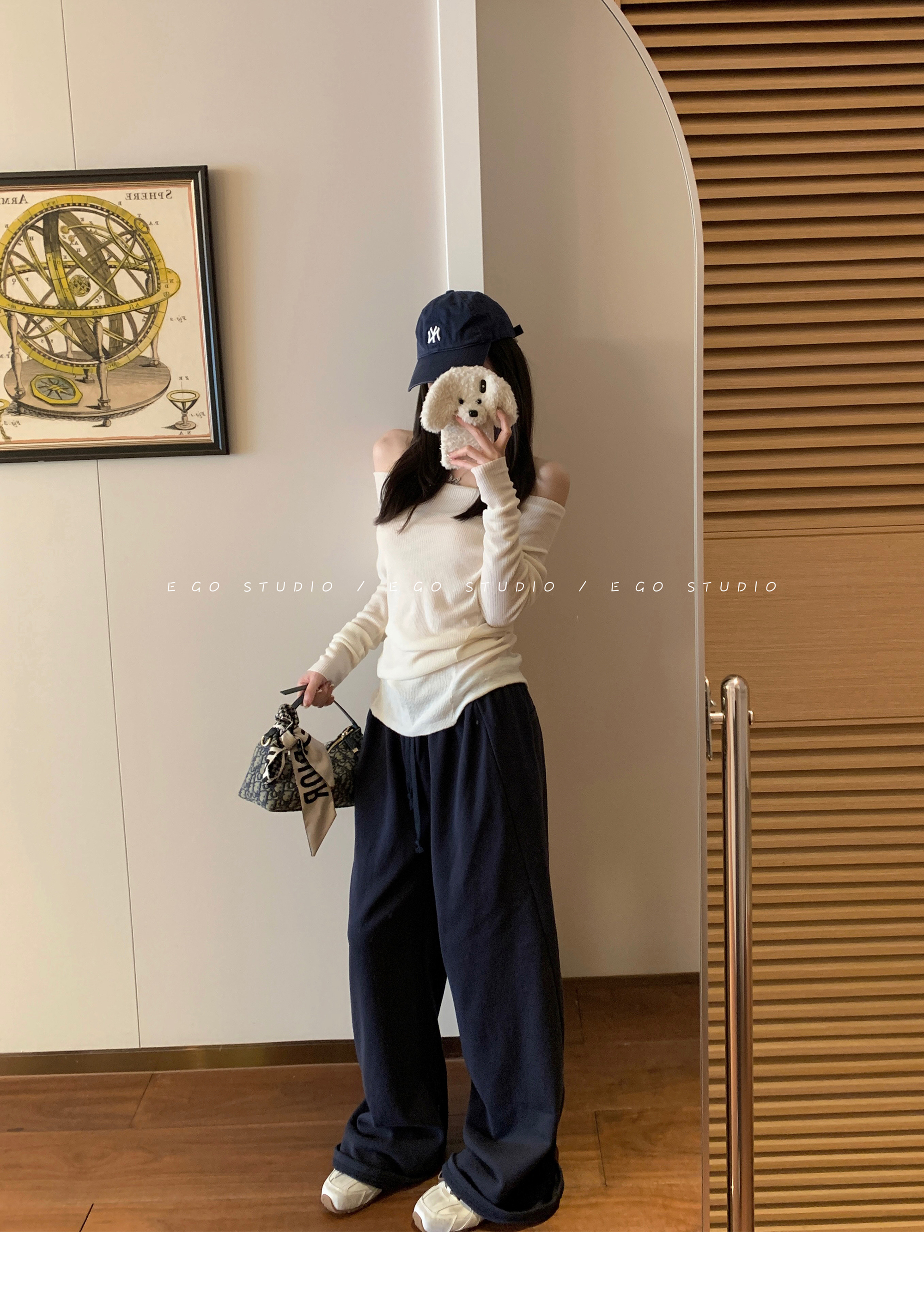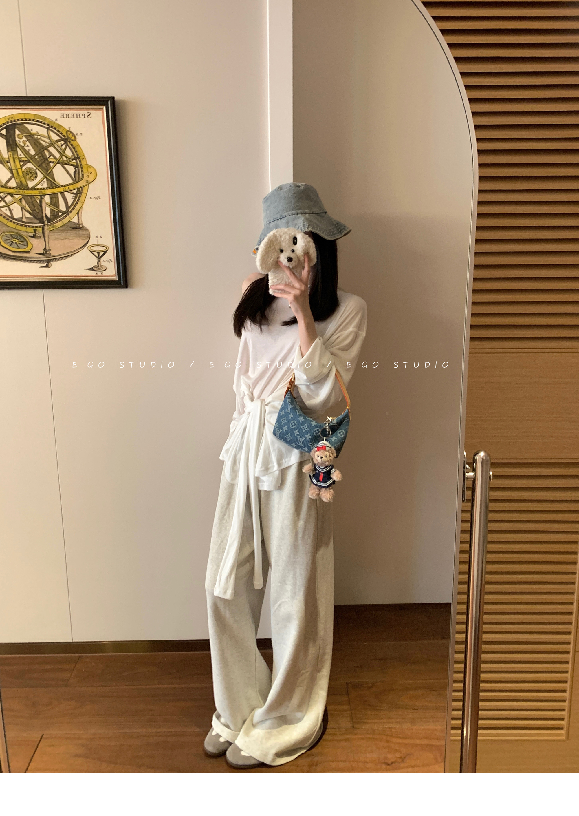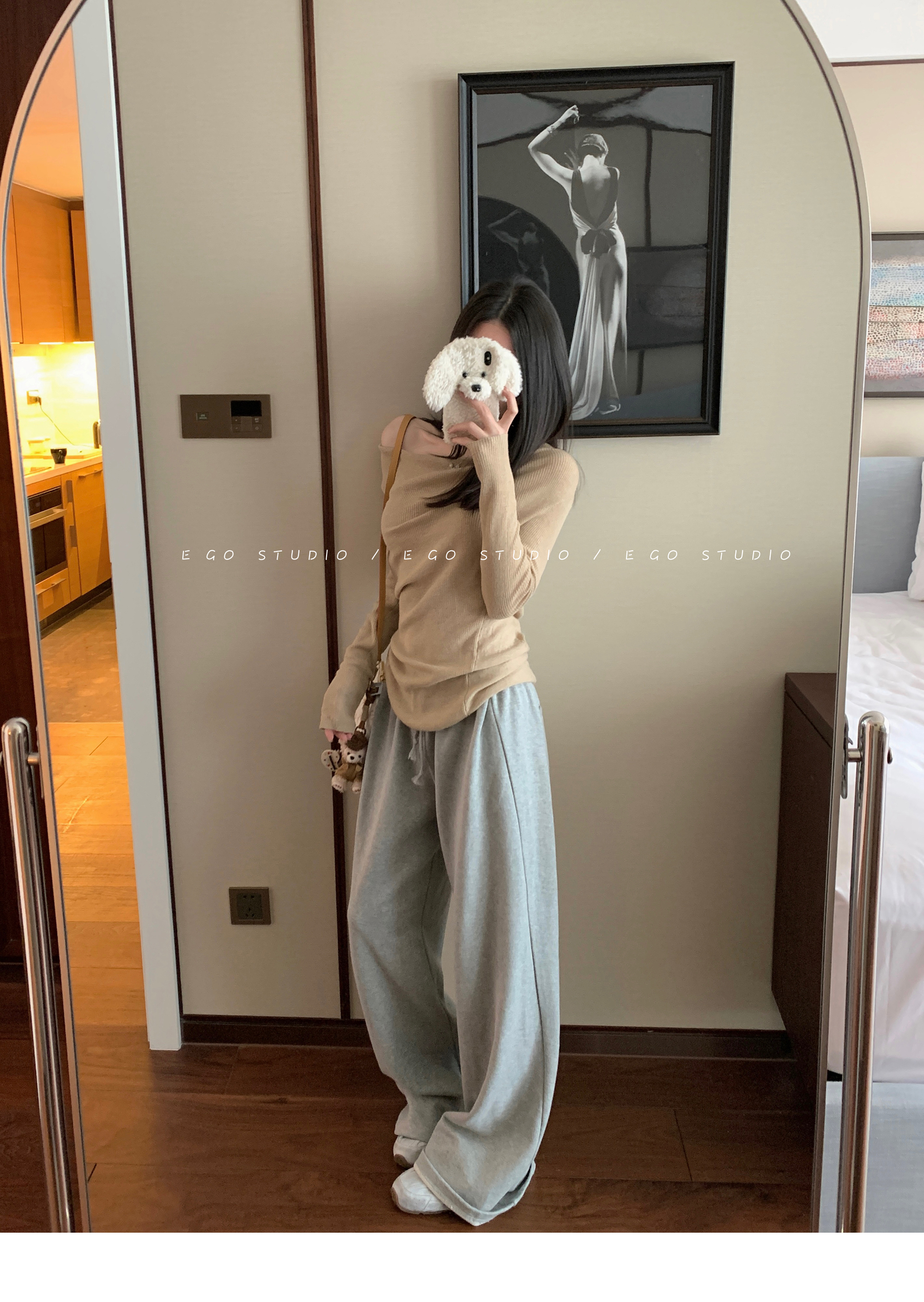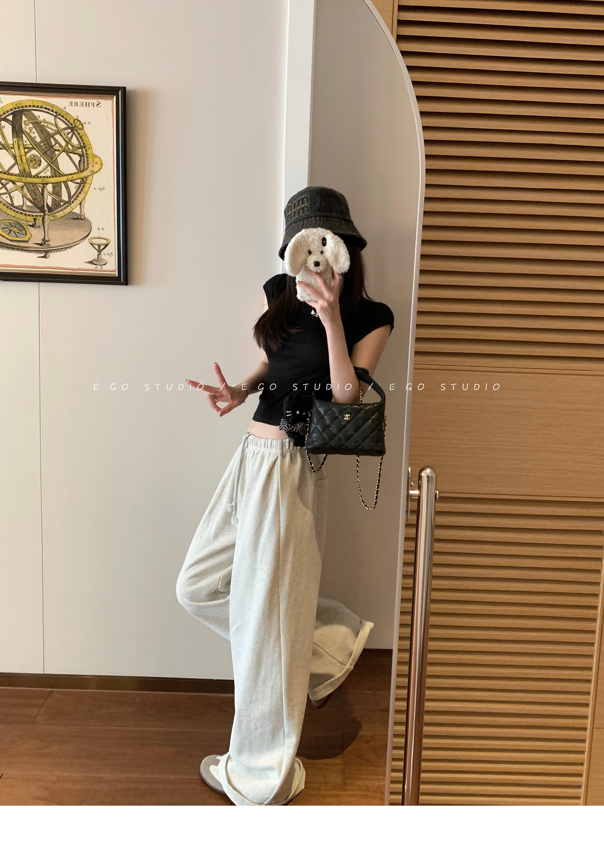 E Go Studio All-Cotton Mid-Low Waist Drawstring American-Style Simple Wide-Leg Casual Versatile Sweatpants for Women