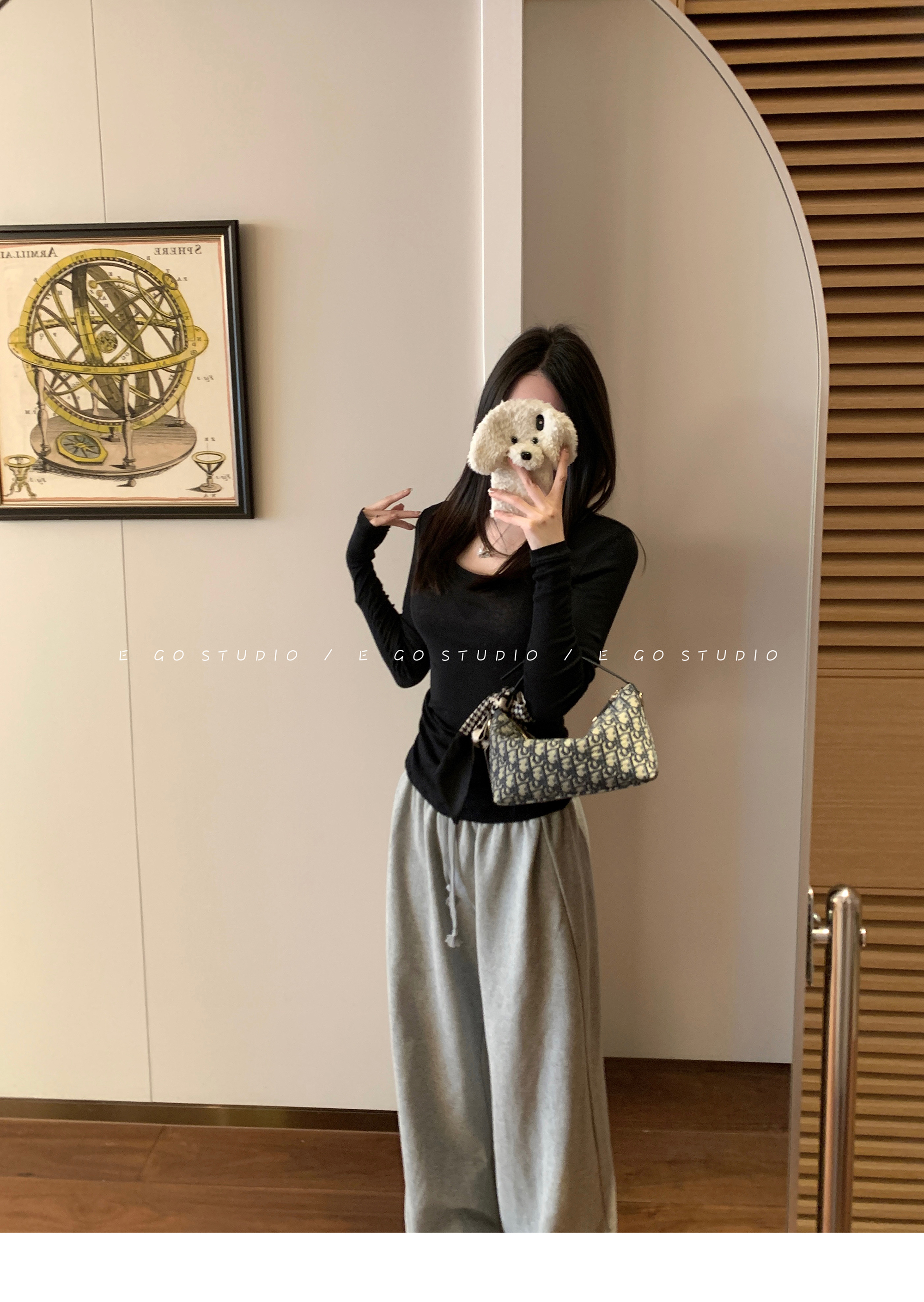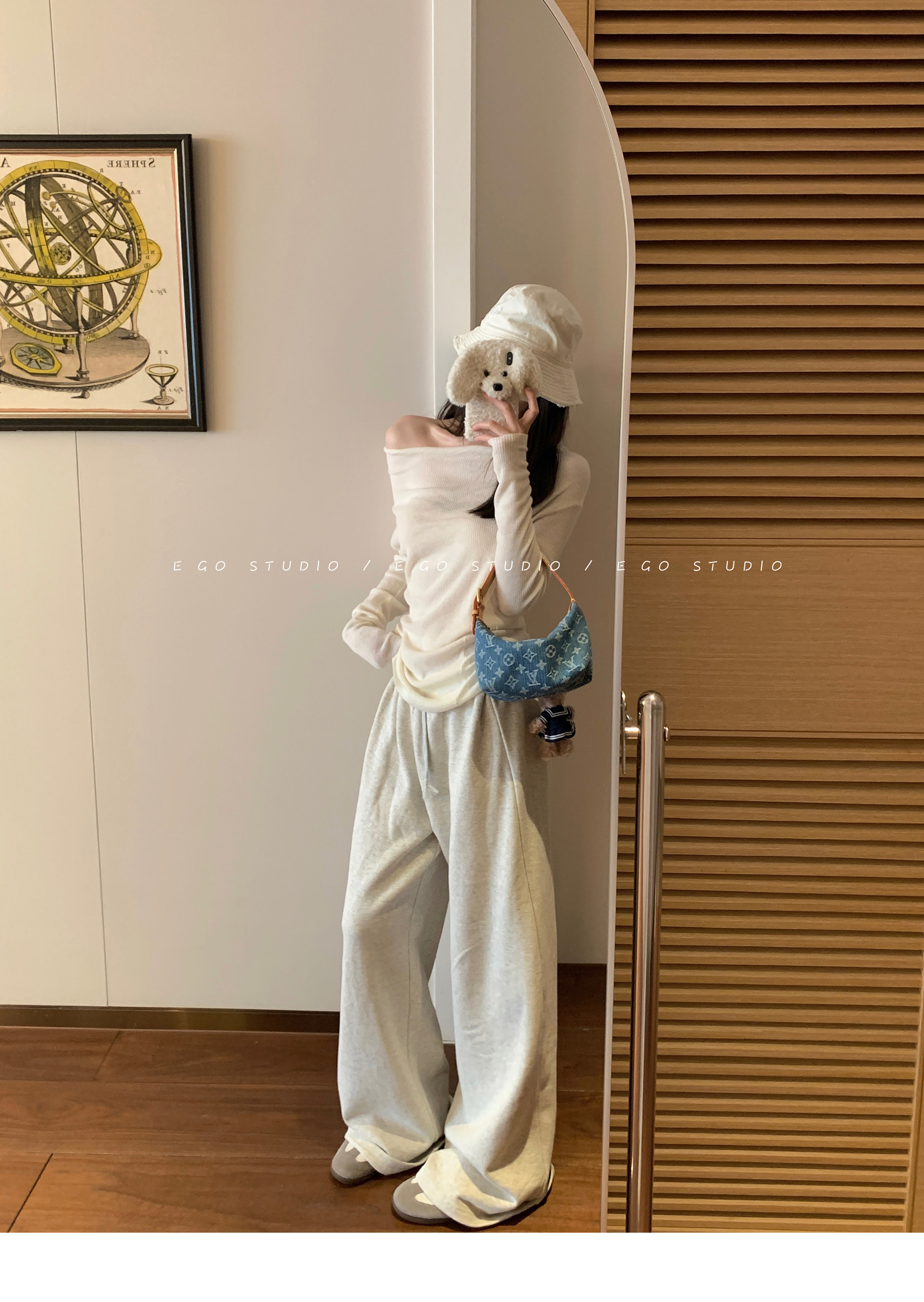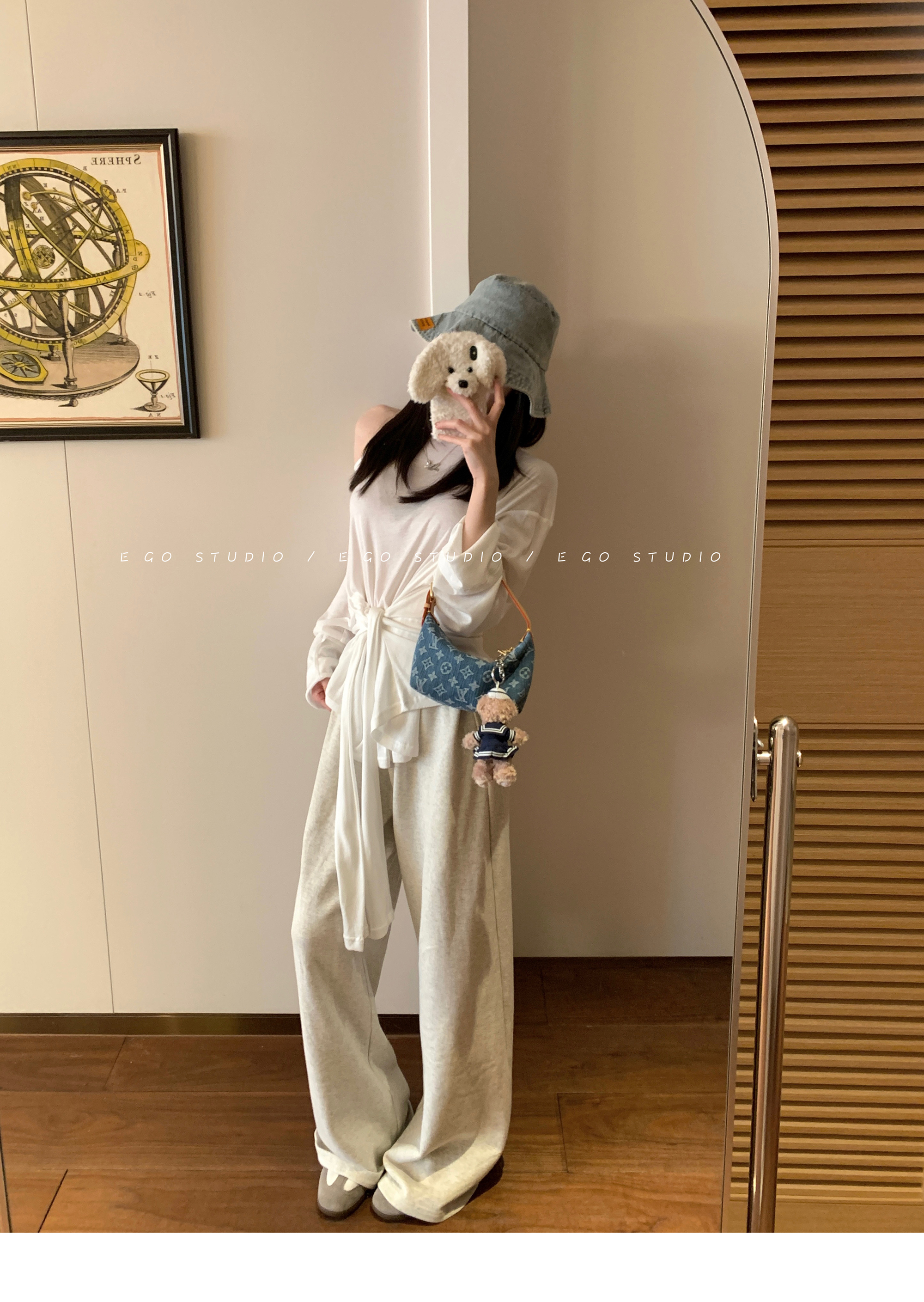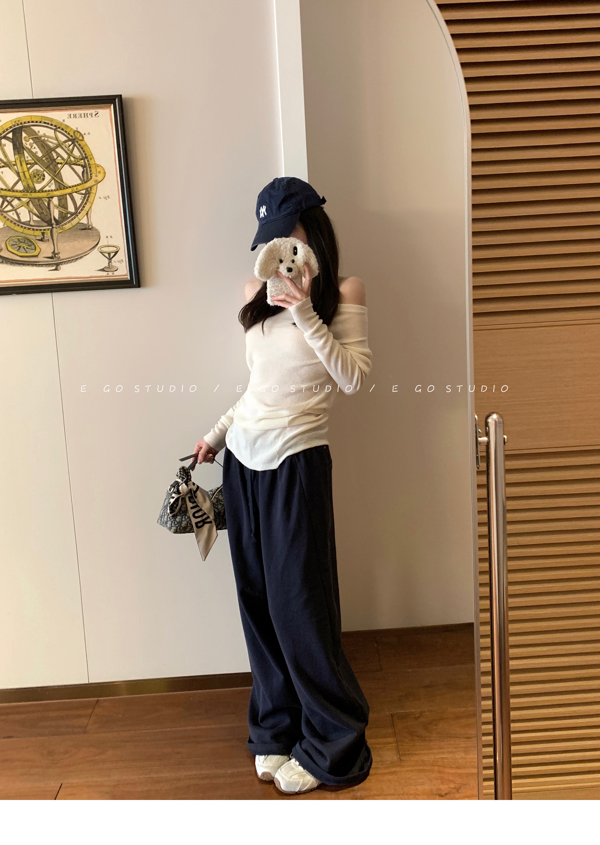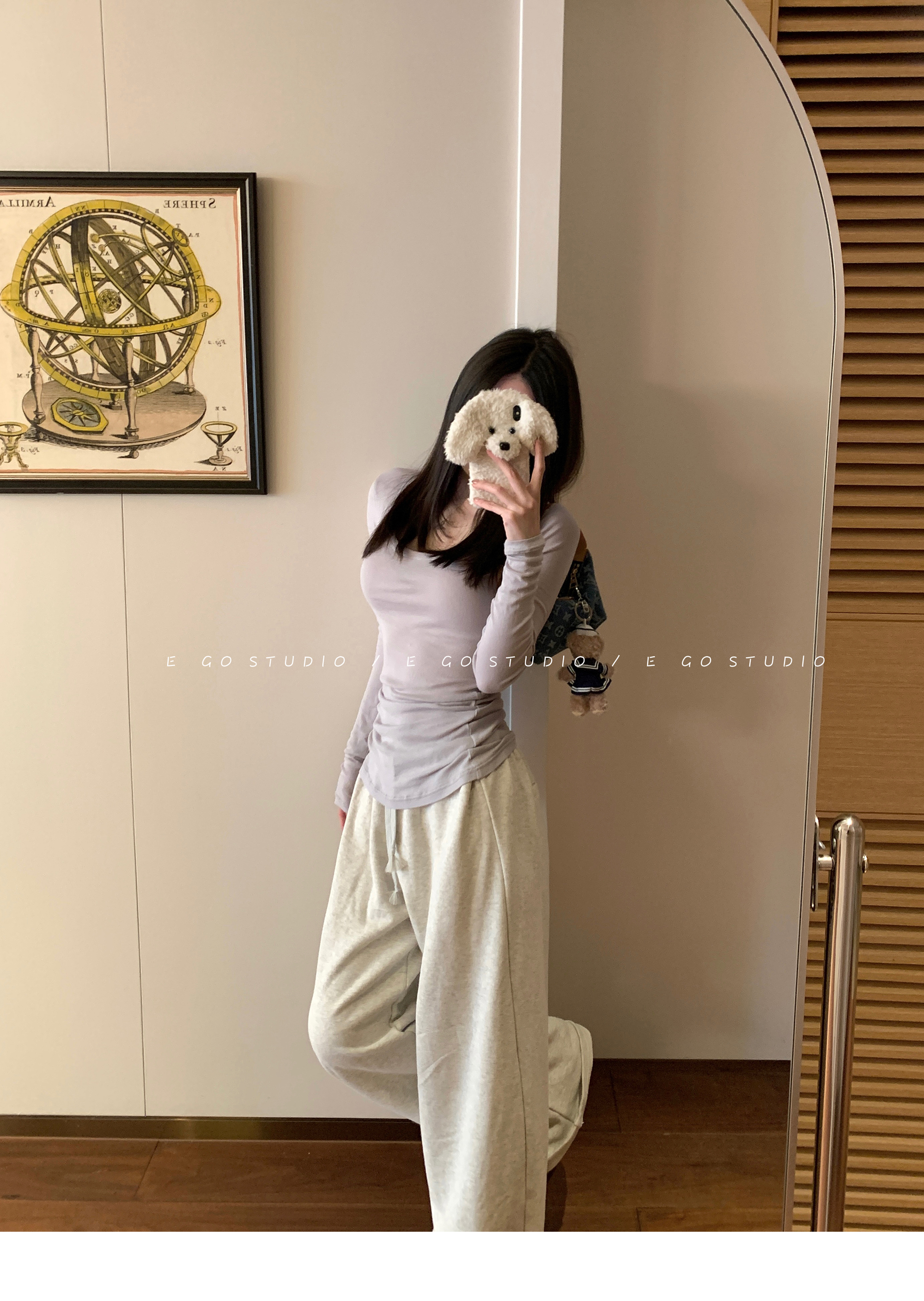 E Go Studio All-Cotton Mid-Low Waist Drawstring American-Style Simple Wide-Leg Casual Versatile Sweatpants for Women