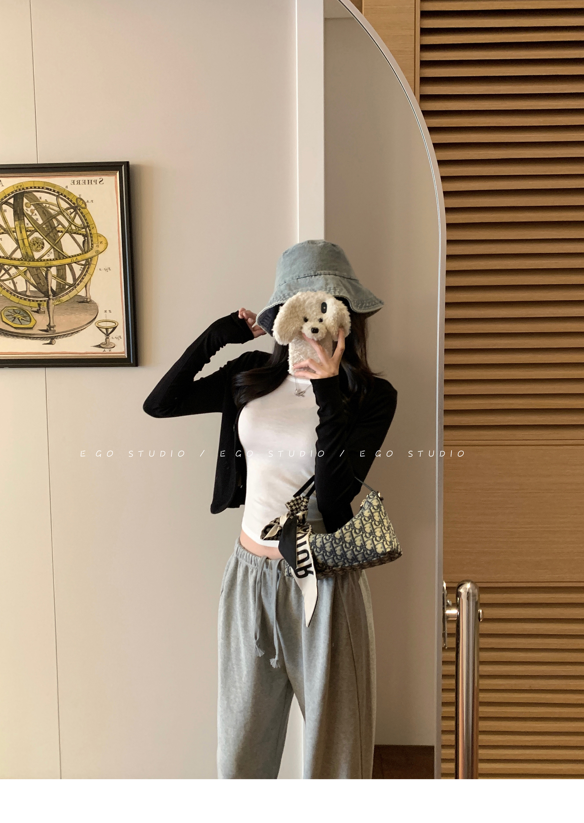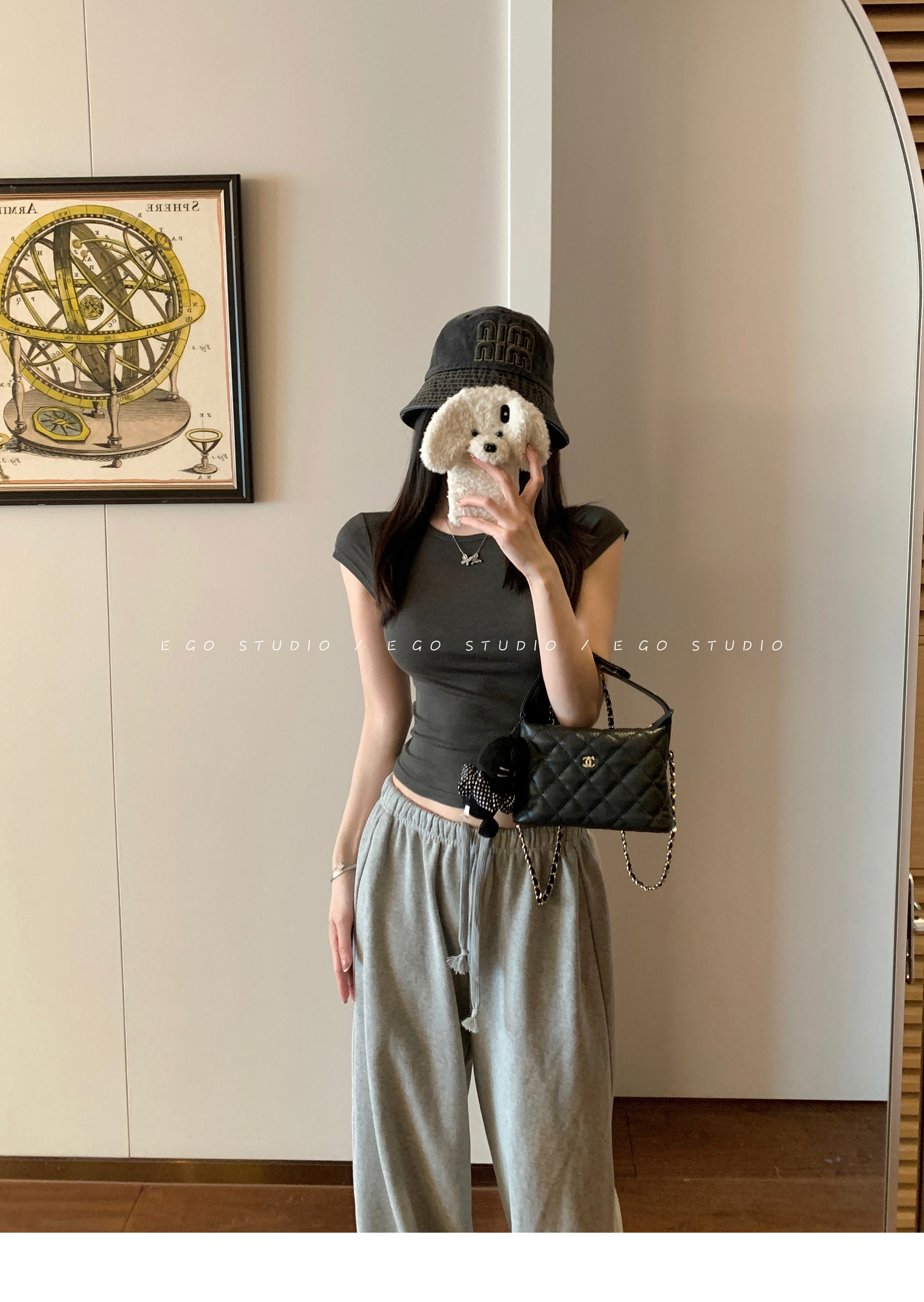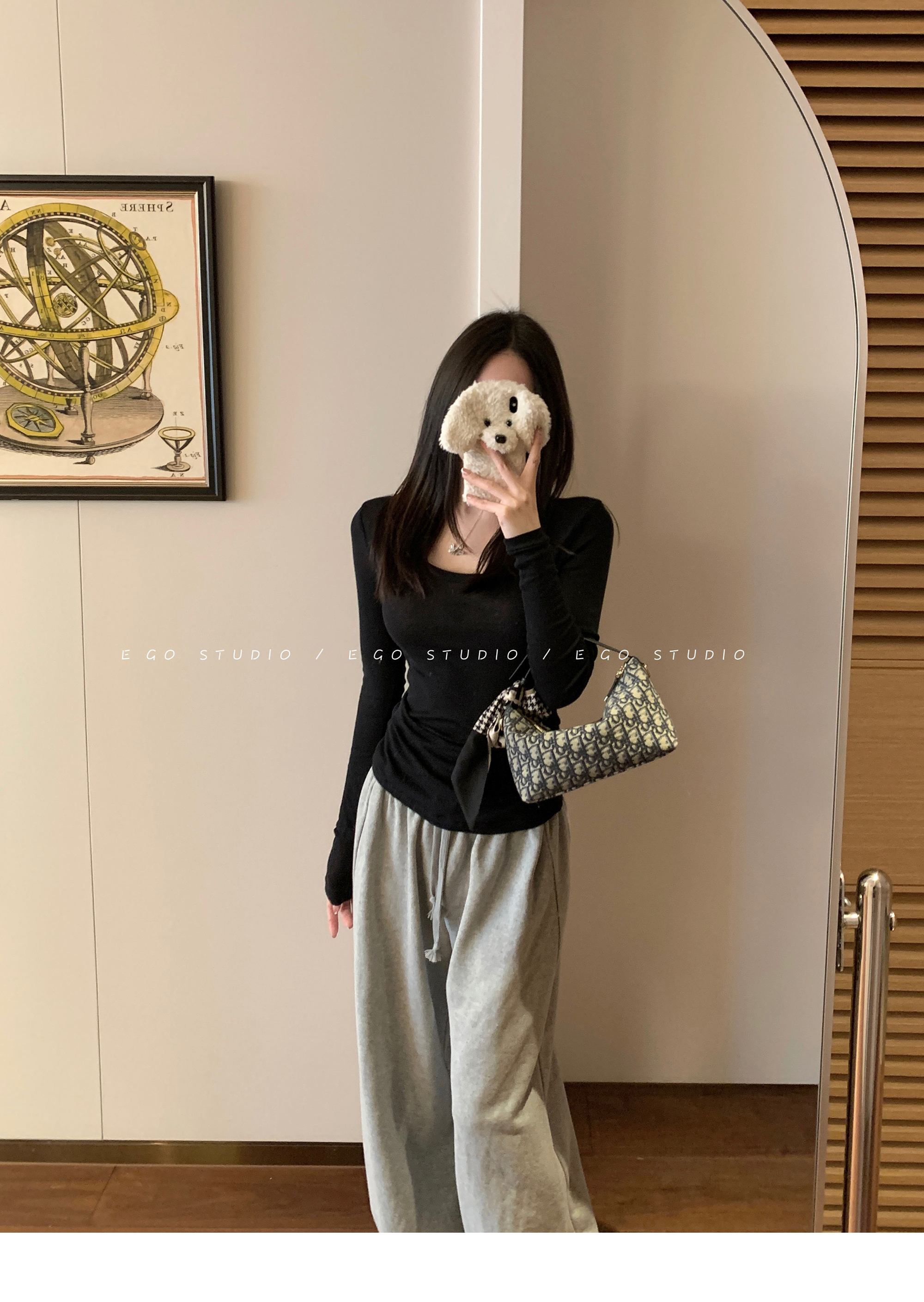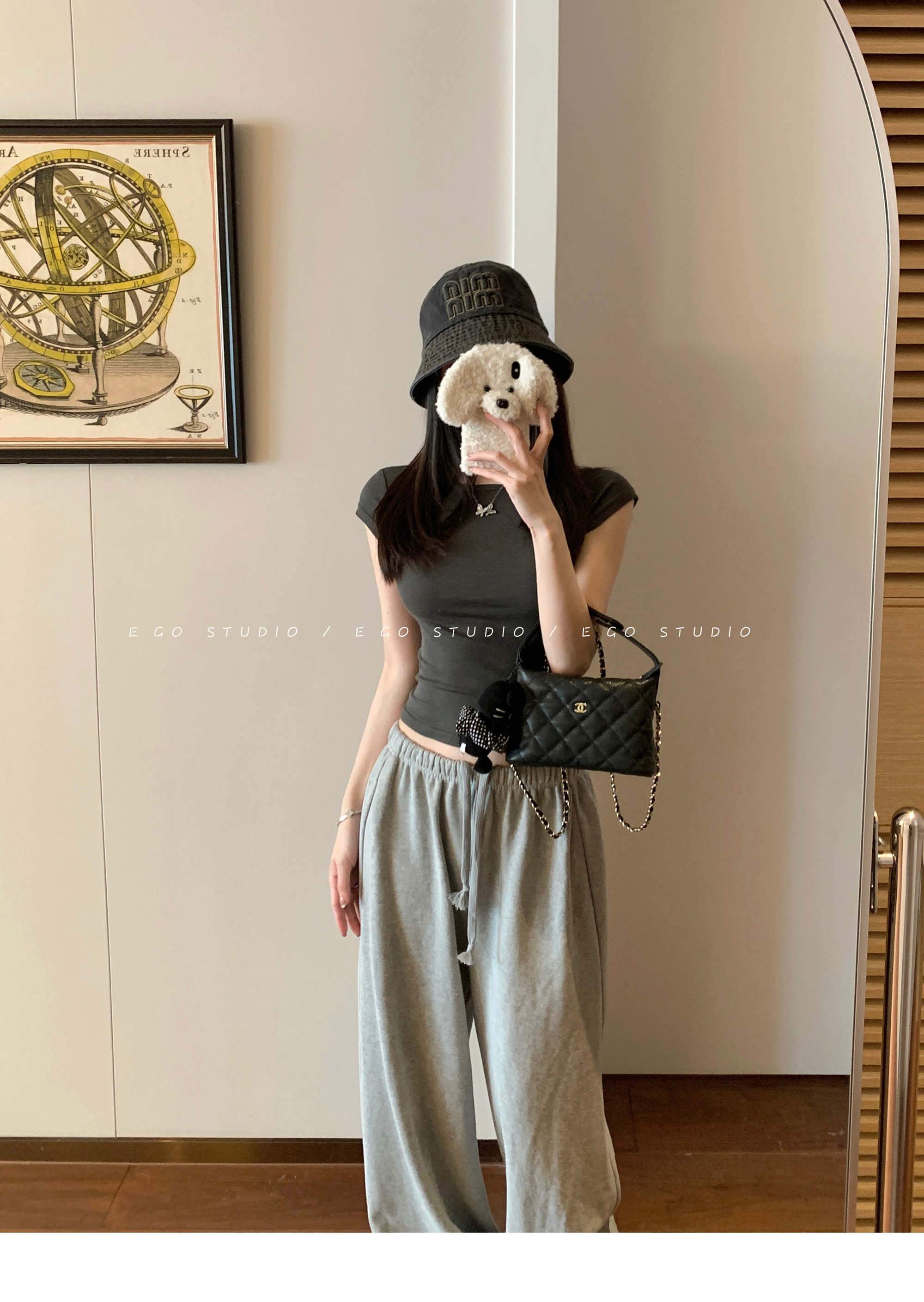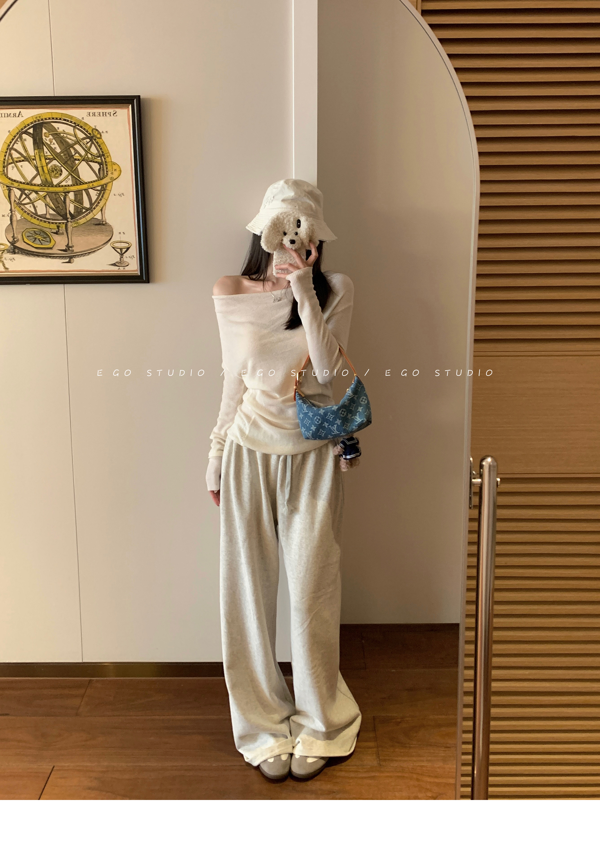 E Go Studio All-Cotton Mid-Low Waist Drawstring American-Style Simple Wide-Leg Casual Versatile Sweatpants for Women