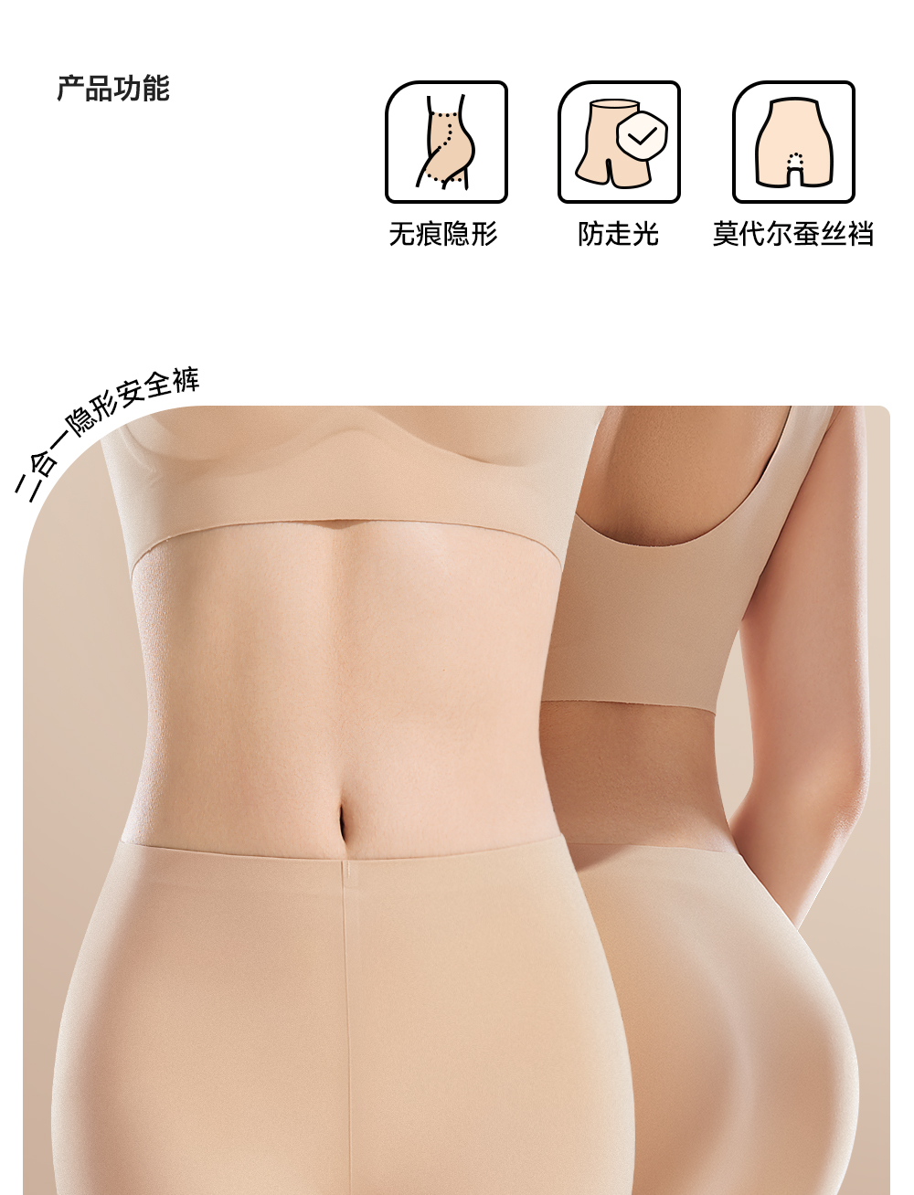 Liquid Foundation Safety Shorts for Women, Invisible Seamless Anti-Exposure Underwear, Two-In-One Leggings, Summer Ice Silk, Non-Curling