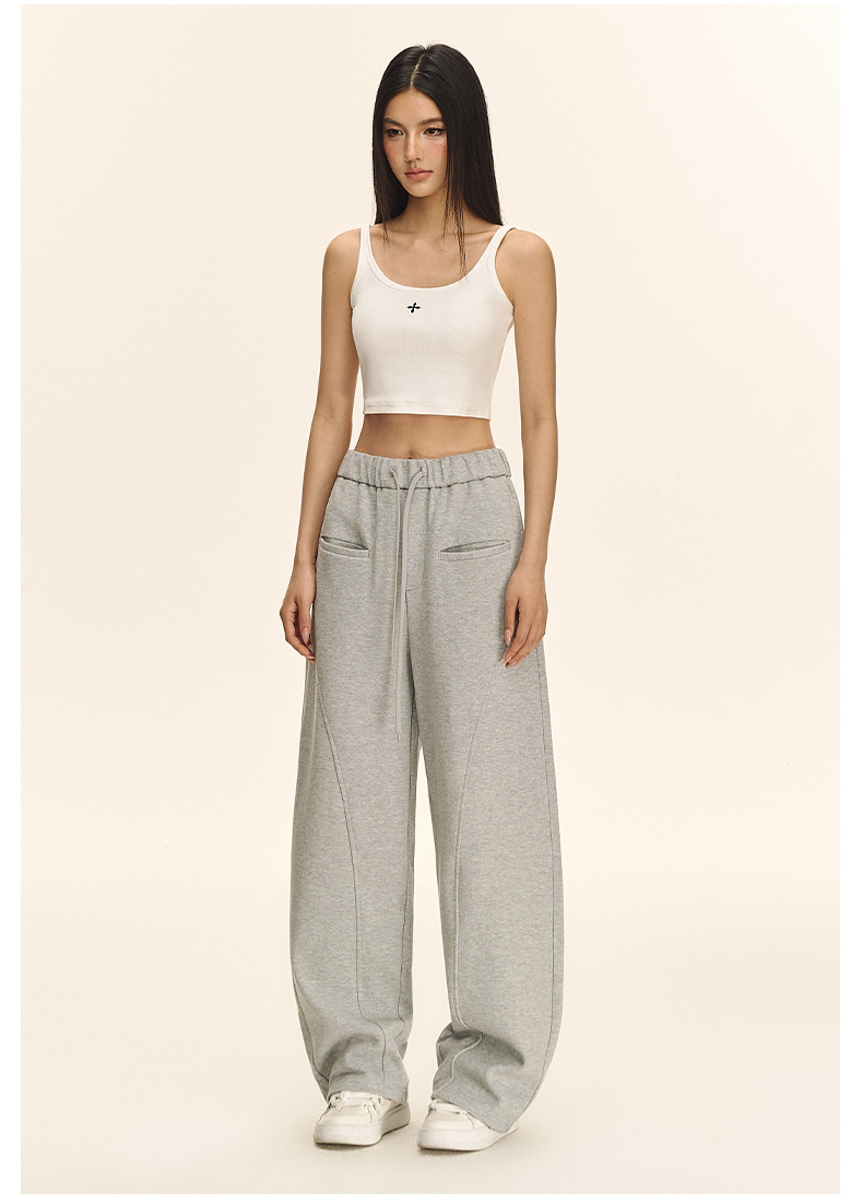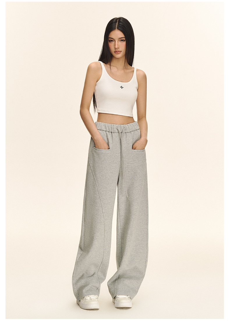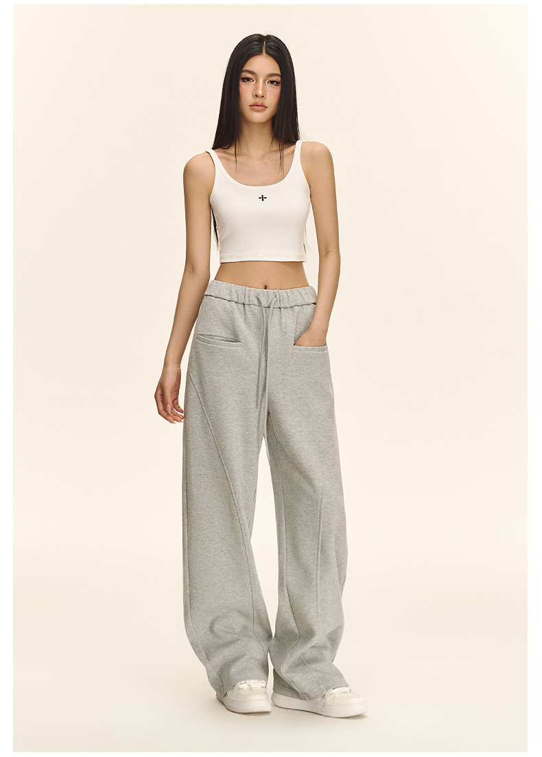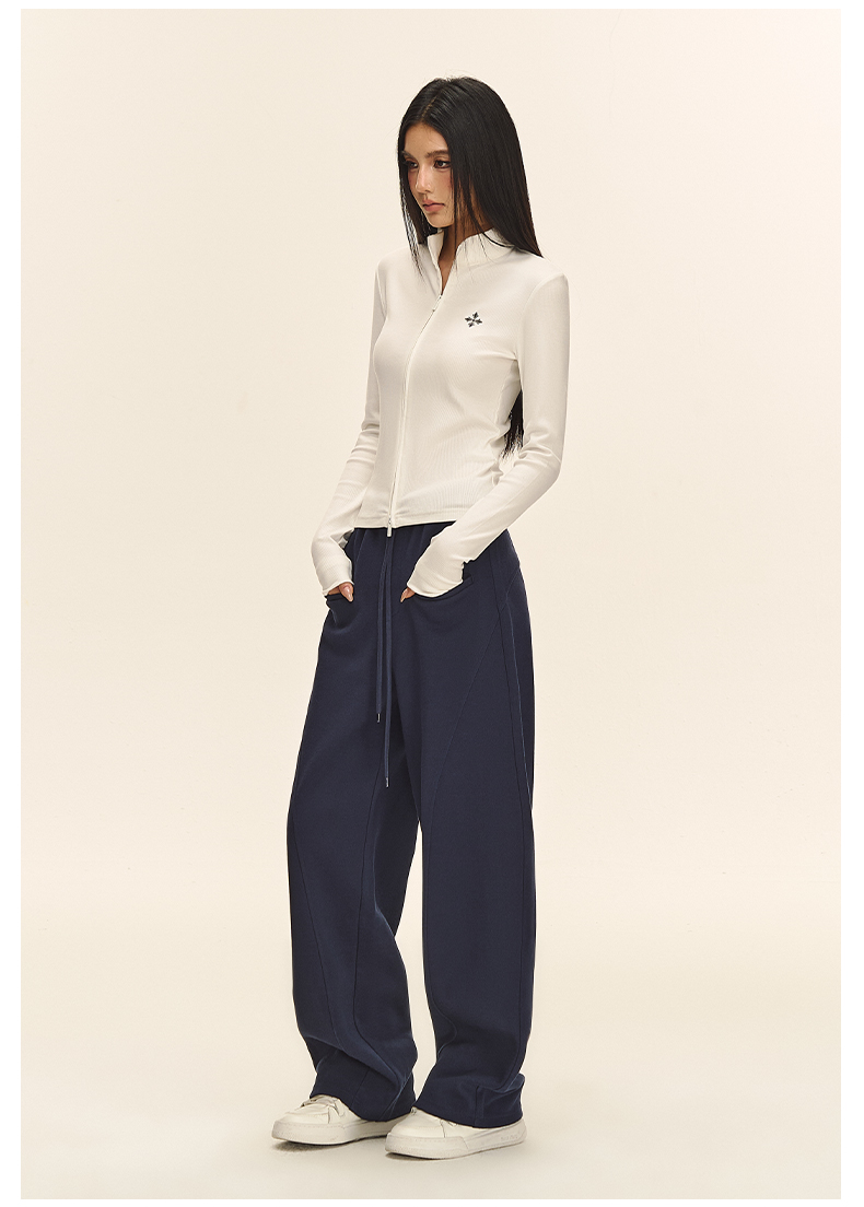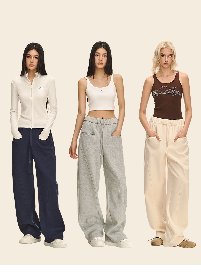 Climax Vision Split-Cut Curved High-Waisted Scimitar Sweatpants for Women, Versatile Casual Straight-Leg Pants for Spring and Autumn
