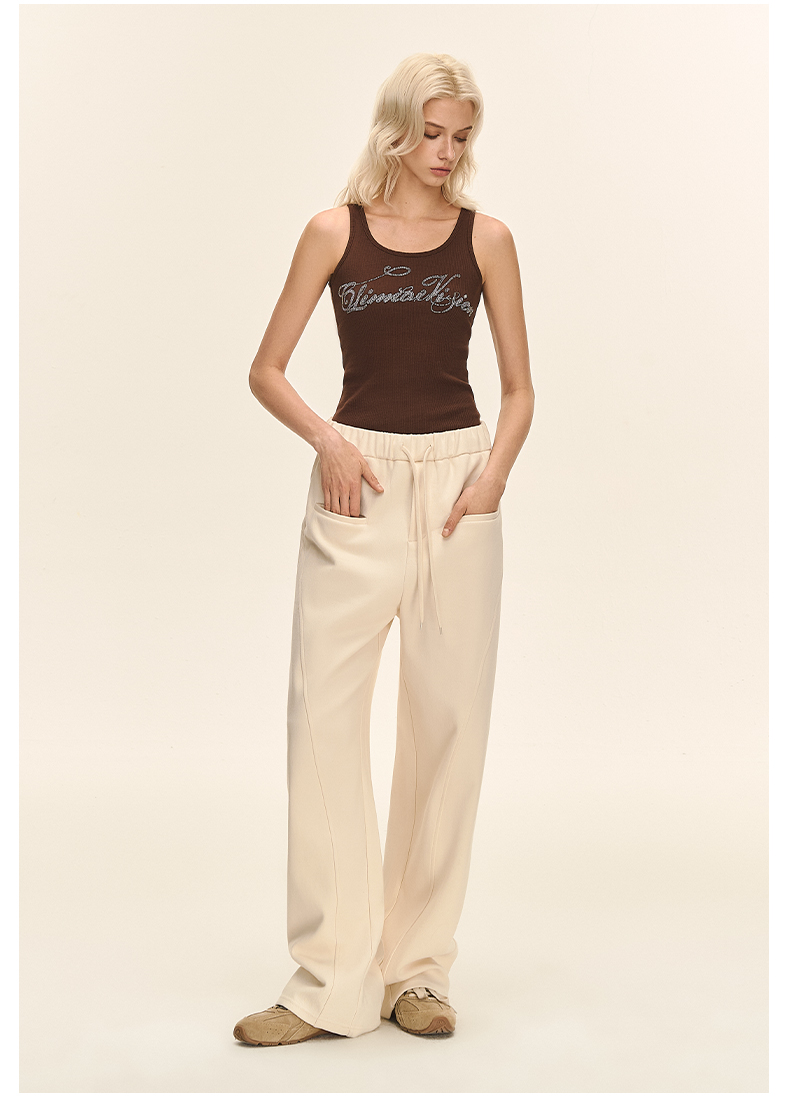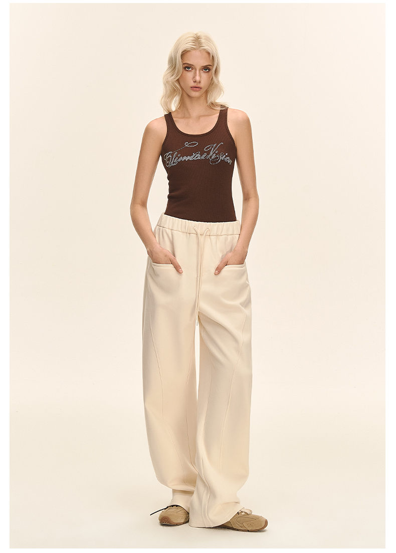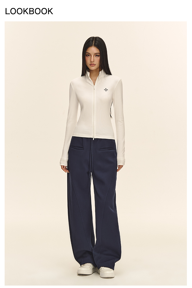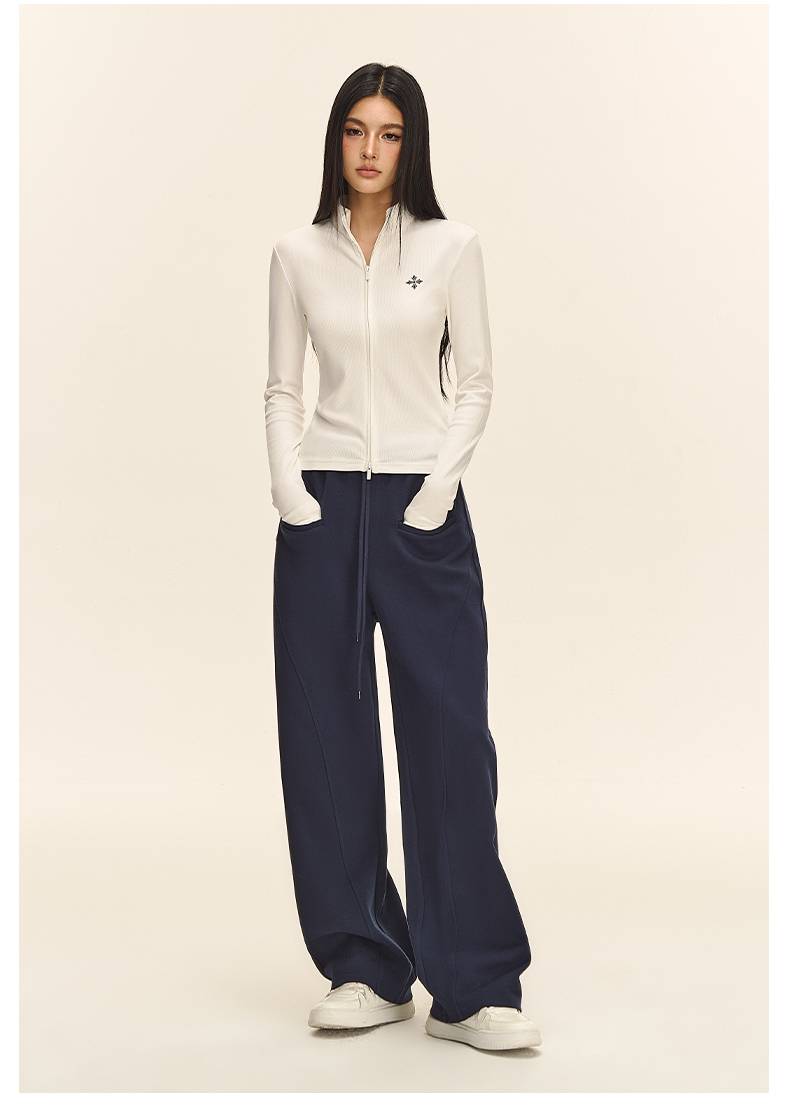 Climax Vision Split-Cut Curved High-Waisted Scimitar Sweatpants for Women, Versatile Casual Straight-Leg Pants for Spring and Autumn