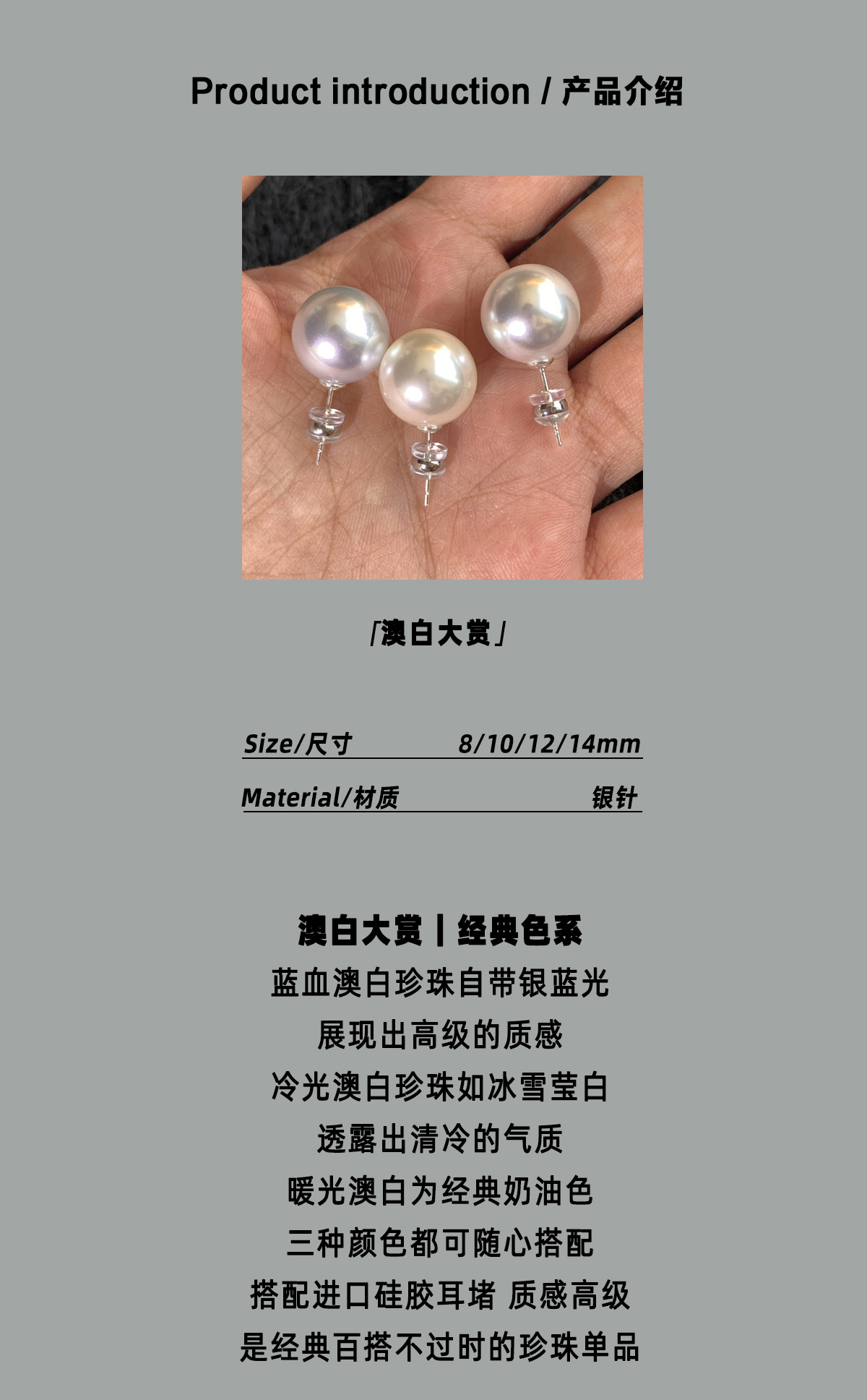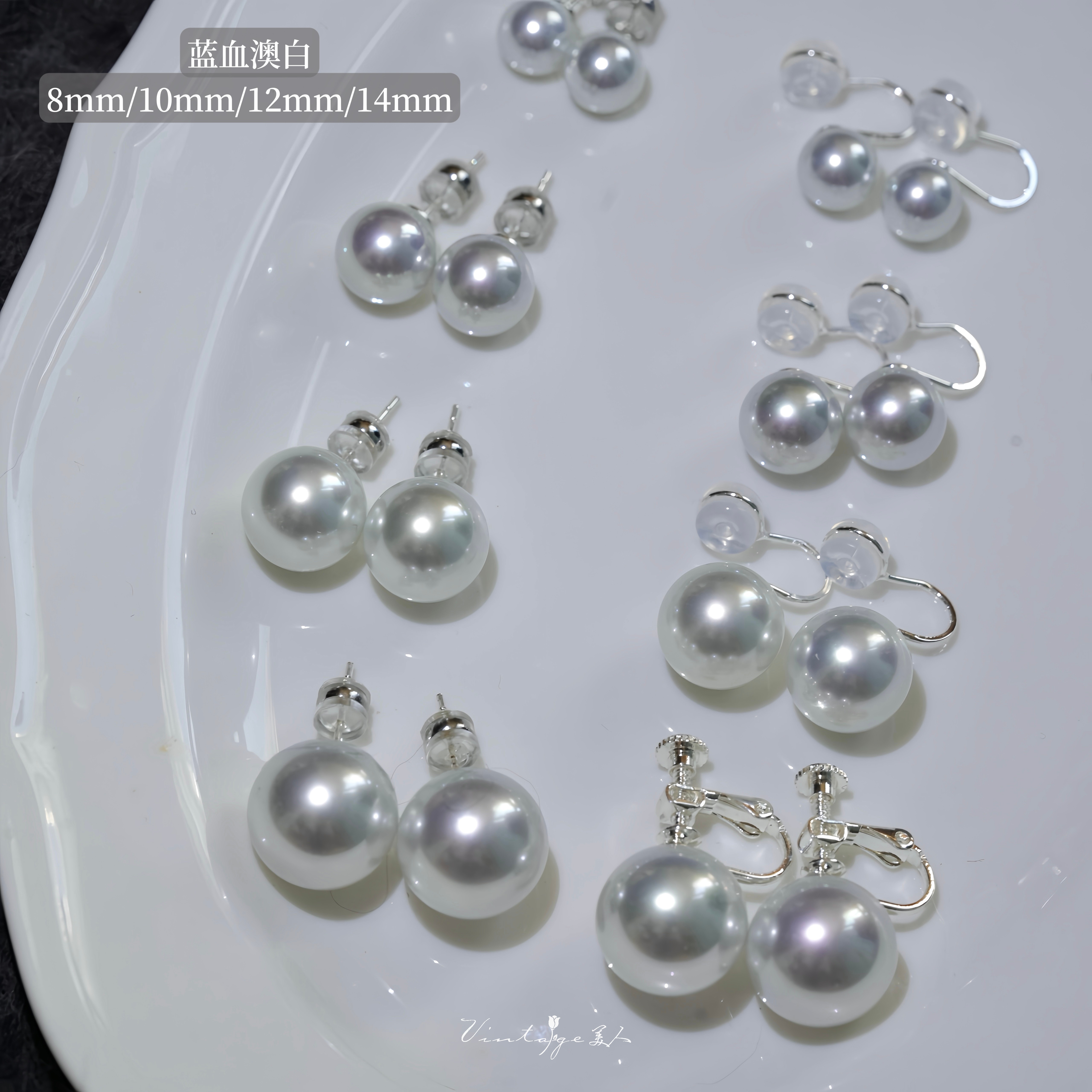 Aussie White Pearl Award Classic French Retro Versatile High-End Blue Blood Cold Light Aussie White Pearl Earrings/Ear Clips