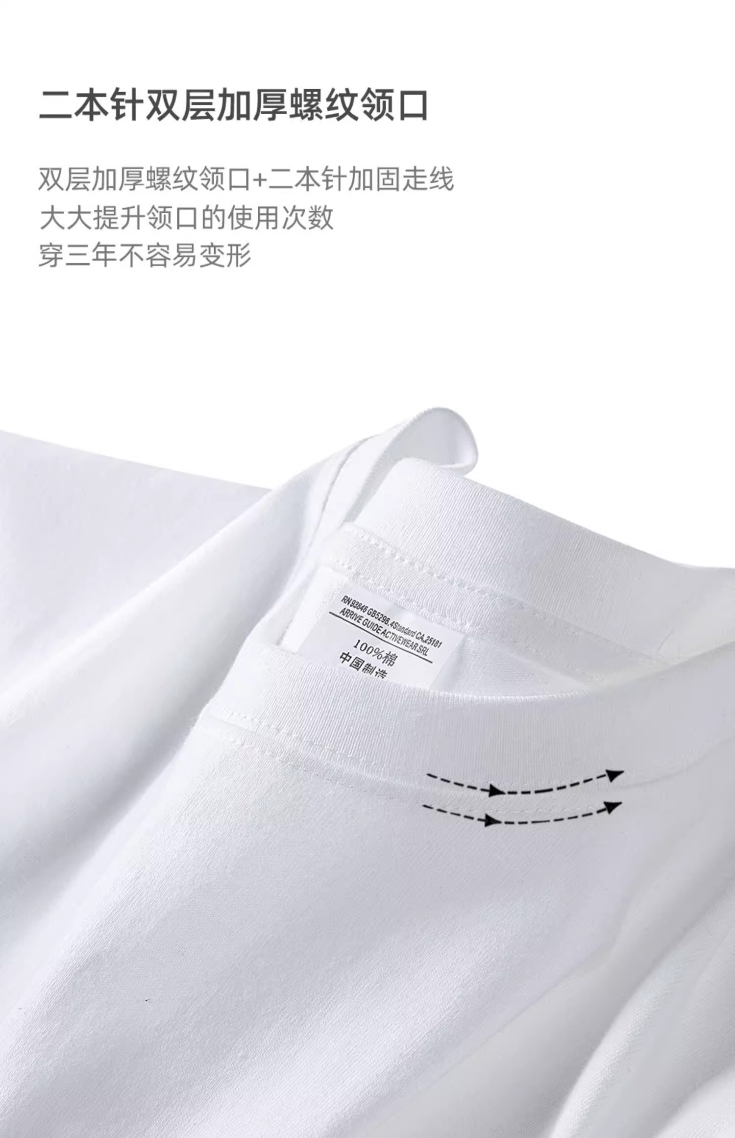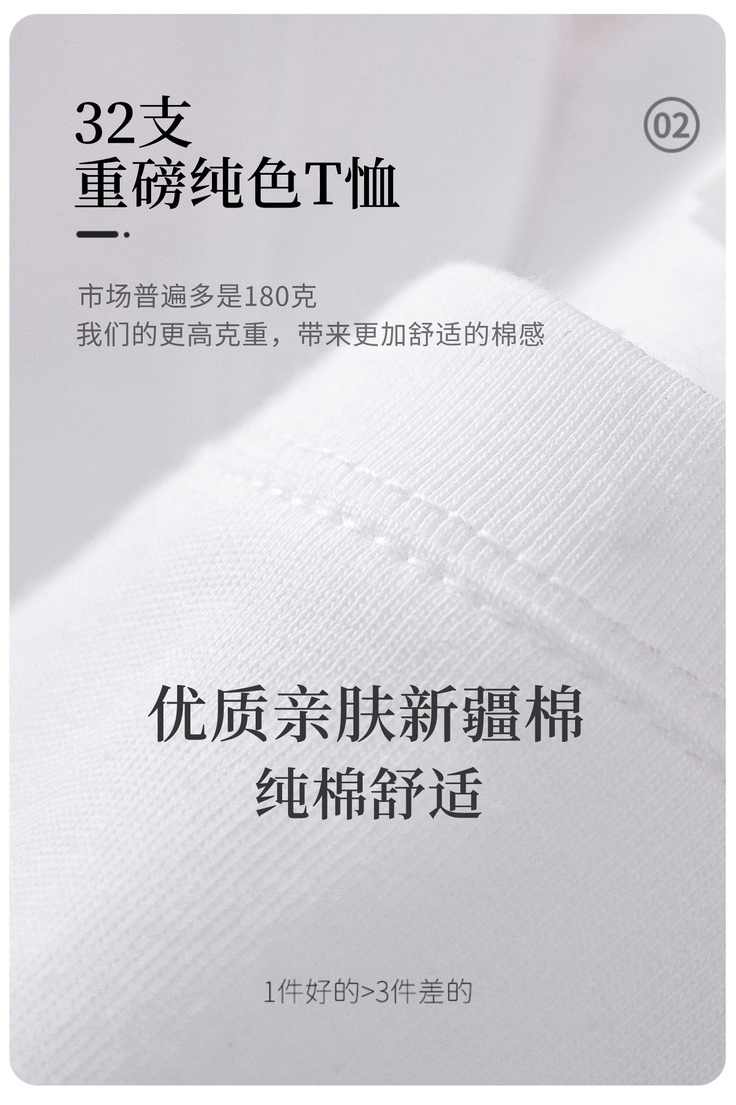 300g Heavy Cotton Short-Sleeve T-Shirt for Men and Women, Thick, Non-See-Through, Sweat-Absorbent, Loose, Solid Color White T-Shirt for Summer