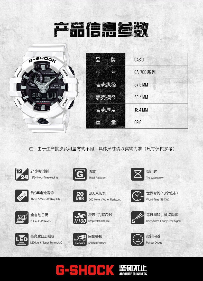 New Year's Gift Casio Casio Watch for Men, Middle and High School Models, G-Shock Student Waterproof Digital Watch Ga-700