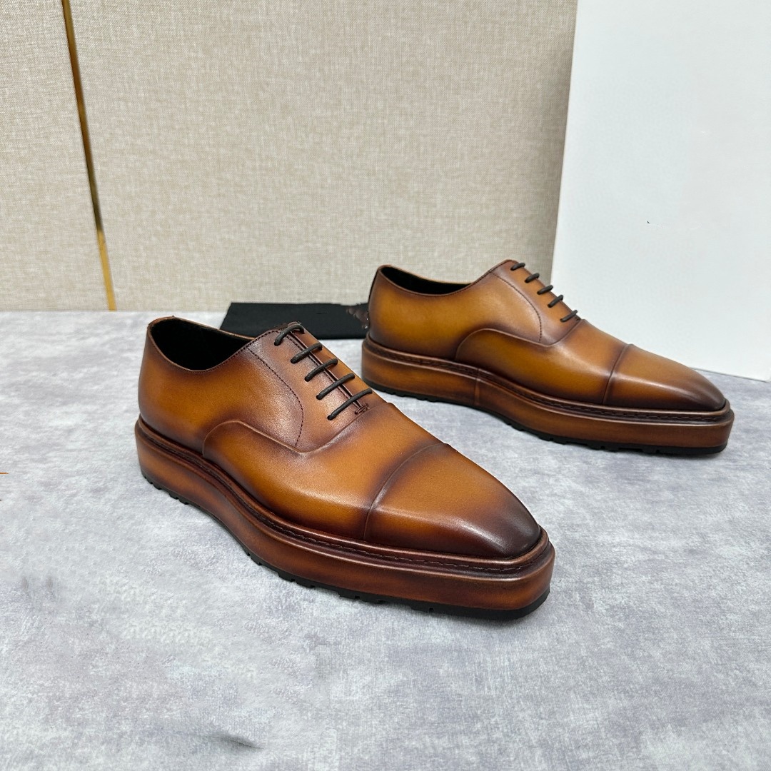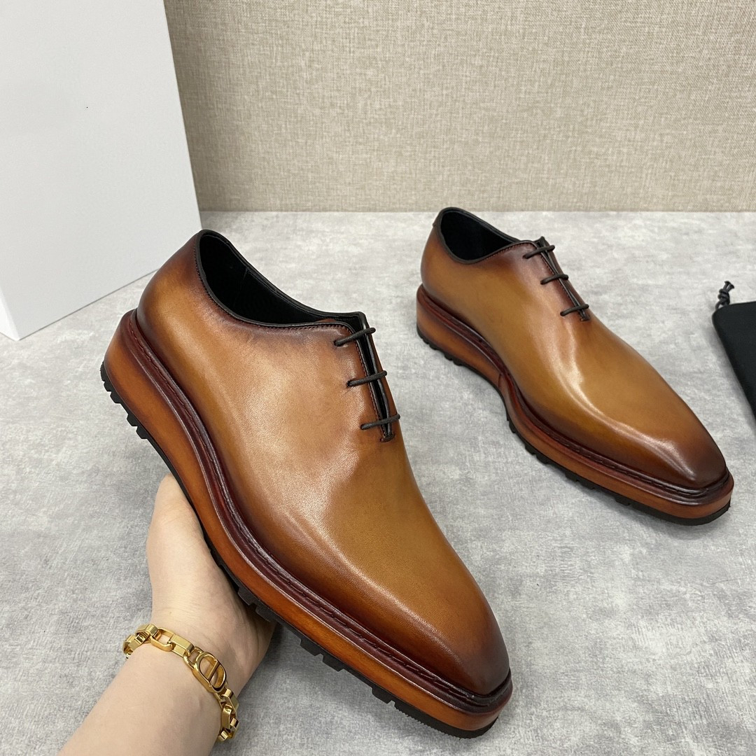 European Style New Genuine Leather Lace-Up Platform Thick-Soled Height-Increasing Casual Suit Derby Leather Shoes Wedding Shoes Men's Trendy Shoes